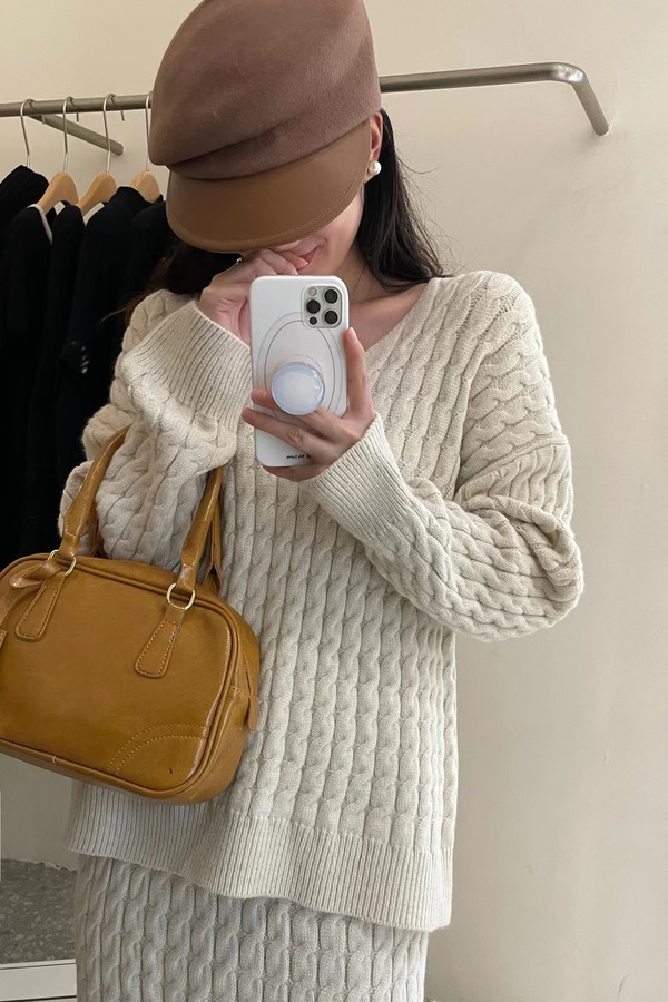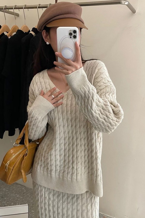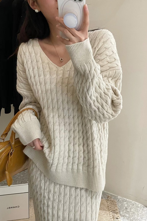 Le Malene 经典米白色针织上衣半裙套装 17788