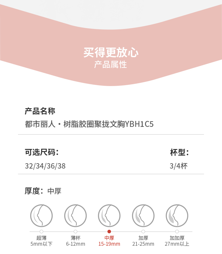 都市丽人B杯常规内衣中厚蕾丝聚拢升杯树脂胶圈常规文胸YBH1C5