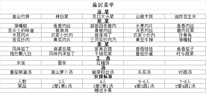 【餐饮】每日正餐1次(午/晚餐任选,2荤1素1汤1水果,菜单参考见下方)