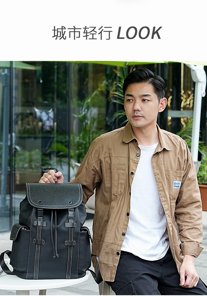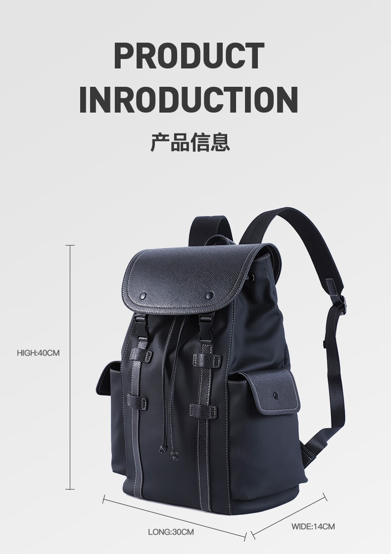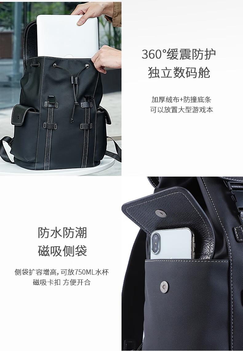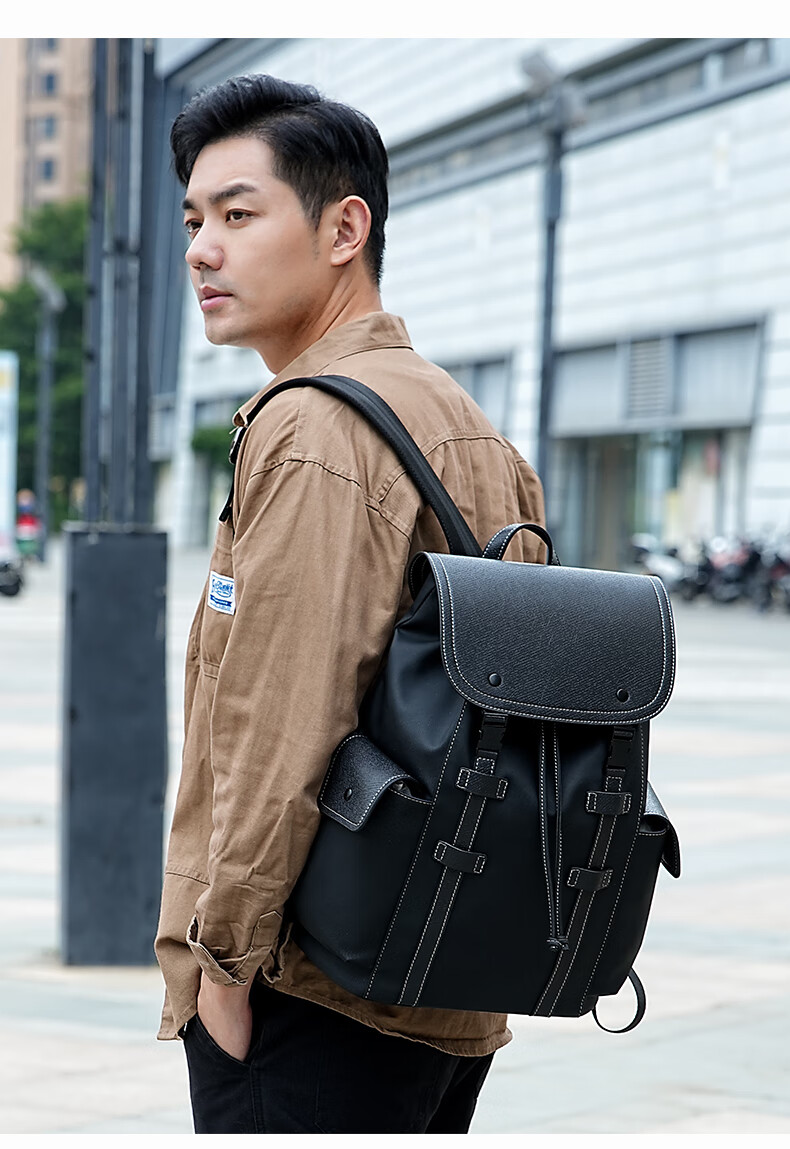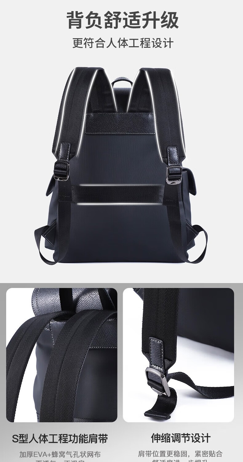 美都袋鼠日韩男款休闲商务背包磁吸扣双肩背包MDXXB4015-A 14英寸