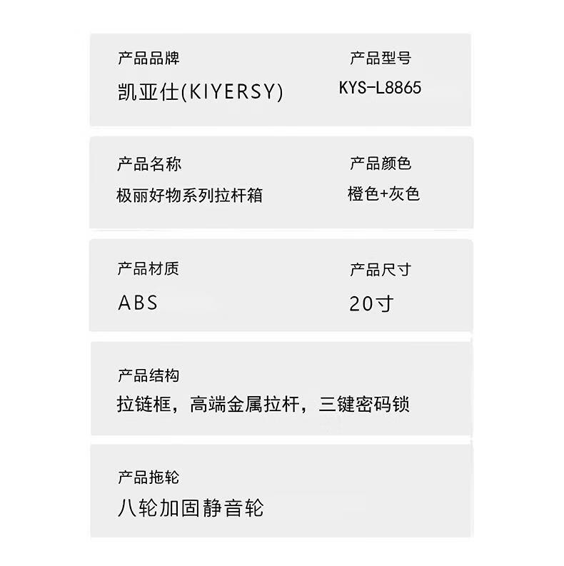 凯亚仕极丽好物系列拉杆箱20寸 KYS-L8865 橙色+灰色 20寸