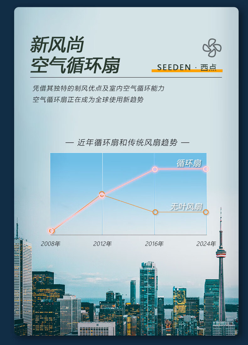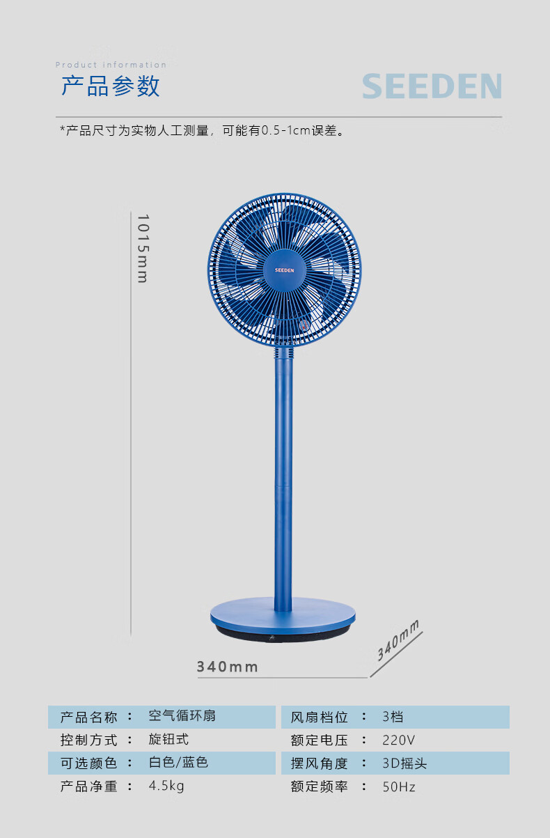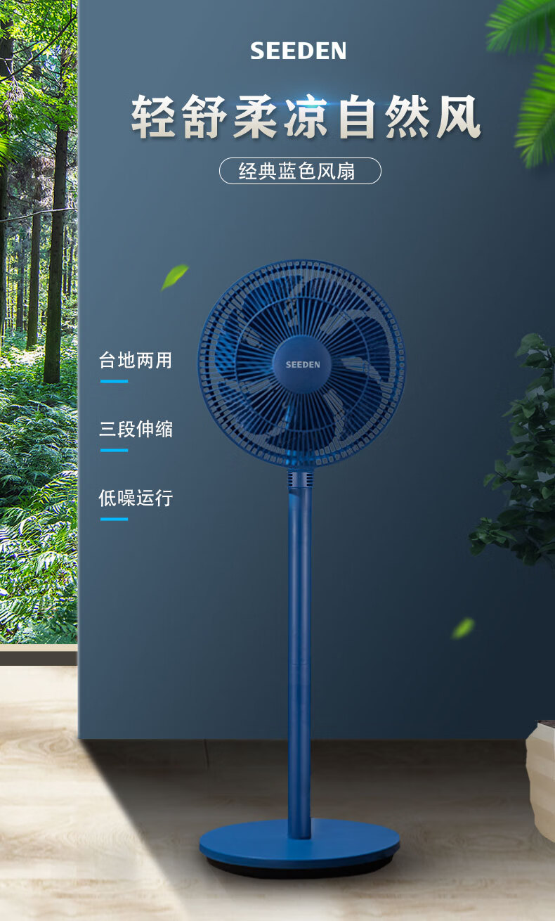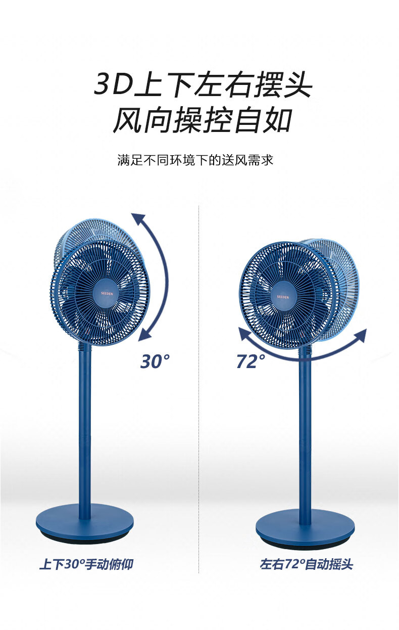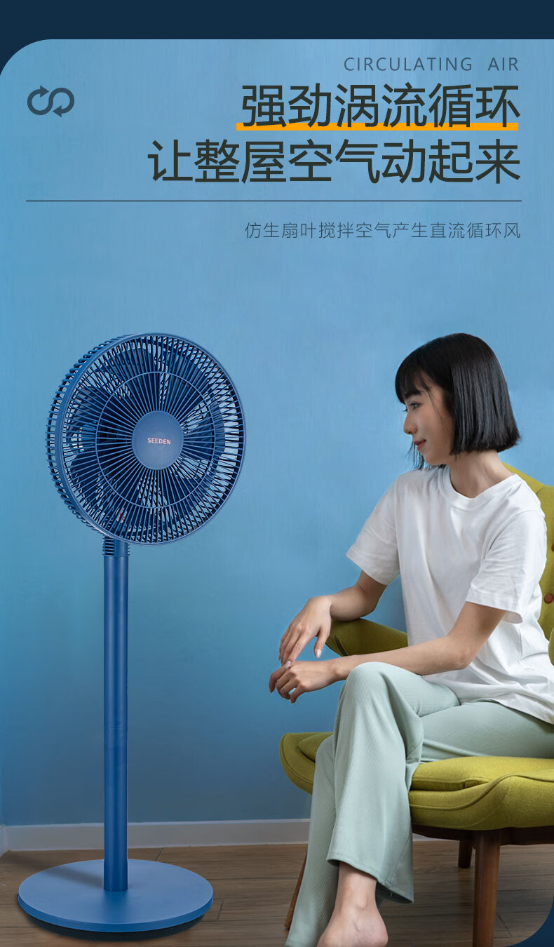 SEEDEN 电风扇家用空气循环扇台立式涡流直流变频扇趴地扇落地扇 XD-2988FB