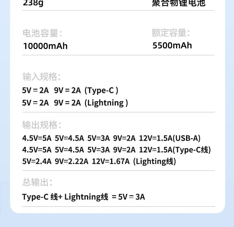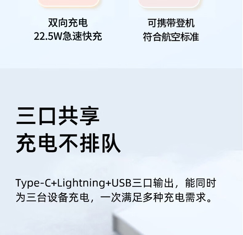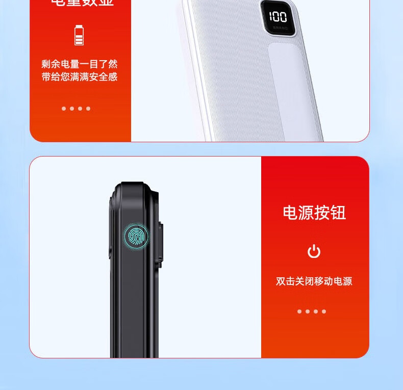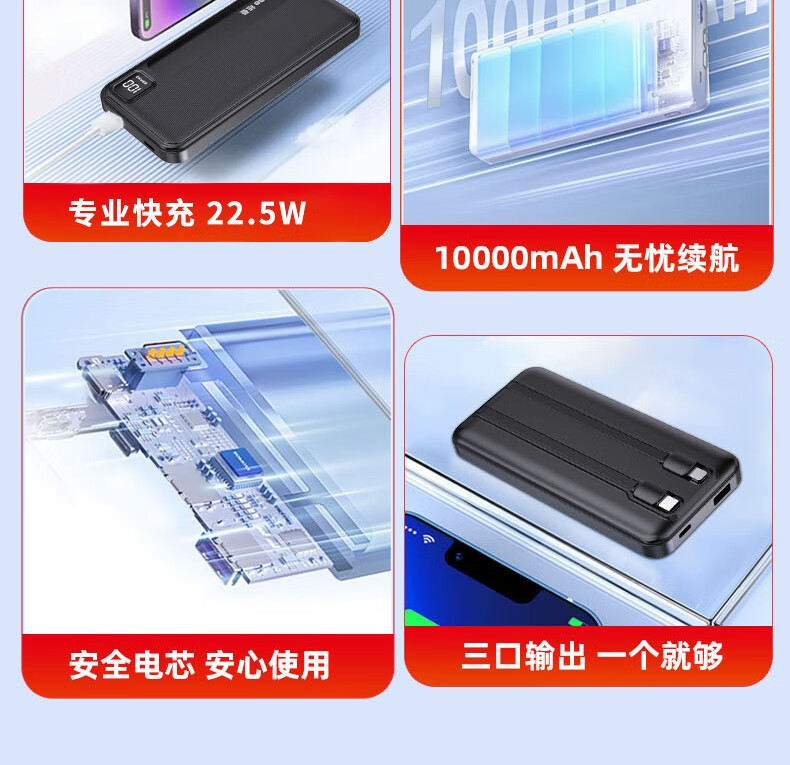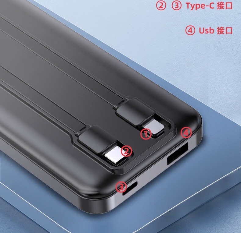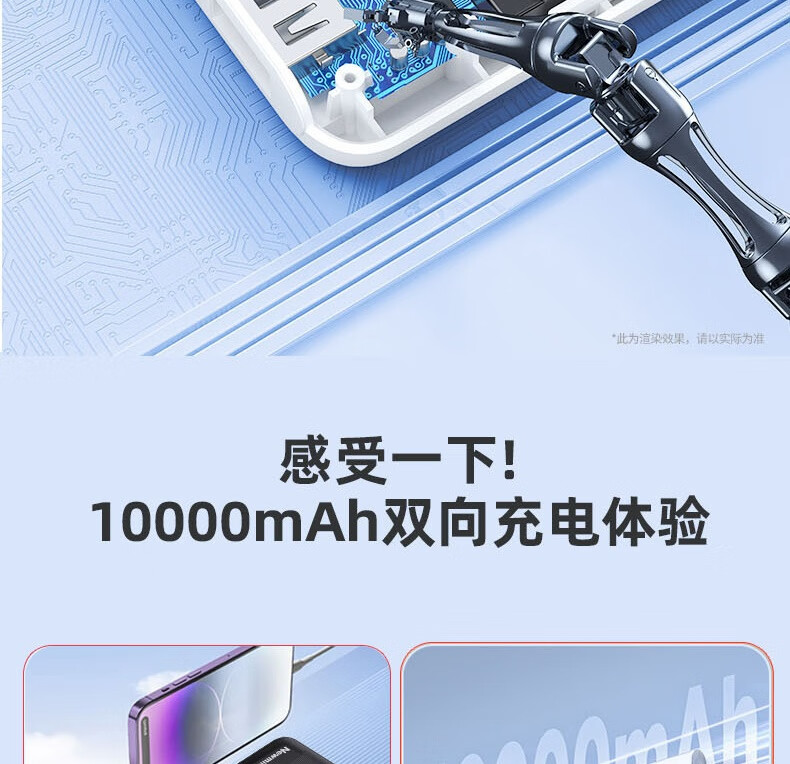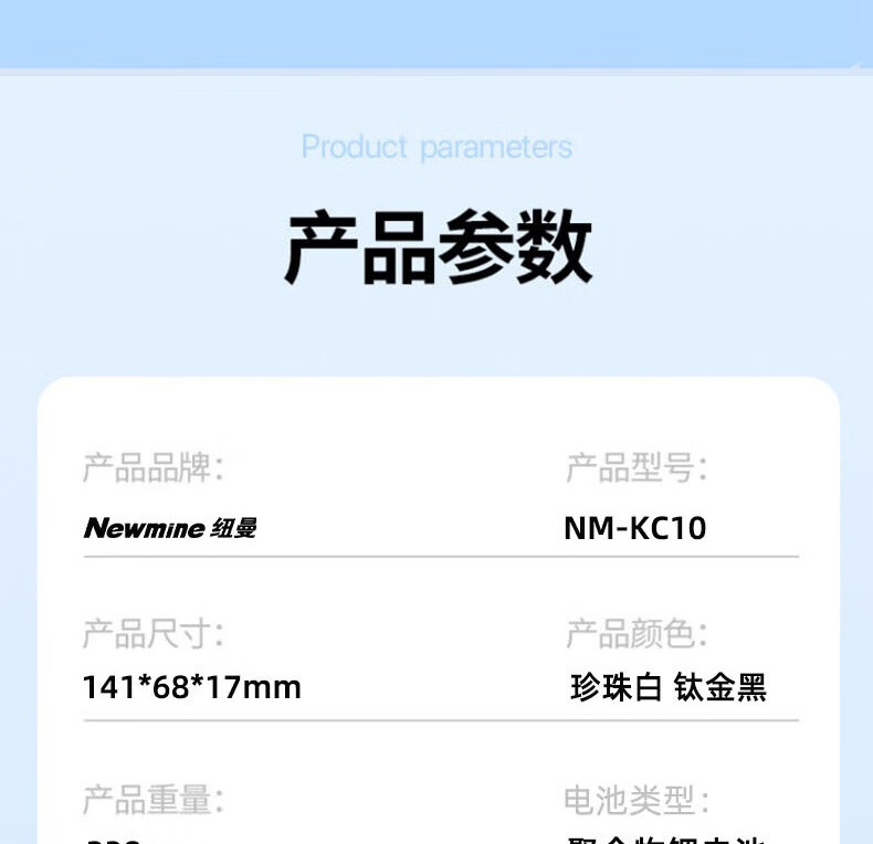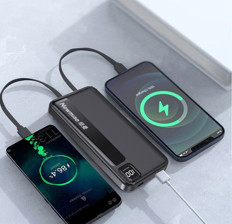 纽曼 10000毫安大容量三合一超薄小巧便携自带线超级快充移动电源 KC10
