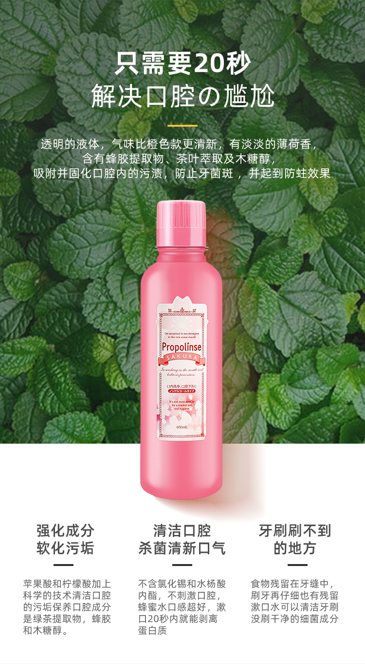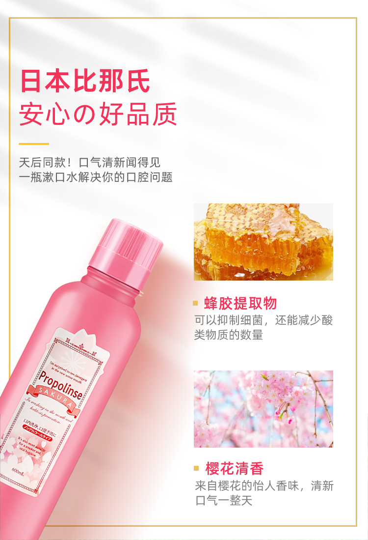比那氏漱口水 蜂胶/樱花 祛除口气清洁口腔