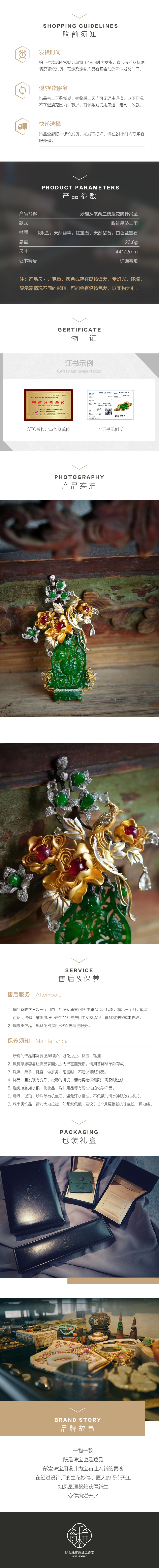 龢盒原创 妙趣来从两三枝 瓶花胸针吊坠二用