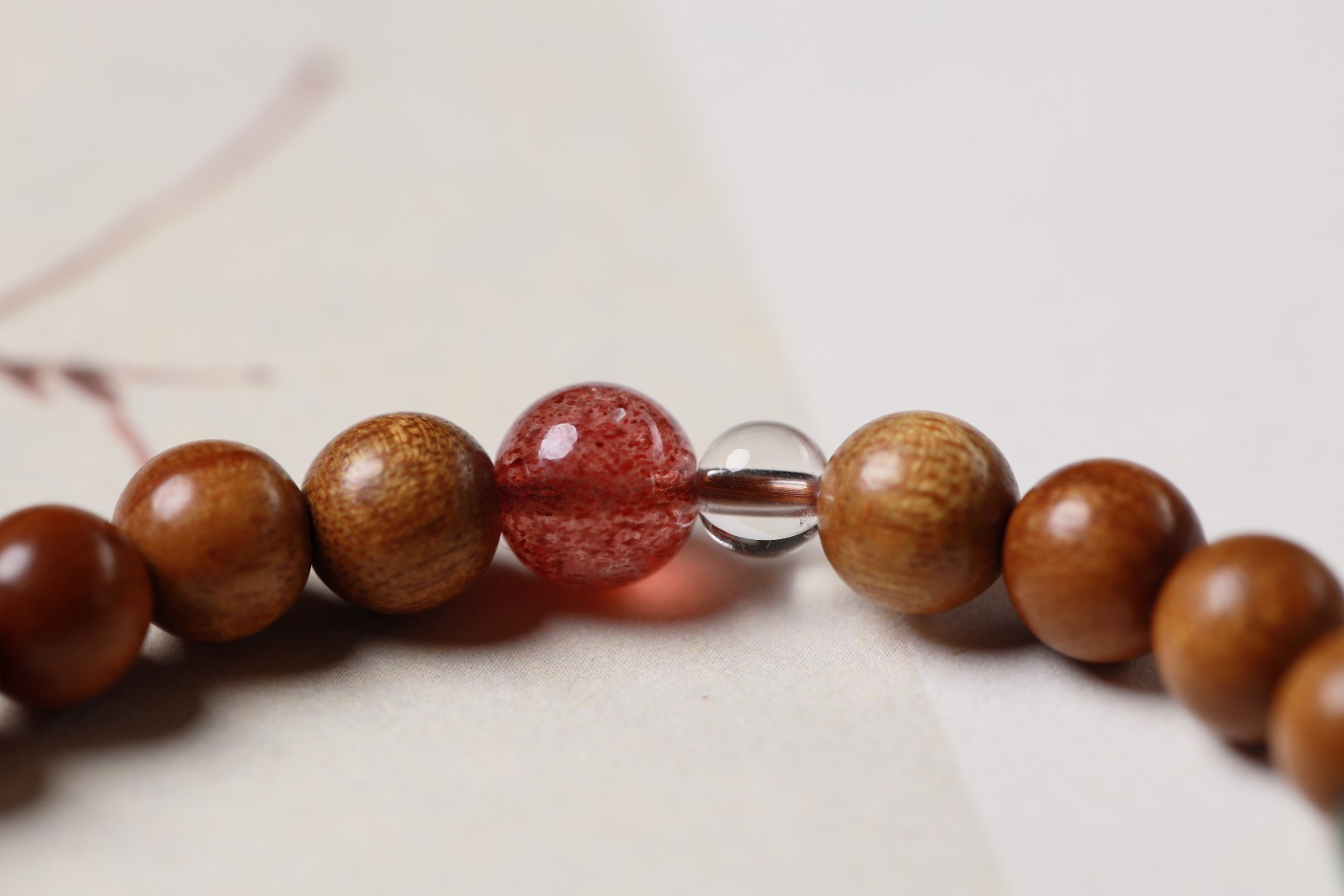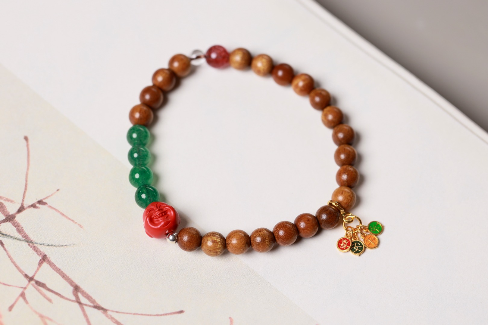 天然老料金丝楠木手链,配以绿草莓,在沉稳内敛中注入灵动的气质,使其更符合当代人的审美,木头的气息加上檀香的香气,让人感觉更加清新自然