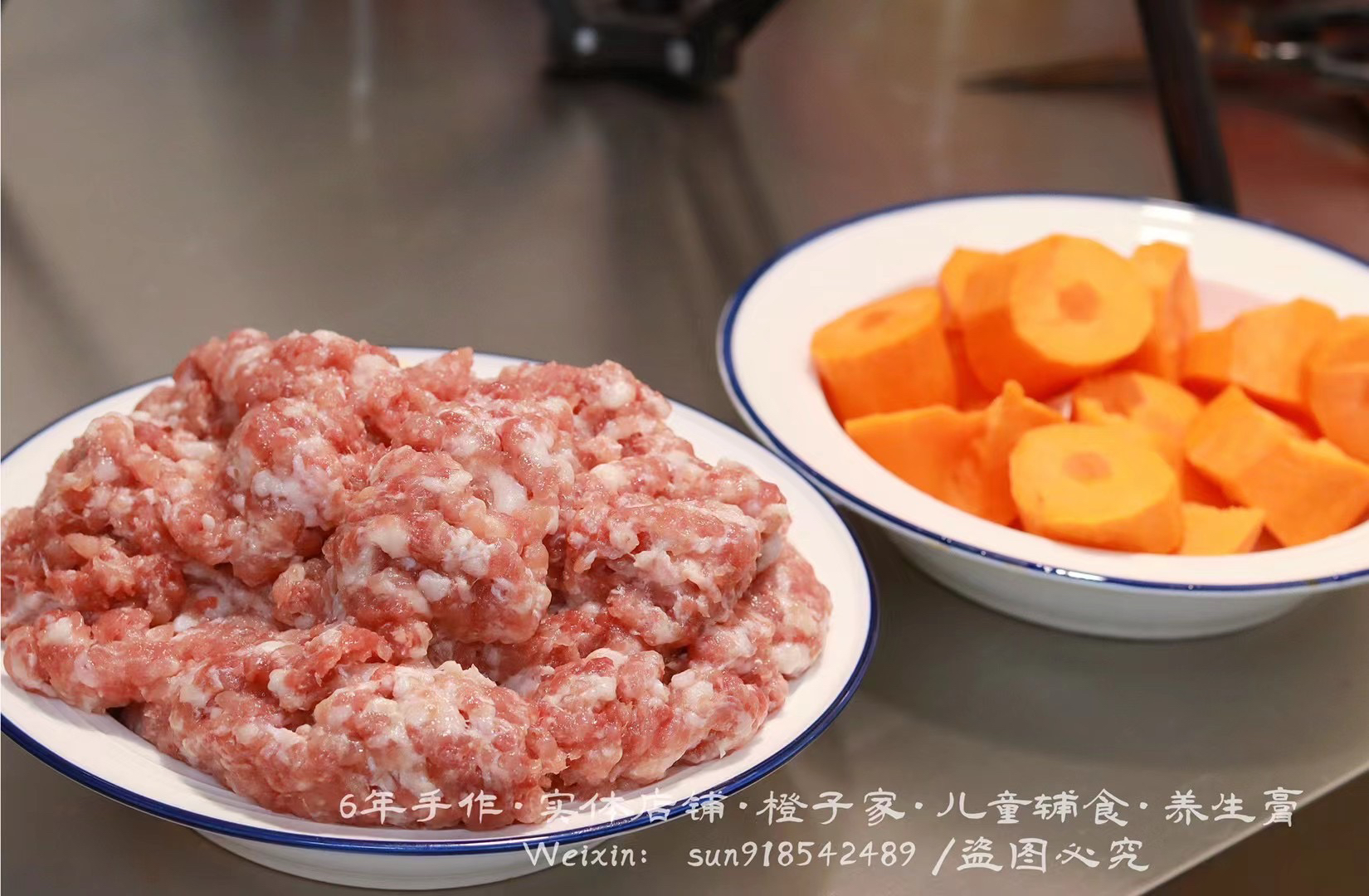 配料:(猪前腿肉、胡萝卜盐、薄盐生抽、蚝油、姜、葱、胡萝卜)