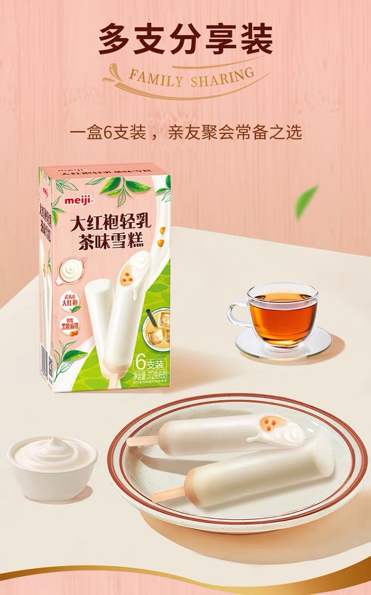 【新品尝鲜】明治大红袍轻乳茶味雪糕372G(6支彩盒装)