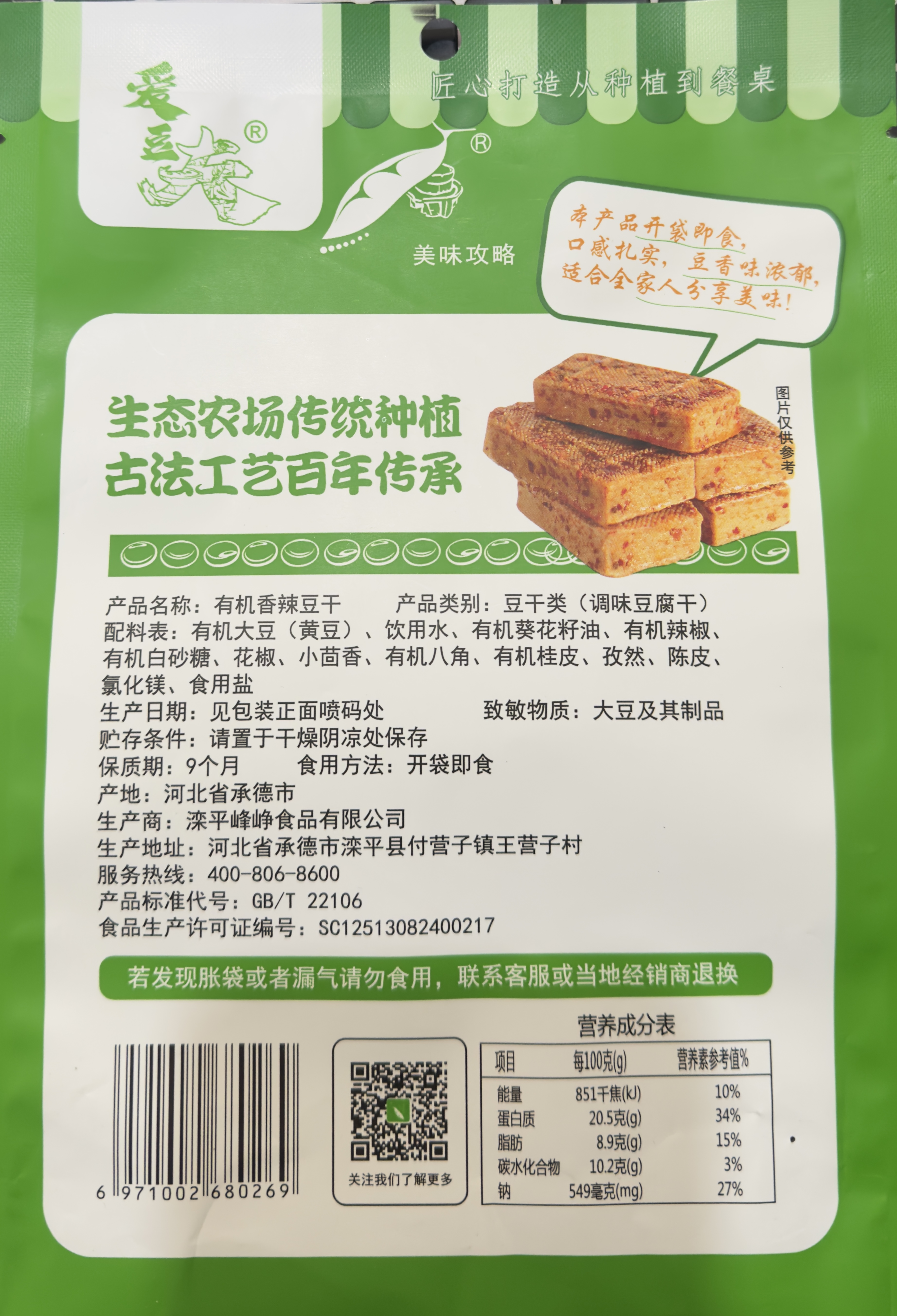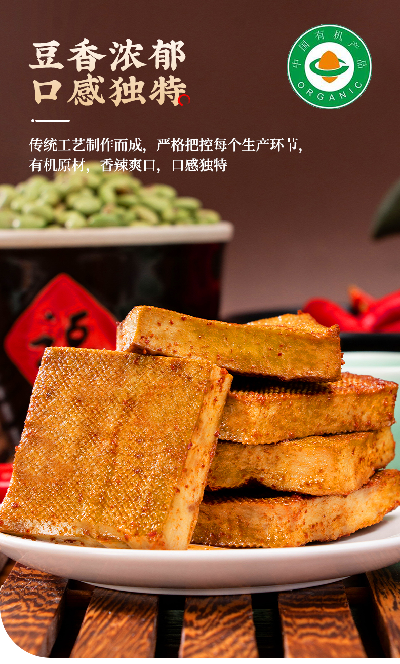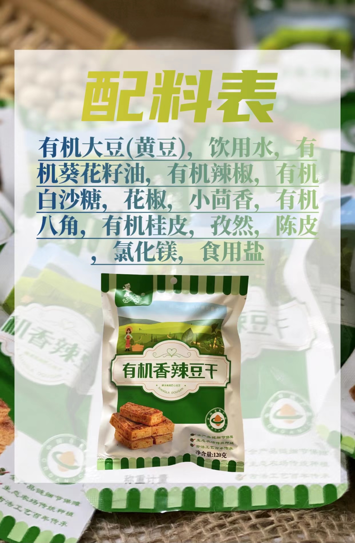有机黄豆香辣豆干(120g/袋)【有机黄豆豆制品满6份包邮】 商品图4