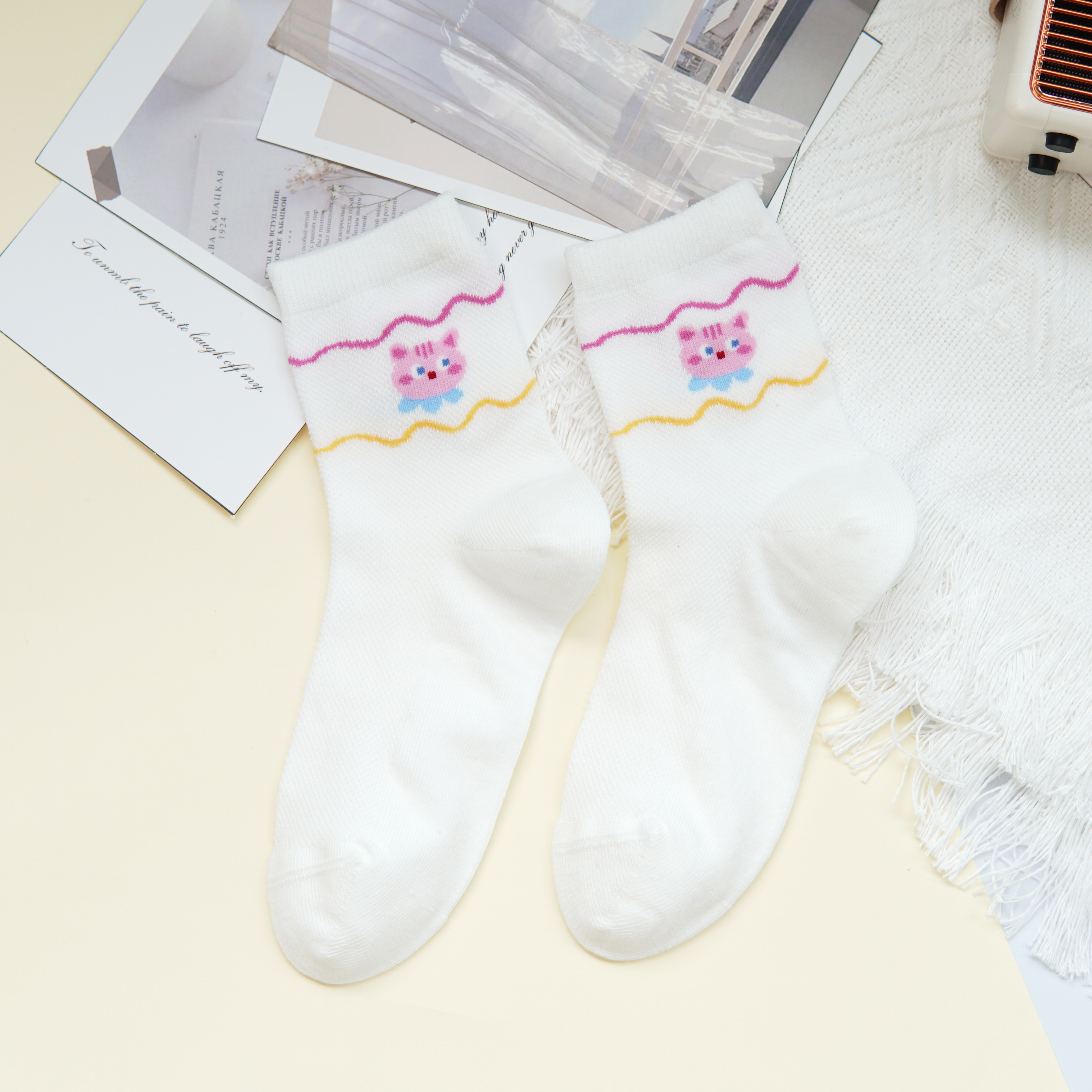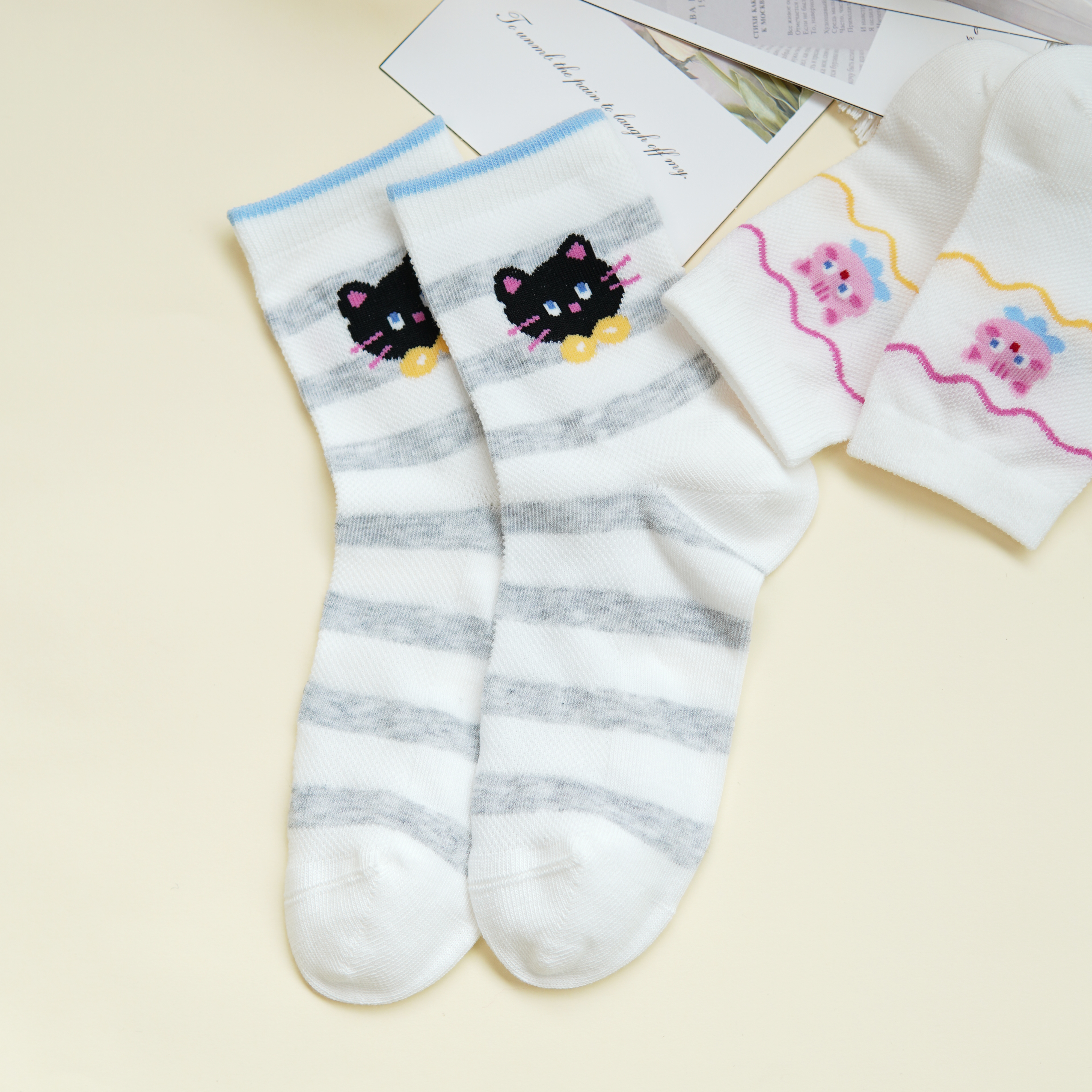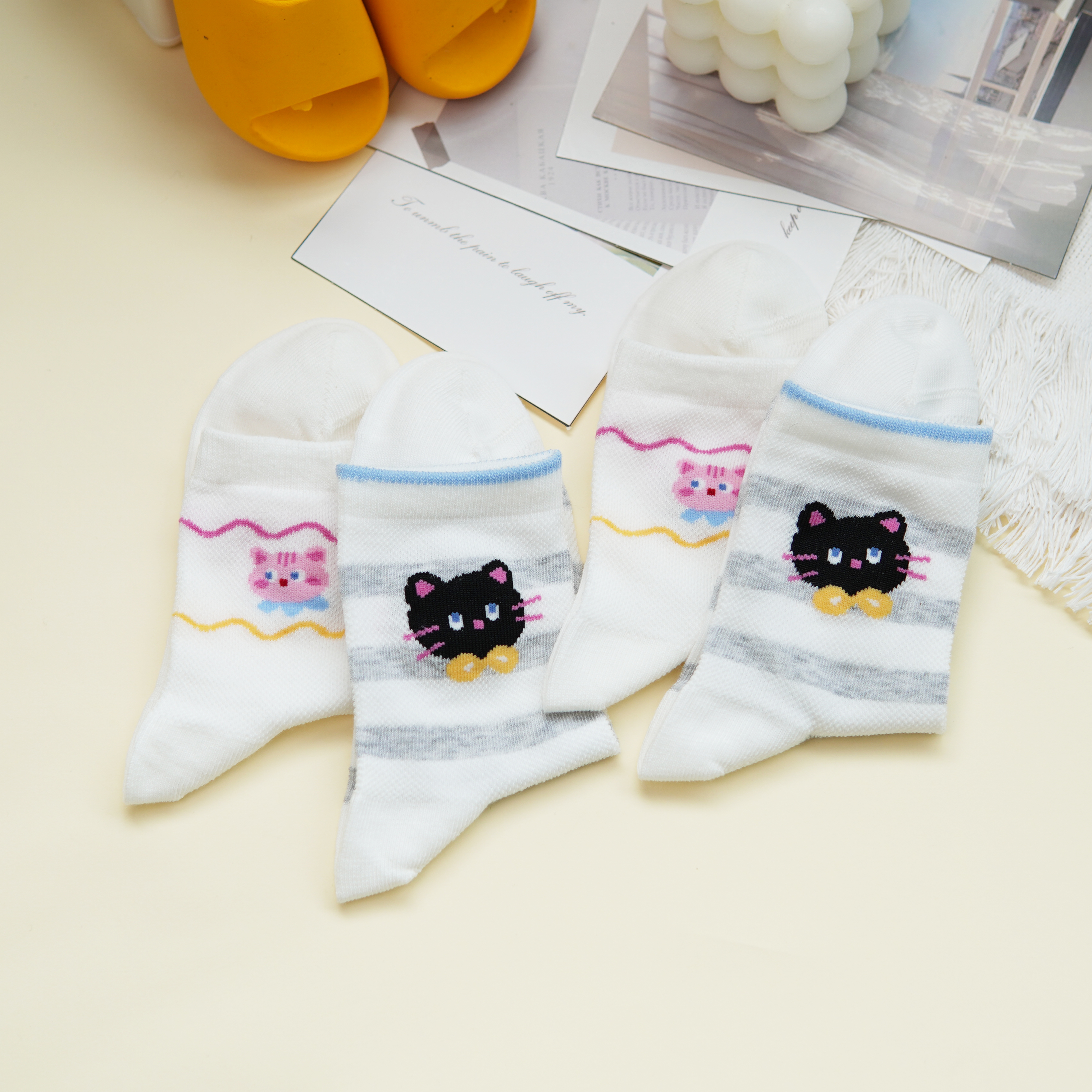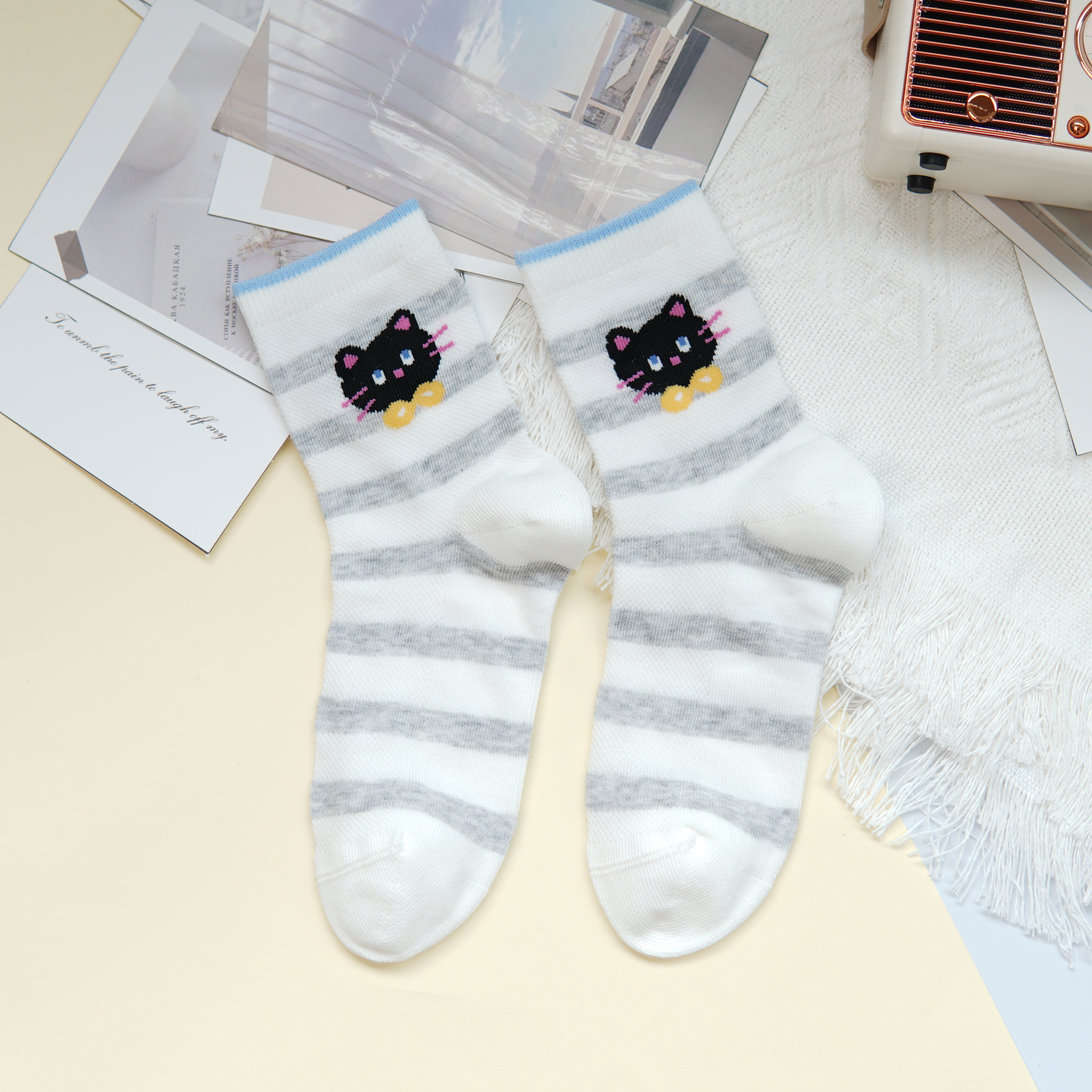 【6双6折】【32-35码】大童卡通可爱棉袜条纹猫咪女宝袜子春夏薄时尚袜【2双装】【2613207】