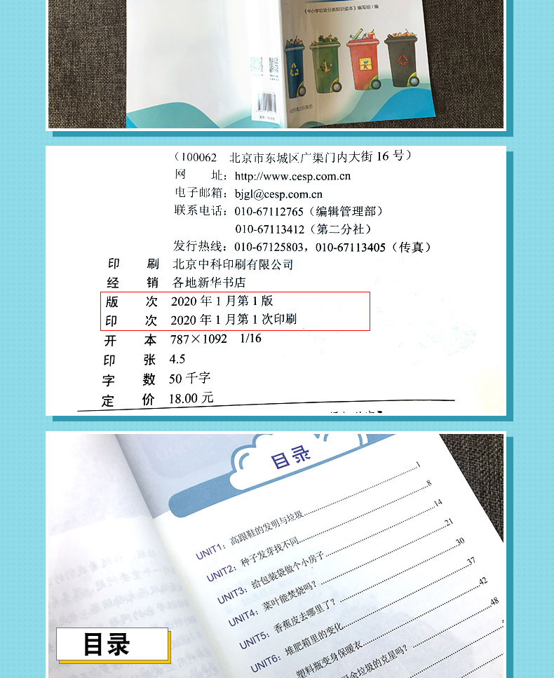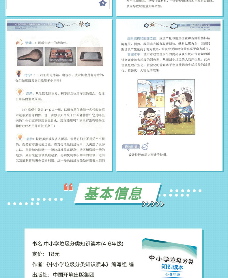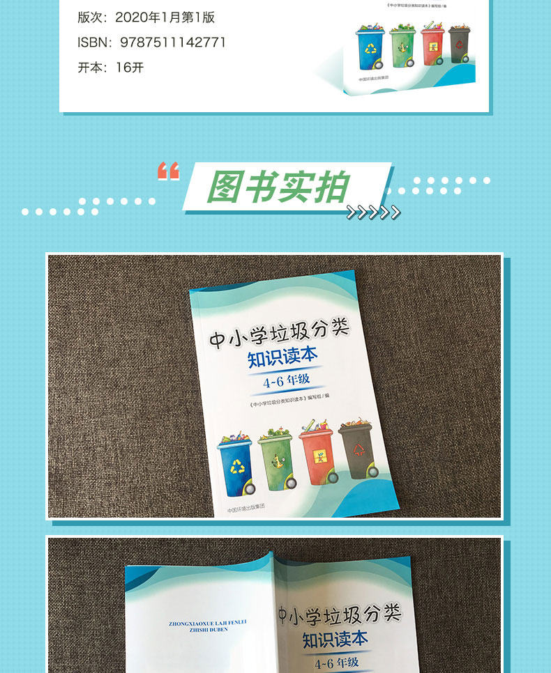 中小学垃圾分类知识读本4-6年级 9787511142771 中小学生环境保护教育读本青少年环保知识科普图书垃圾分类书