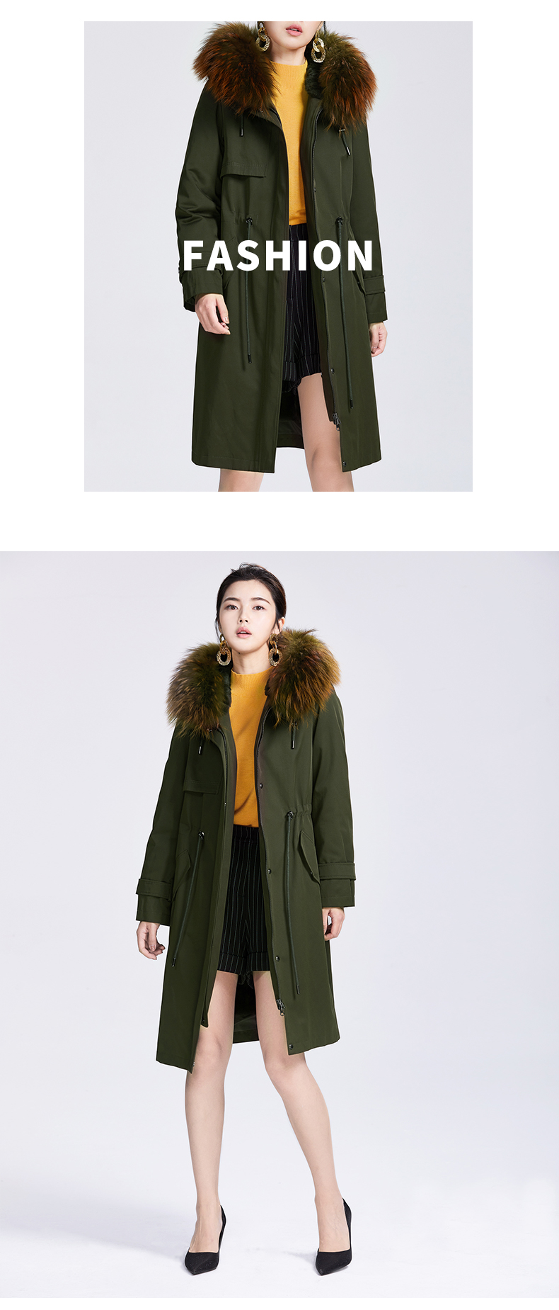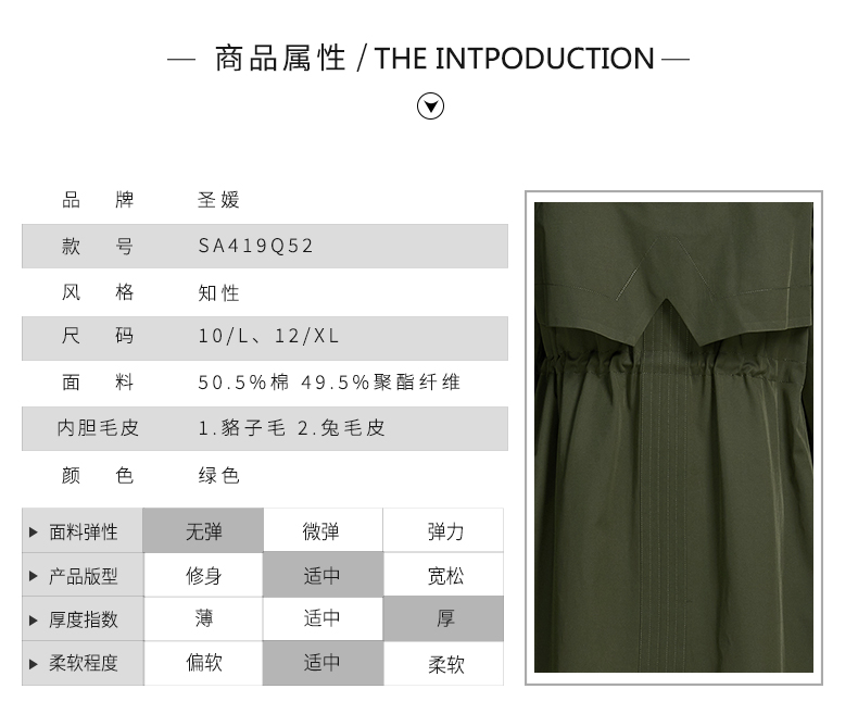 SAINT L’UCK/圣媛女装可拆卸兔毛内胆貉子毛领派克服SA419Q52