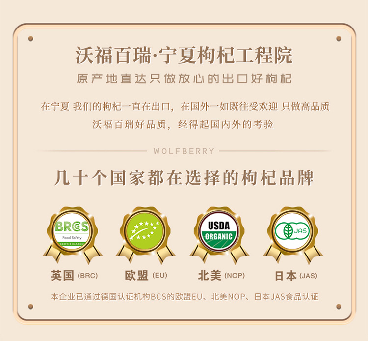 沃福百瑞枸杞干果无农残10g*22袋加送40g试吃