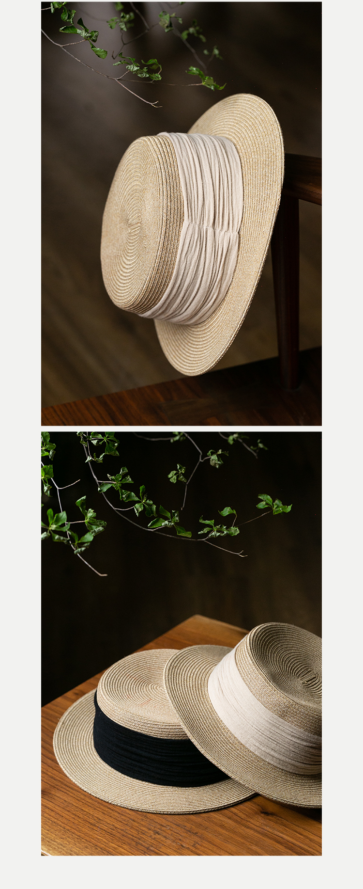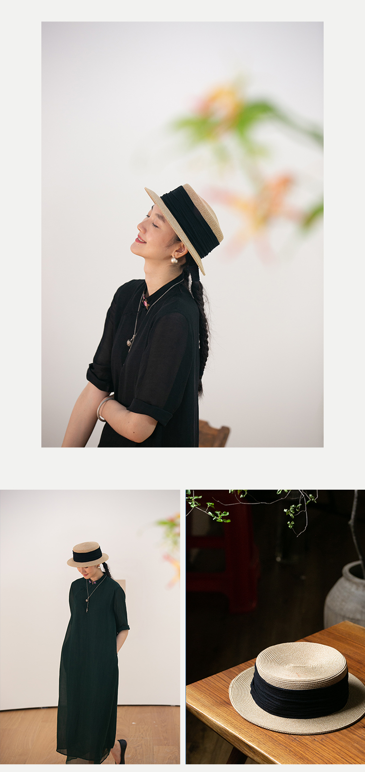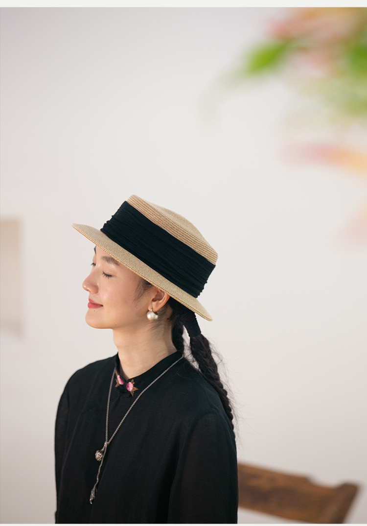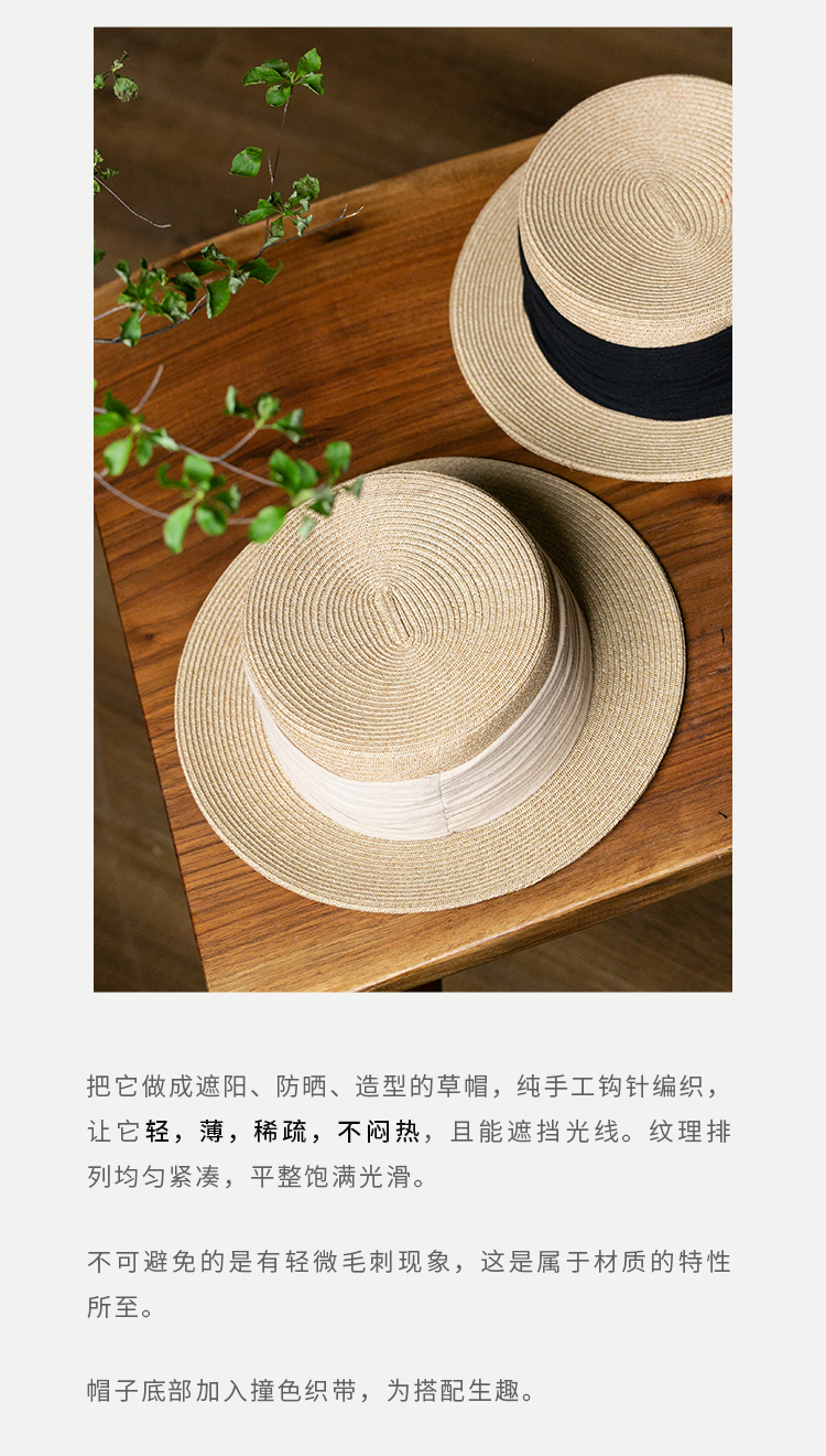 牧衣游原创设计女装出游遮阳防晒新款简约【草编纸草平顶帽】人间