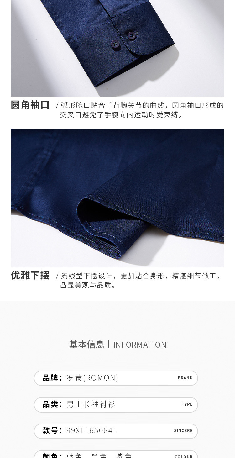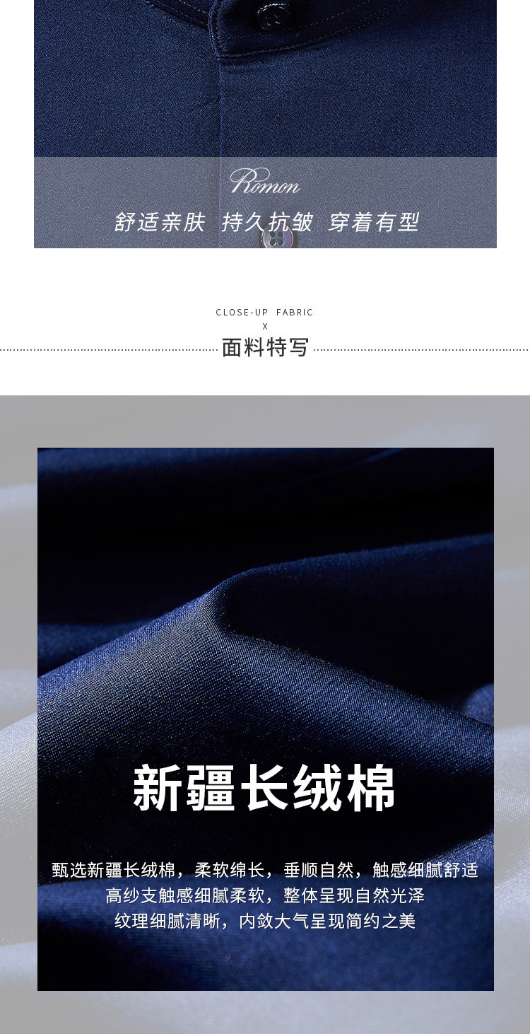 【纯棉微弹力】罗蒙春夏男装立领长袖衬衫男士正装商务通勤爸爸装立领衬衣男