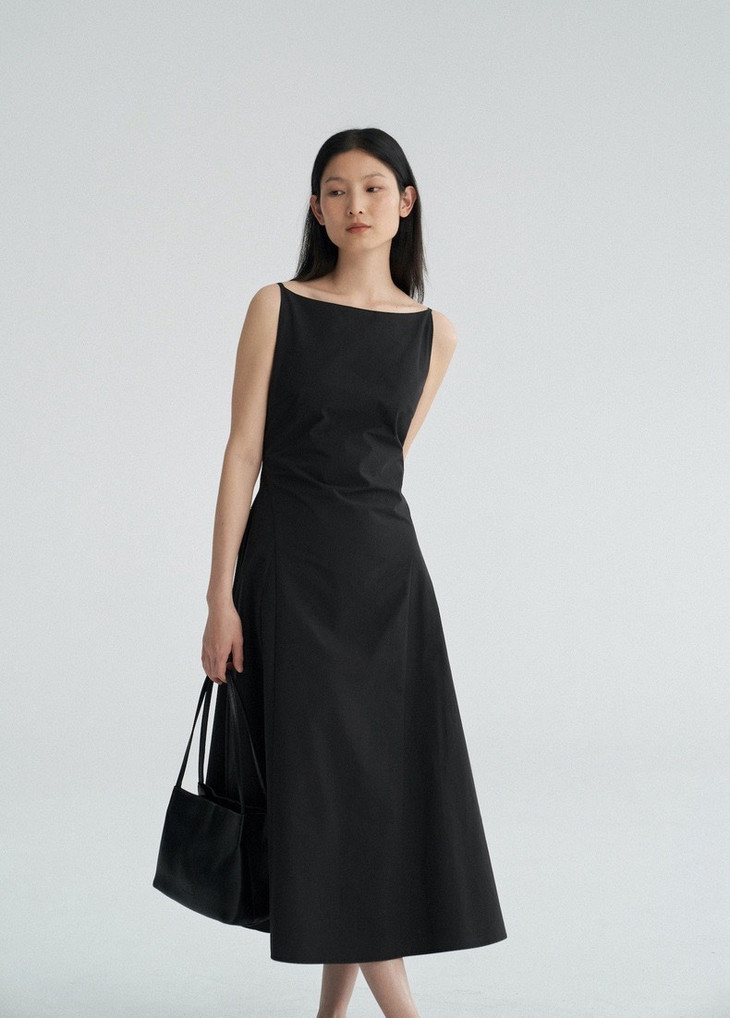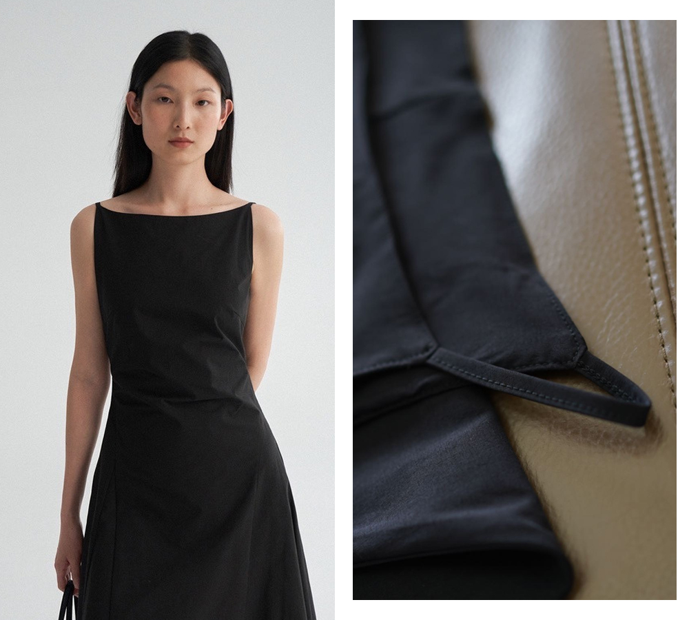 简洁一字领的设计,搭配细肩带设计能很好的凸显精致锁骨