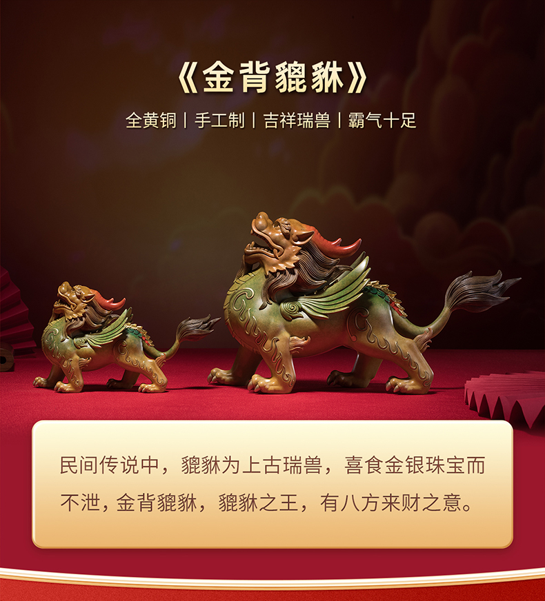 铜师傅《金背貔貅》客厅桌面铜摆件 家居装饰工艺品