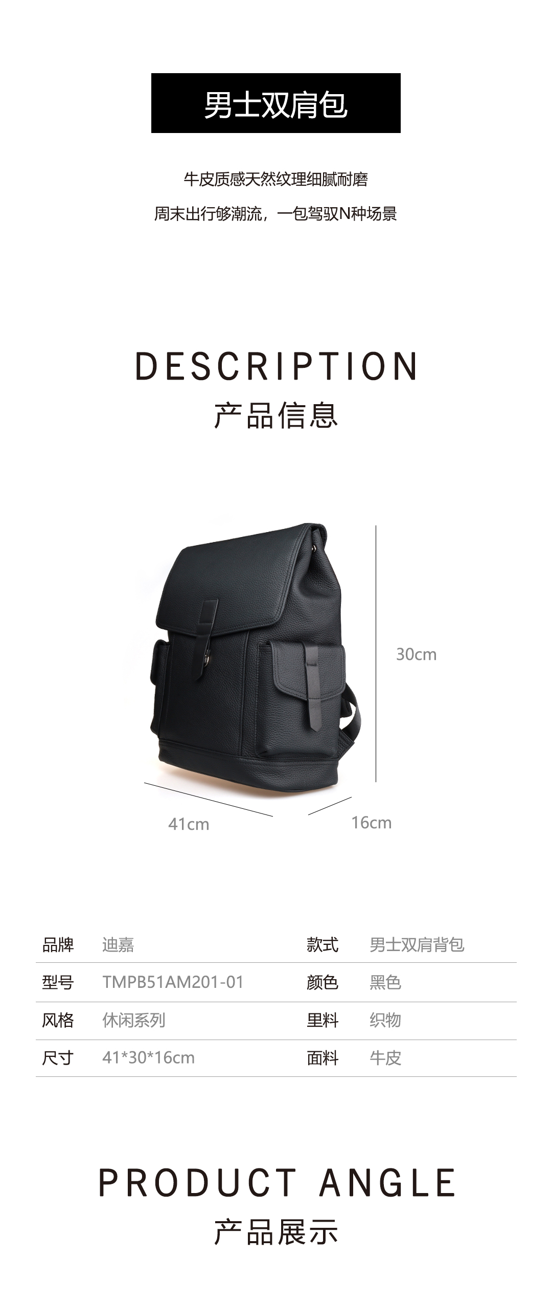 豪麟名鞋奥莱迪嘉男包双肩背包牛皮革TMPB51AM201黑色 原价2460元