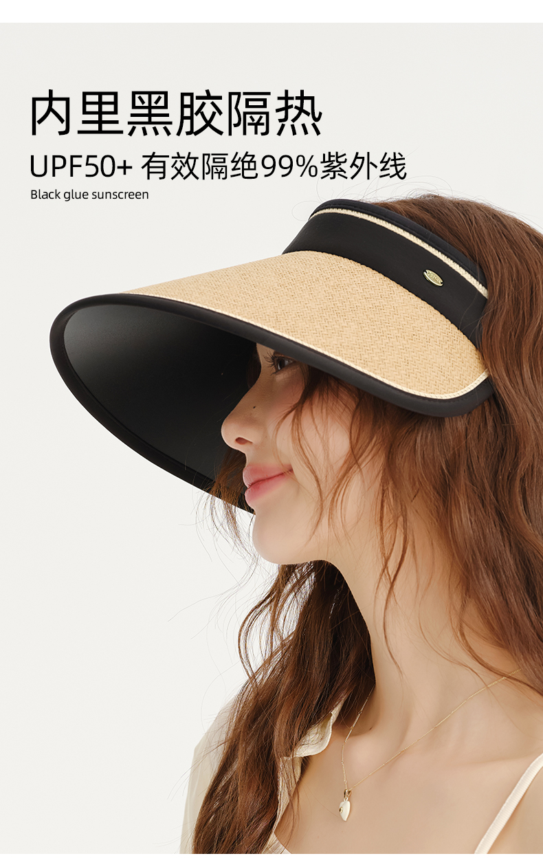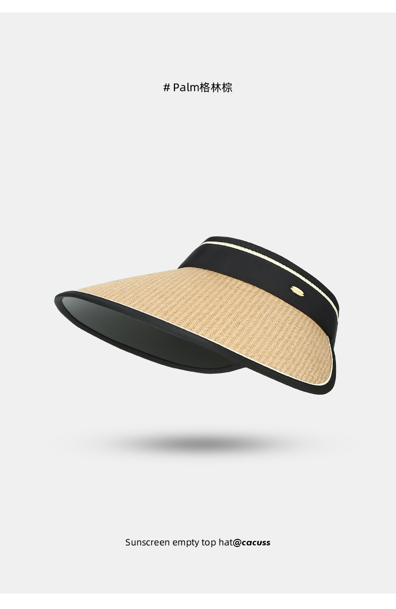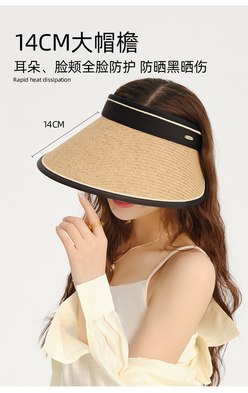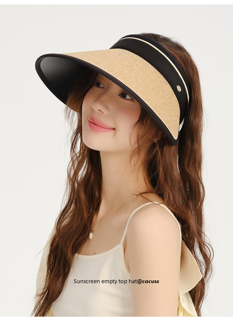 【CACUSS防晒】草编长帽檐空顶防晒帽 UPF50+微透气孔编织 久戴不闷 大帽檐草帽户外遮阳帽