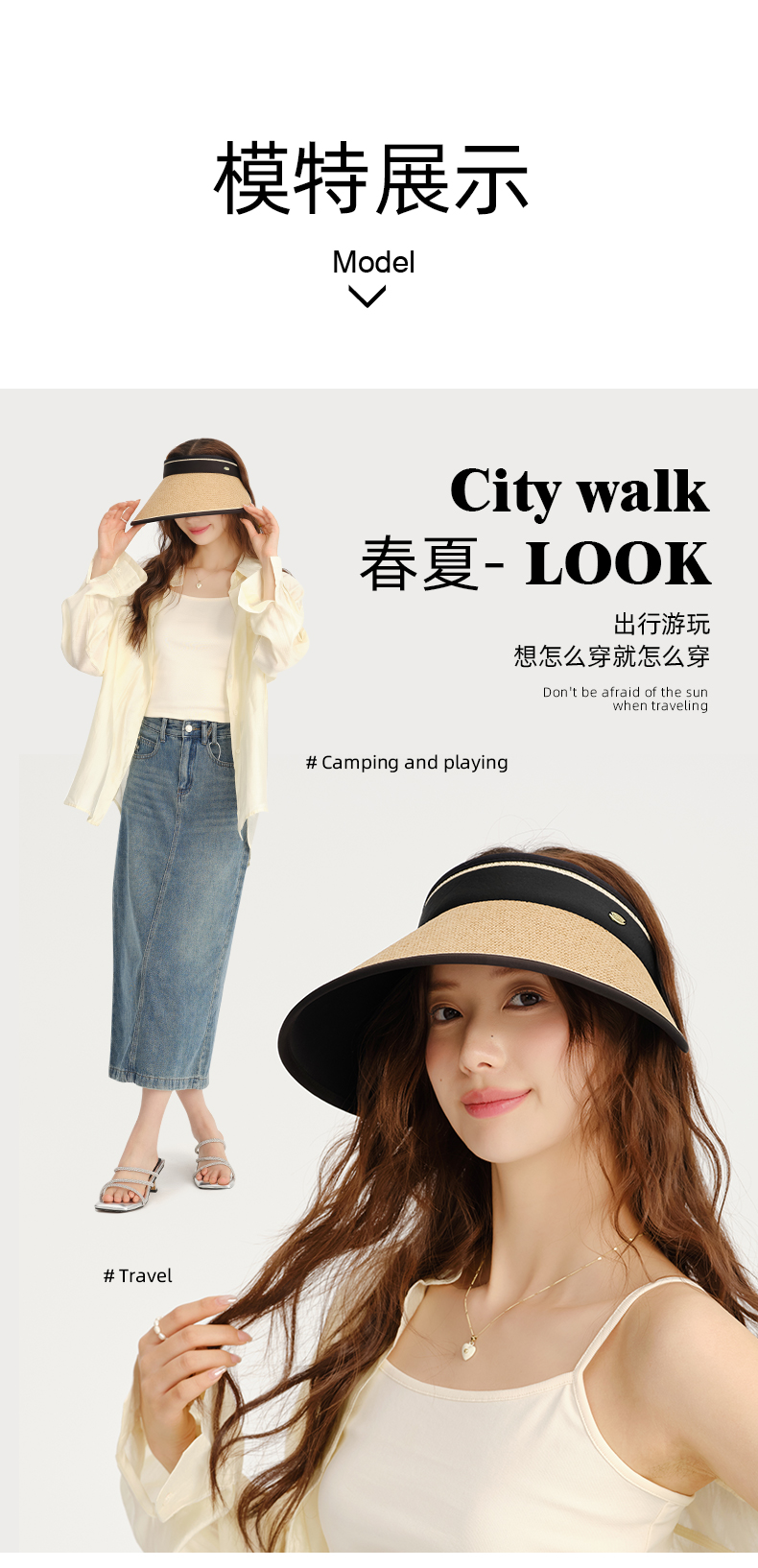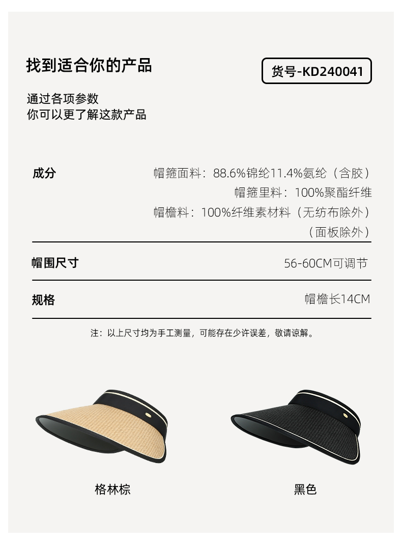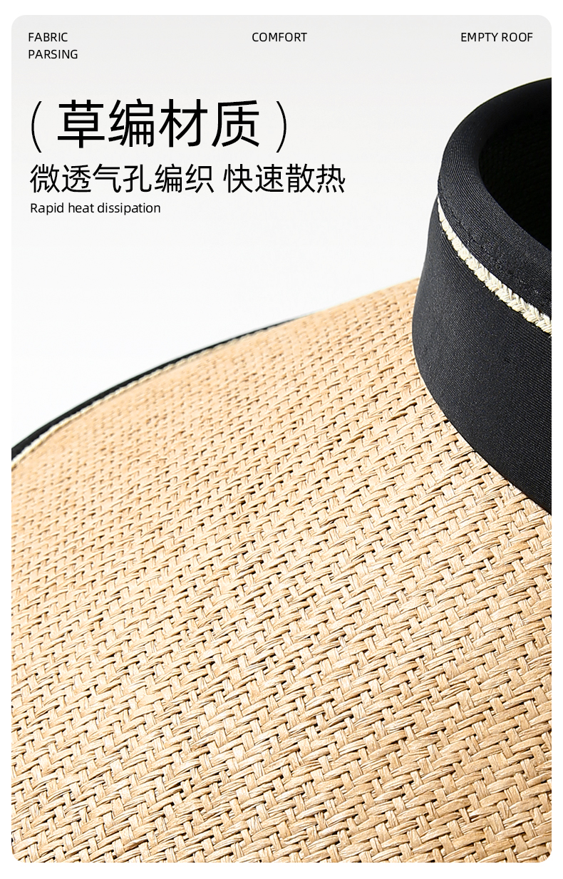 【CACUSS防晒】草编长帽檐空顶防晒帽 UPF50+微透气孔编织 久戴不闷 大帽檐草帽户外遮阳帽