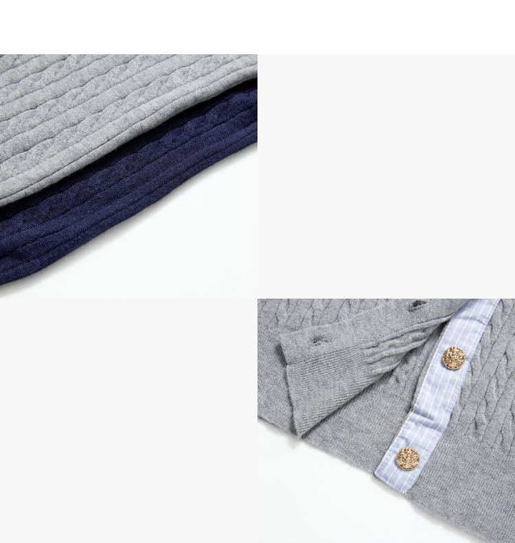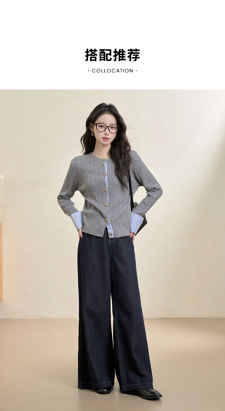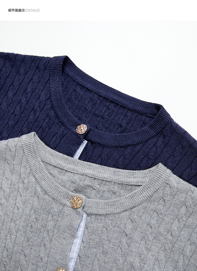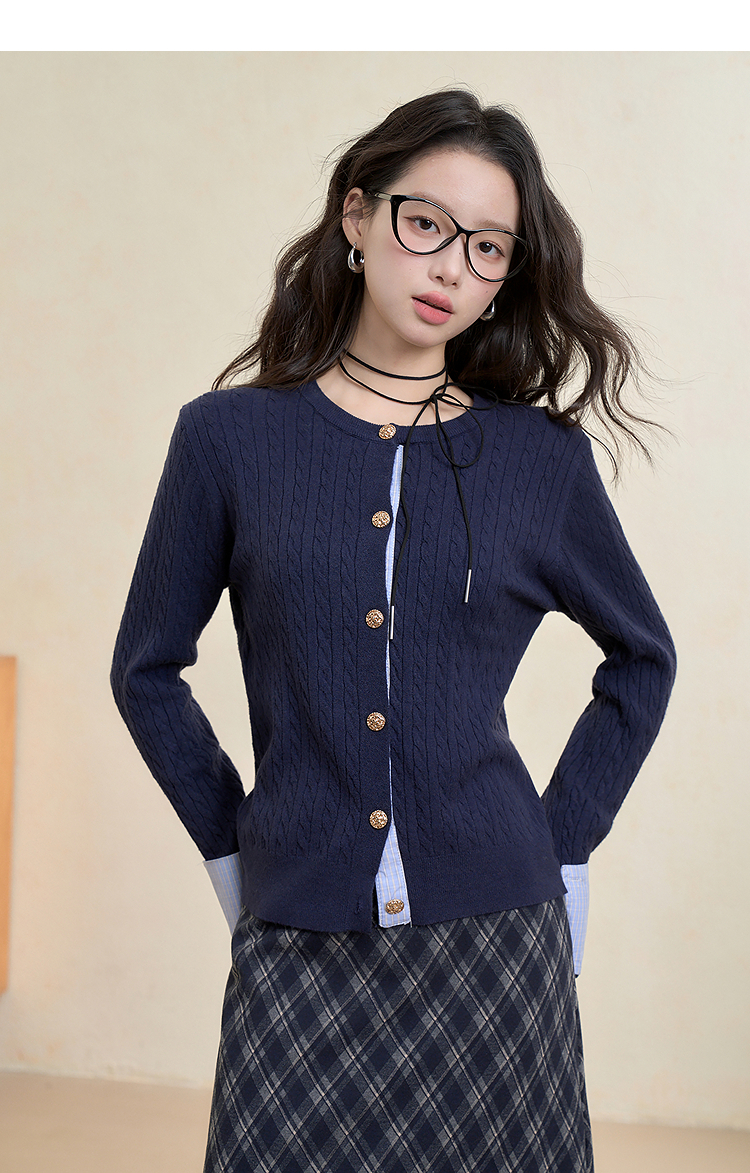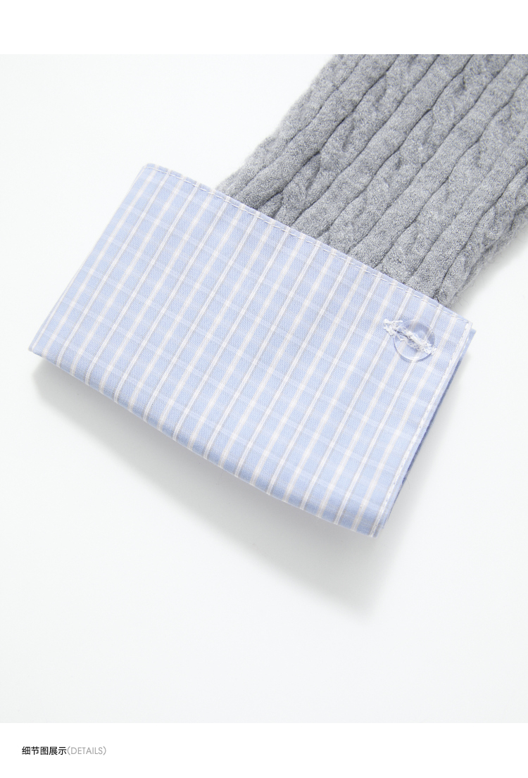 西遇通勤短款针织开衫女秋季新款圆领撞色格纹拼接毛衣外套Y0055211