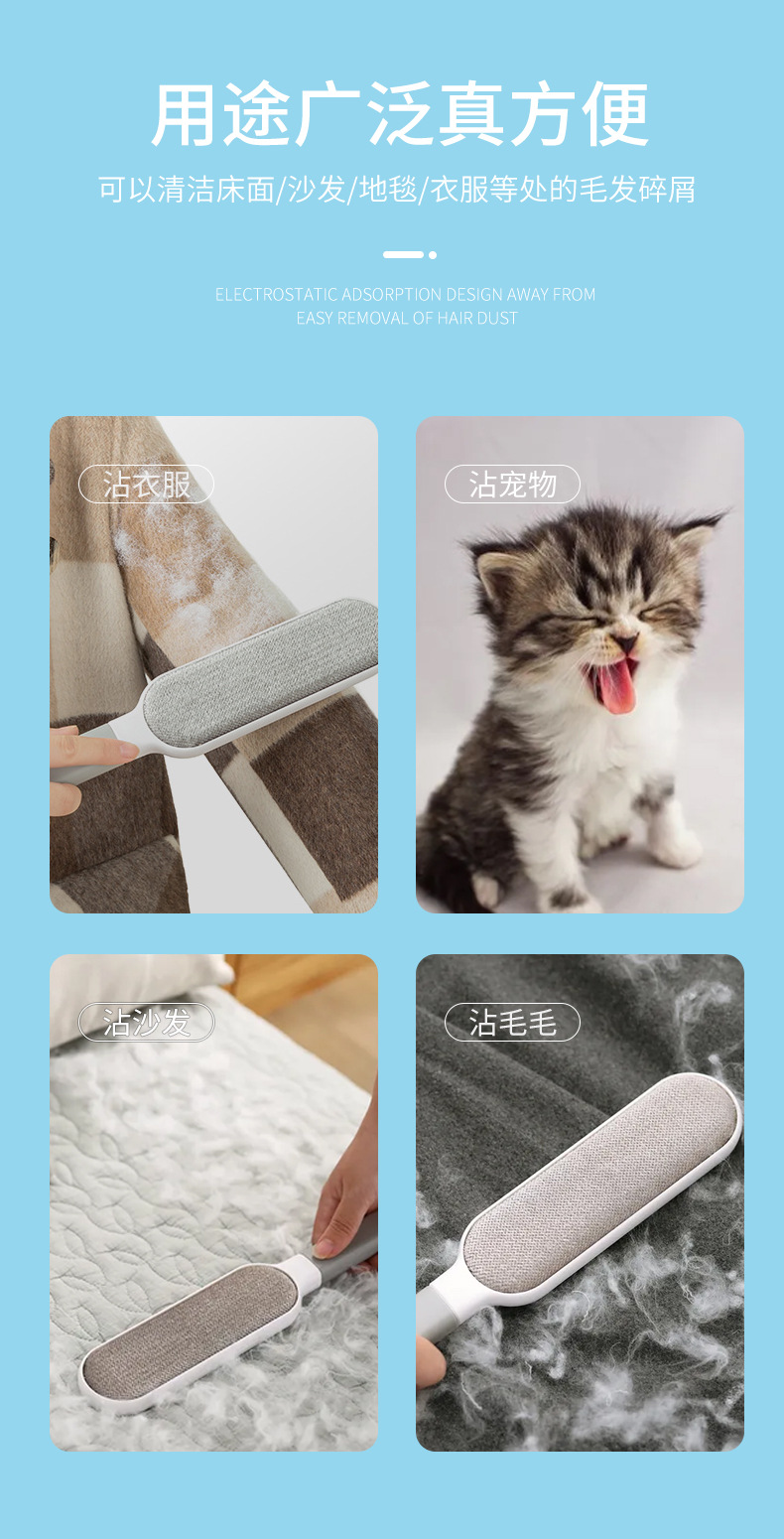 【加强升级款!除毛四合一!】双面静电刷 床单被除毛刷 宠物毛发粘毛器 刷子衣物羊绒毛大衣刷毛器