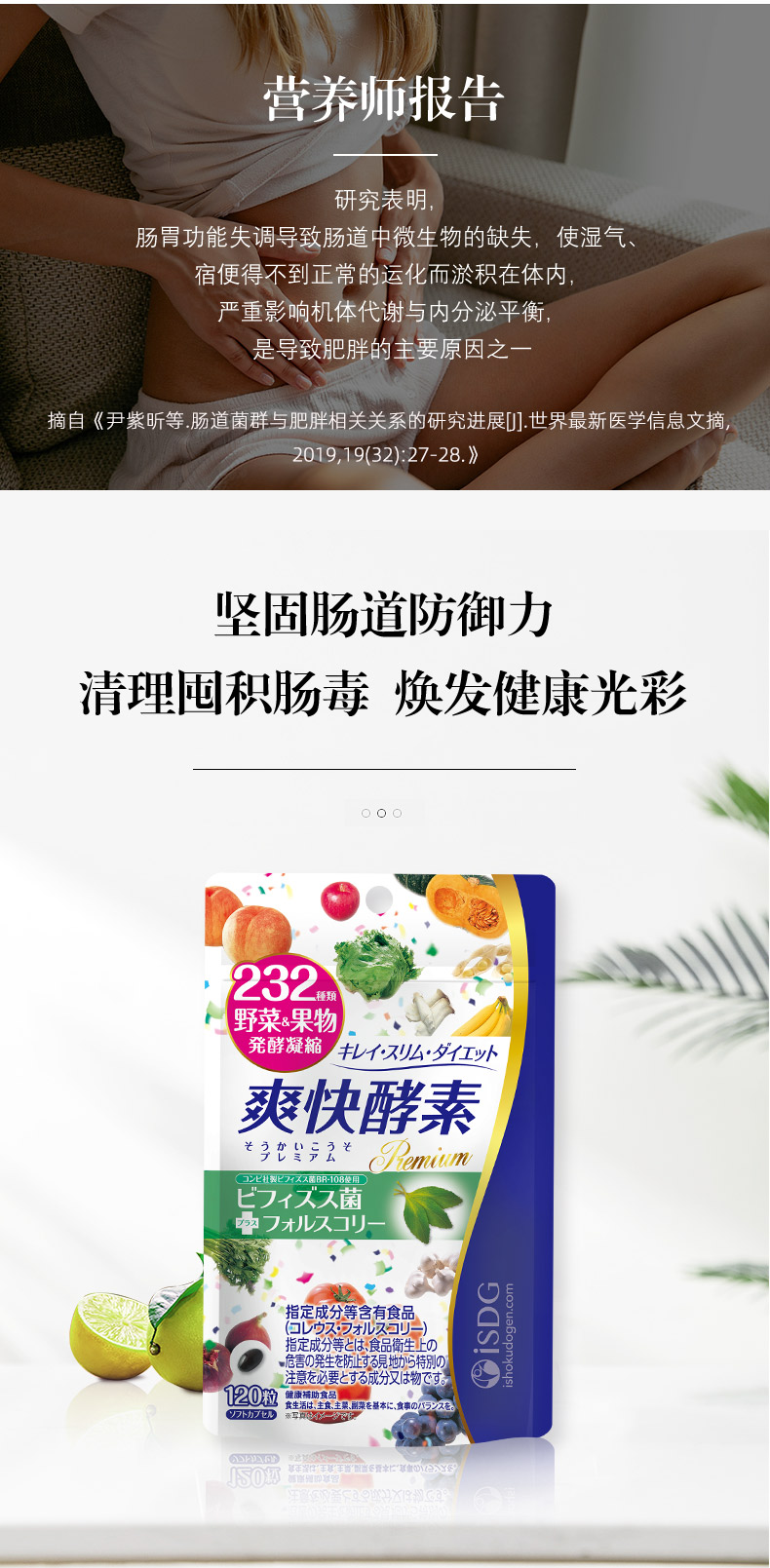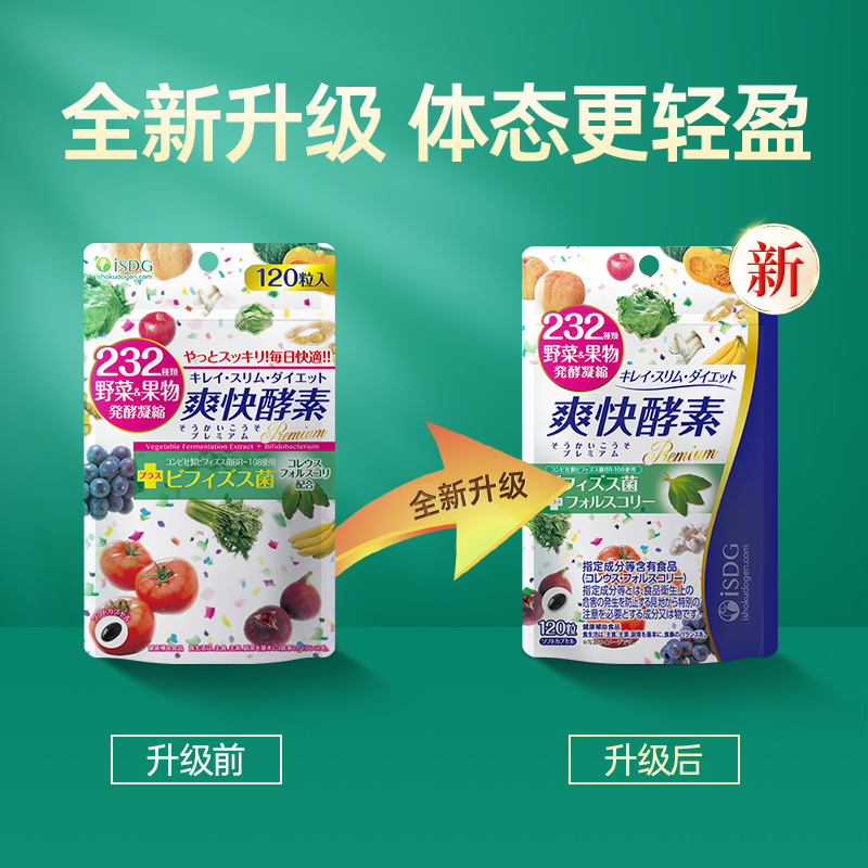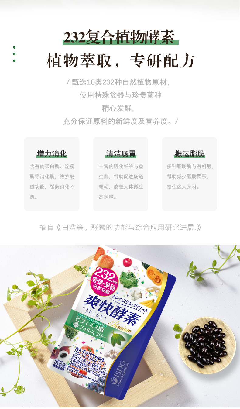 【保税仓】ISDG日本进口爽快酵素胶囊120粒 232种水果植物果蔬植物酵素(有效期至26年5月)
