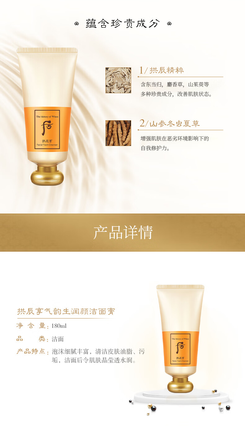 【海豚美购】韩国whoo后拱辰享气津平衡泡沫洗面奶180ml