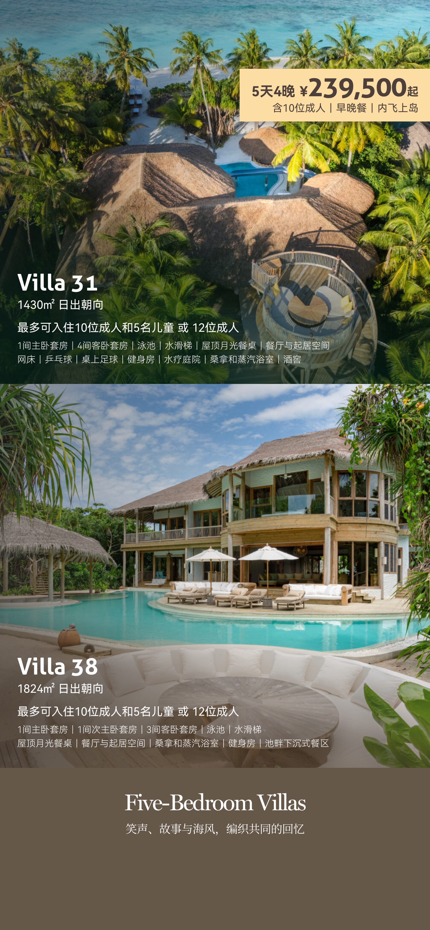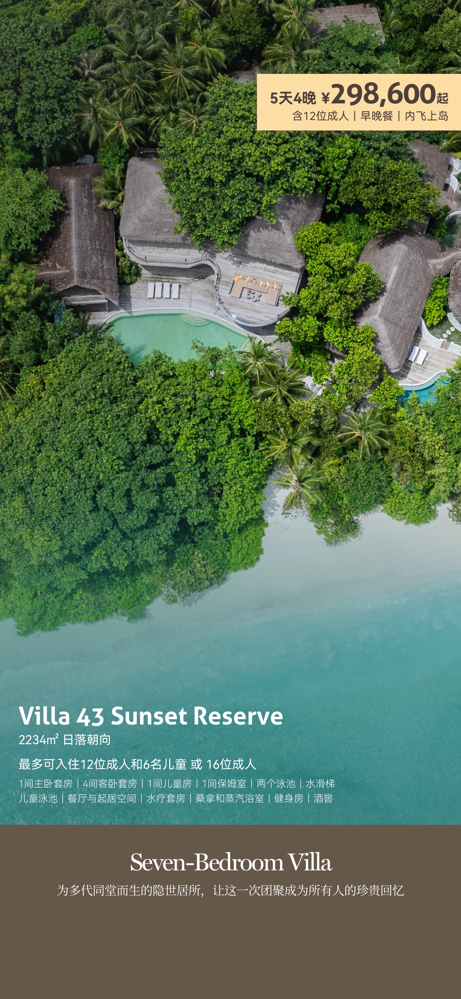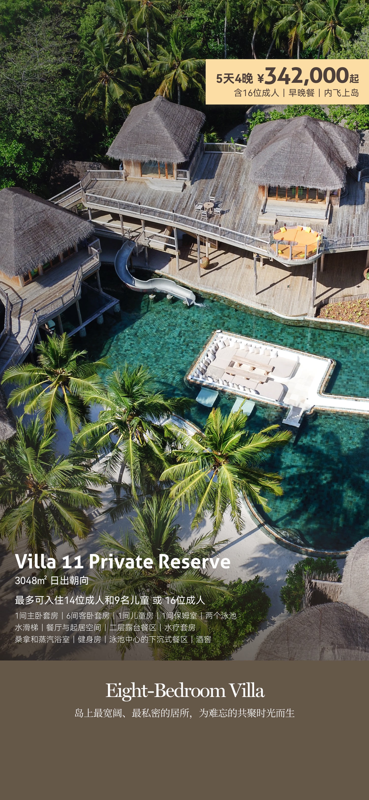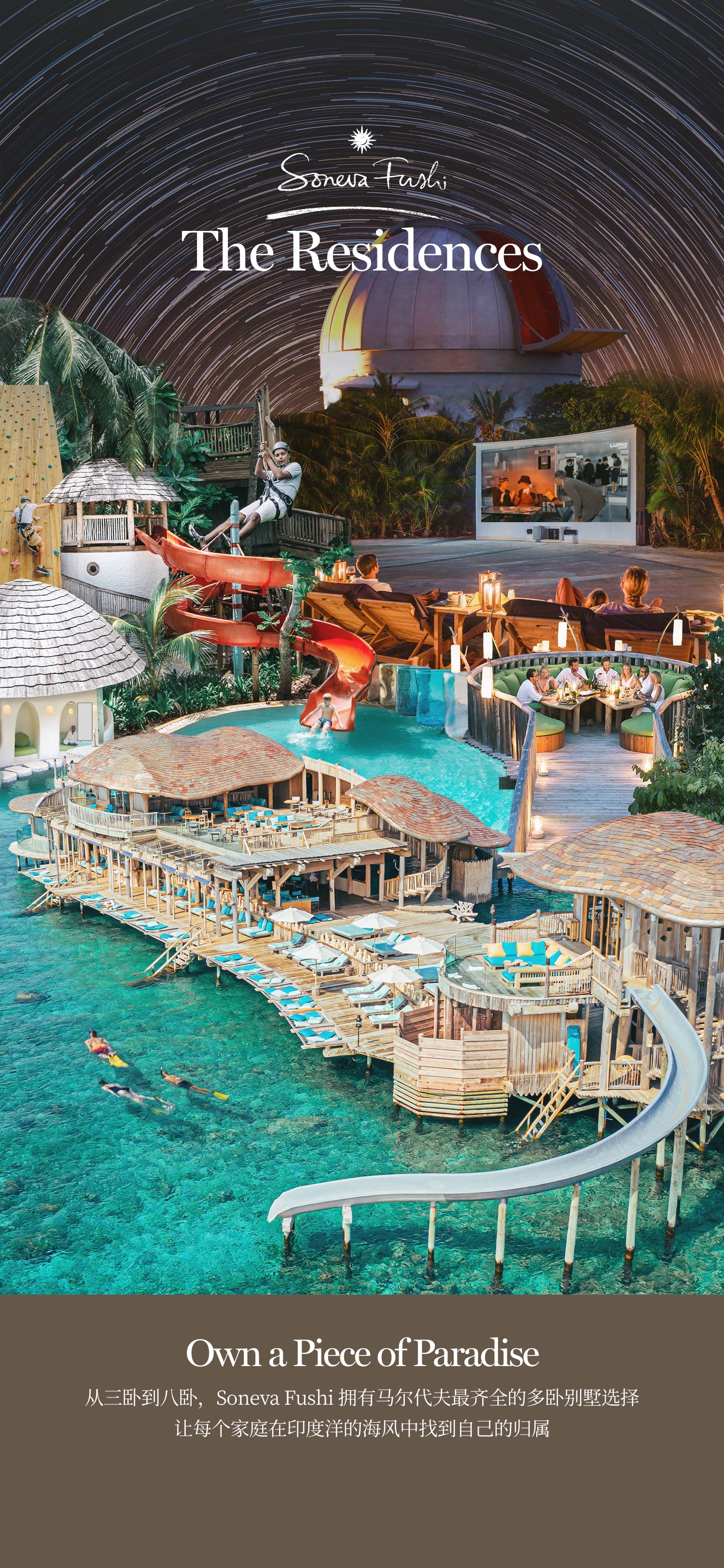 【马尔代夫索尼娃芙西| Soneva Fushi Residence】马尔代夫最齐全的多卧选择,3-8卧多卧室Residence,5天4晚含早晚餐含交通,低至2.1w+/人