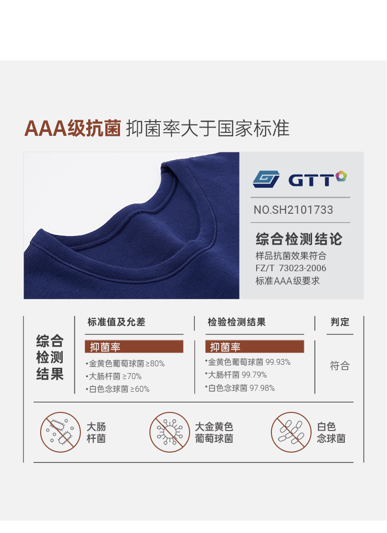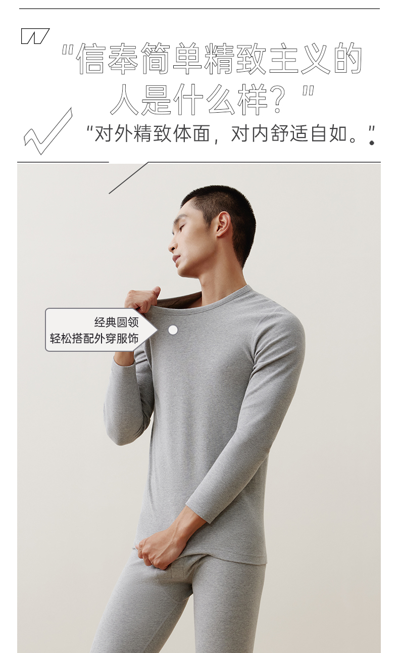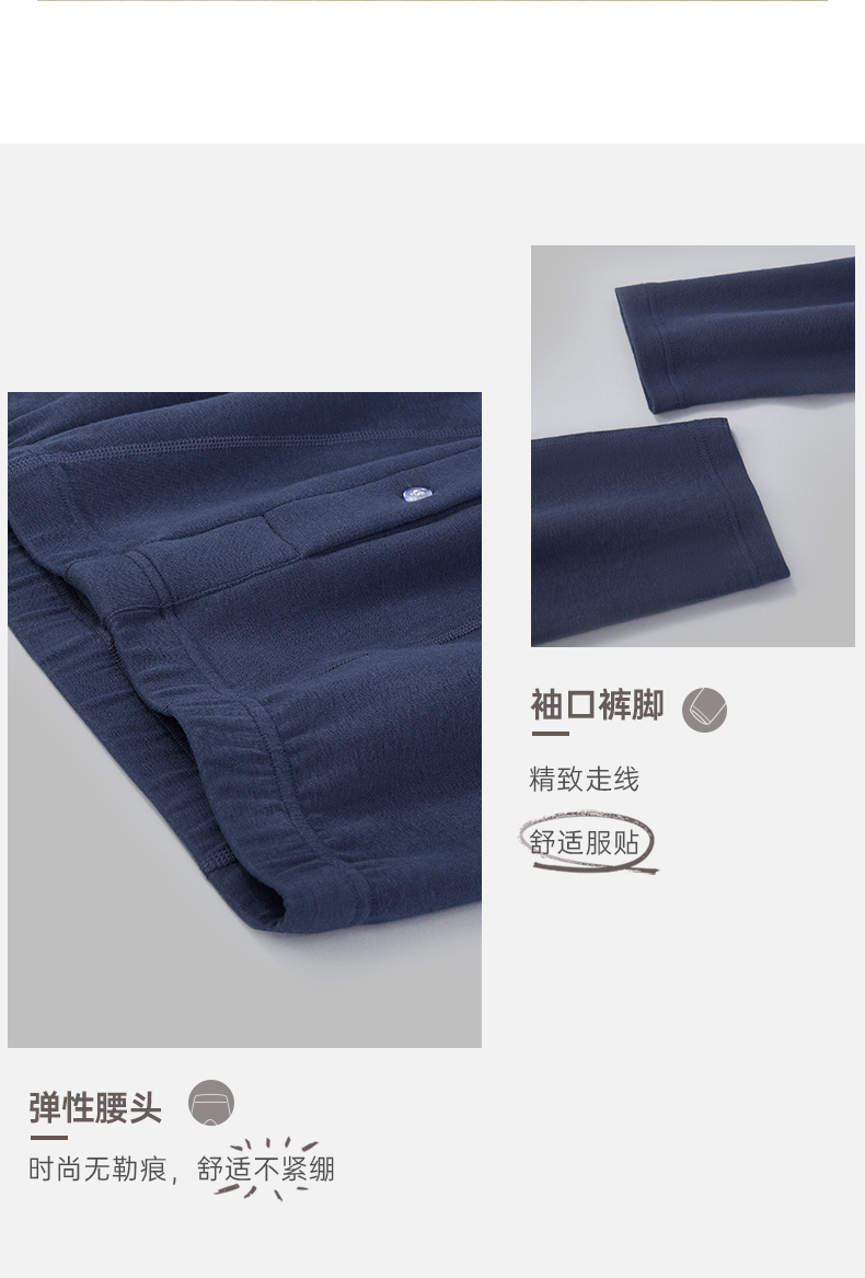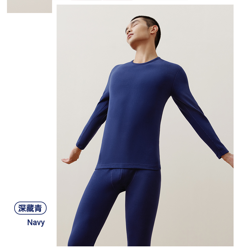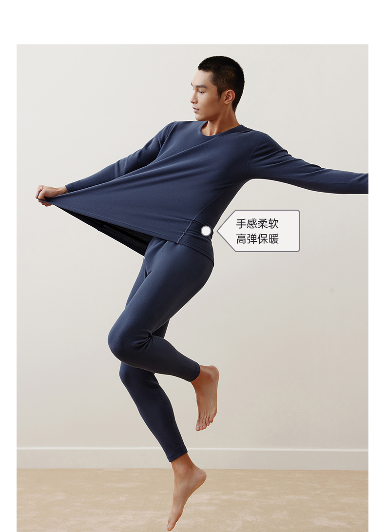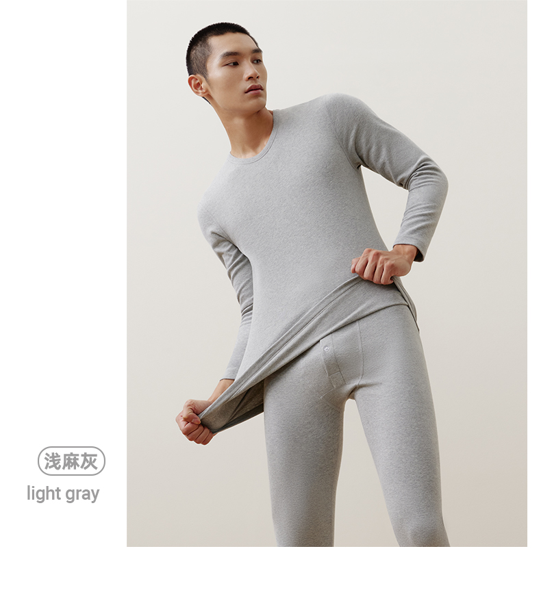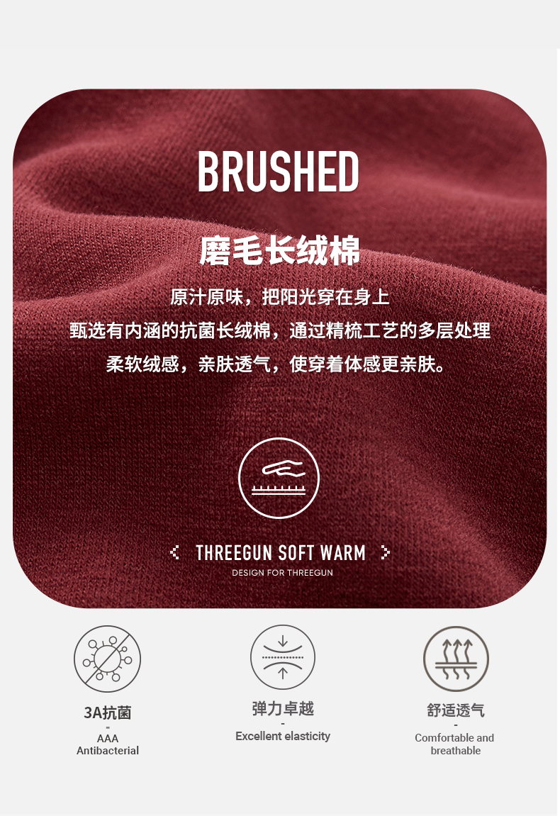Threegun三枪 【抗菌长绒棉】加厚磨毛绒圆领男士保暖内衣套装-23805D021