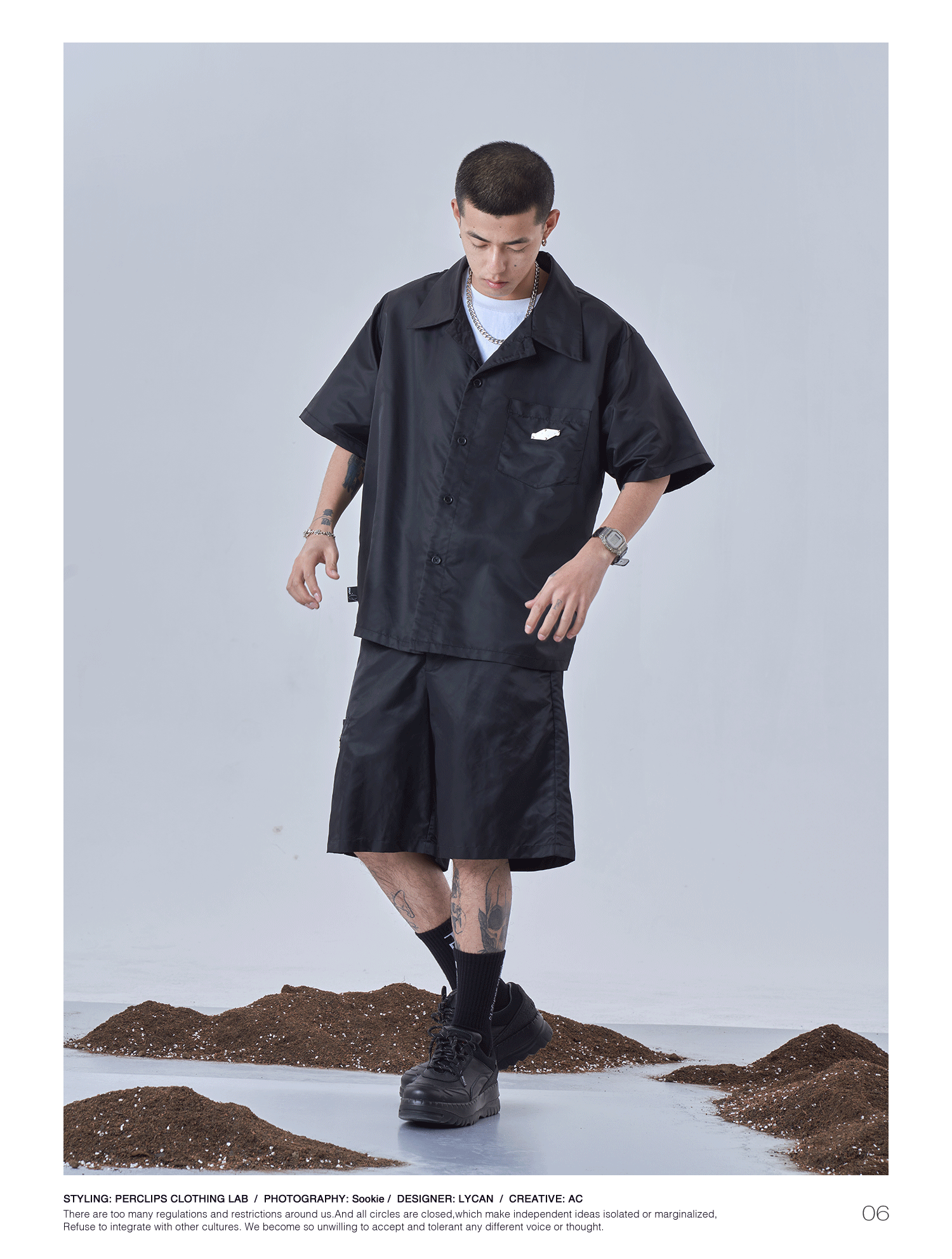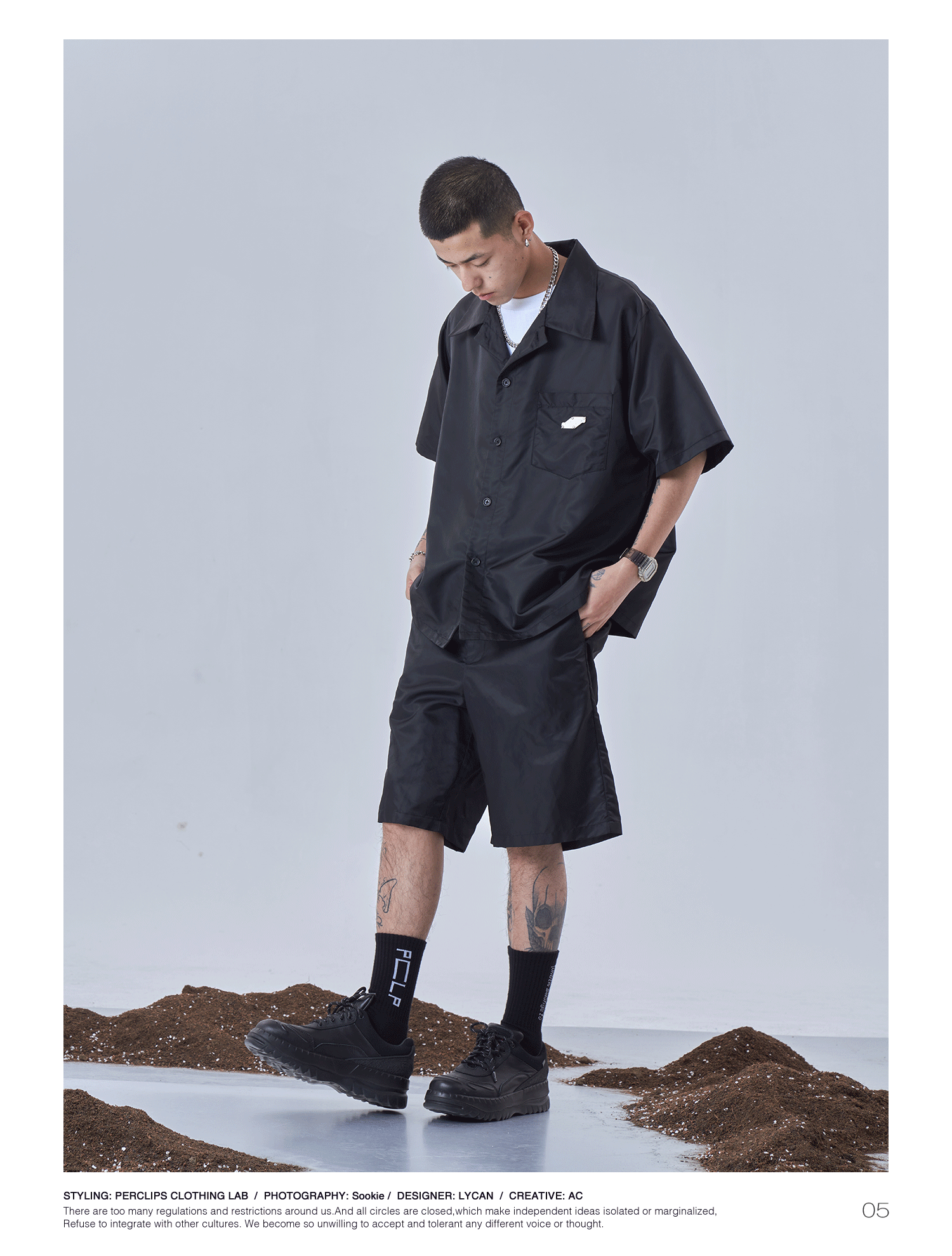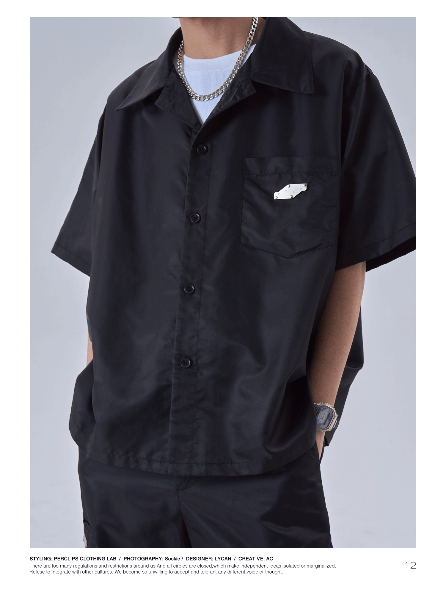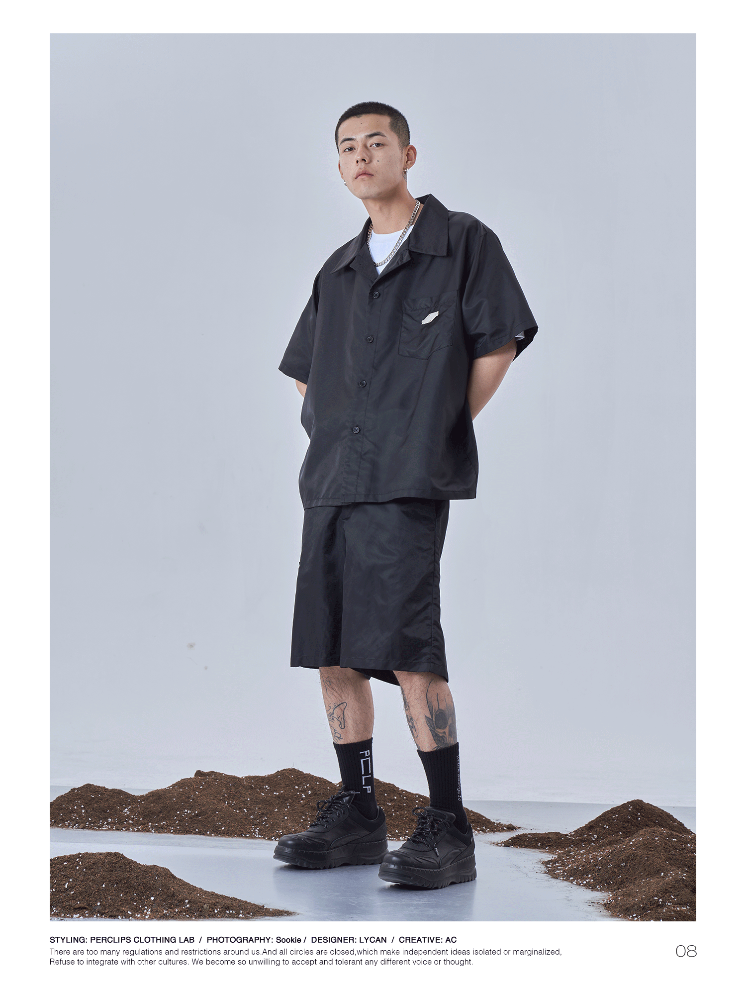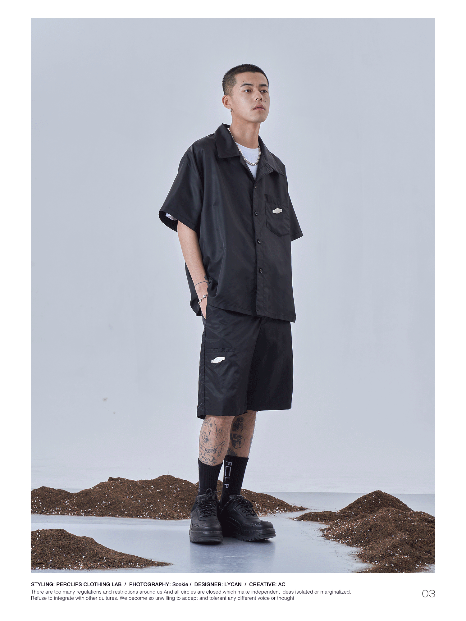 PCLP(PERCLIPS) 金属牌短袖衬衫 潮流解构工装日系港风男半袖衬衣