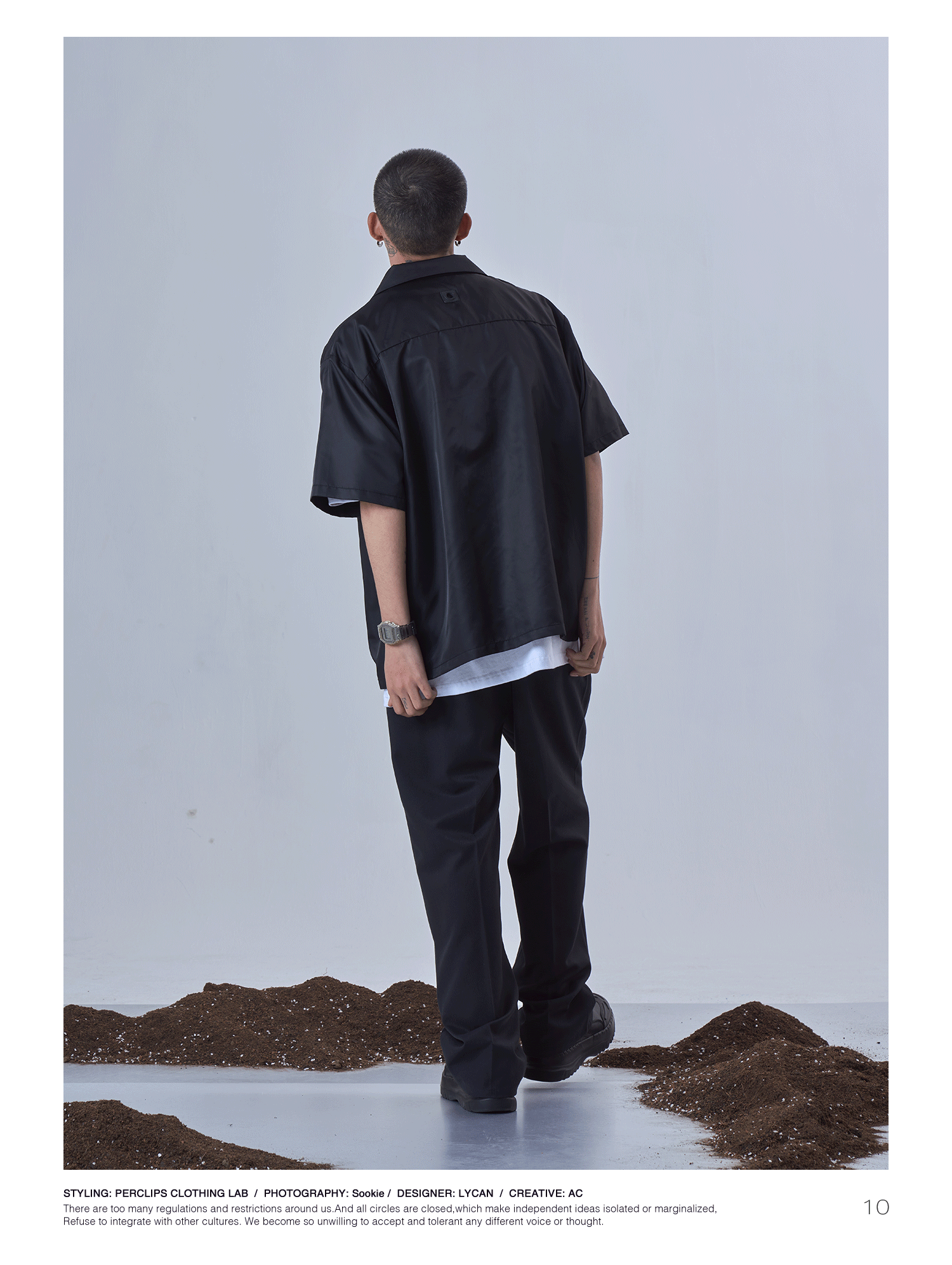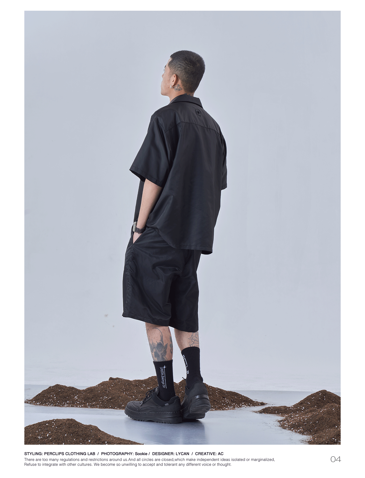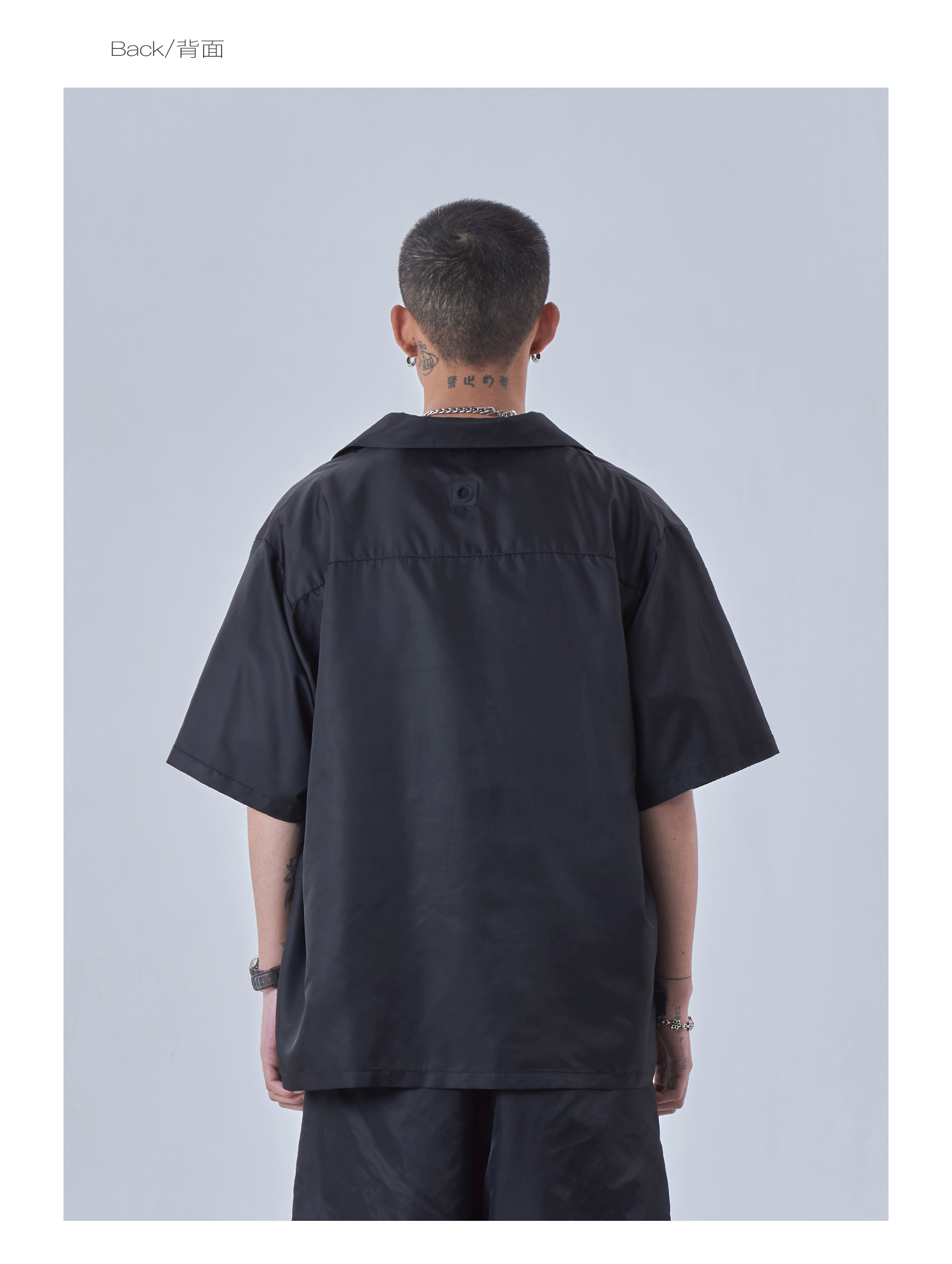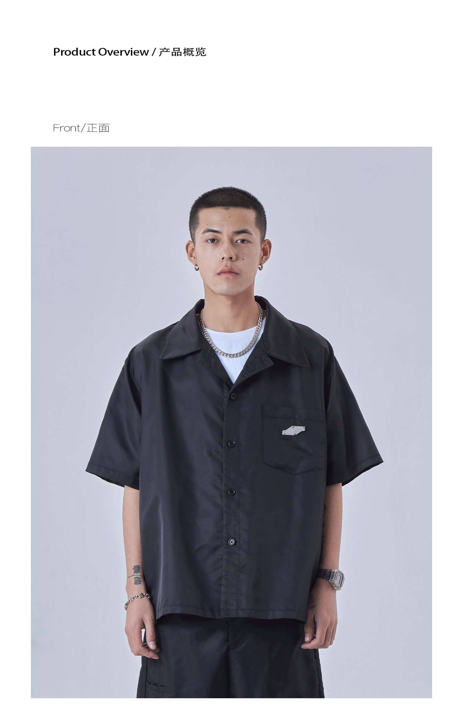 PCLP(PERCLIPS) 金属牌短袖衬衫 潮流解构工装日系港风男半袖衬衣