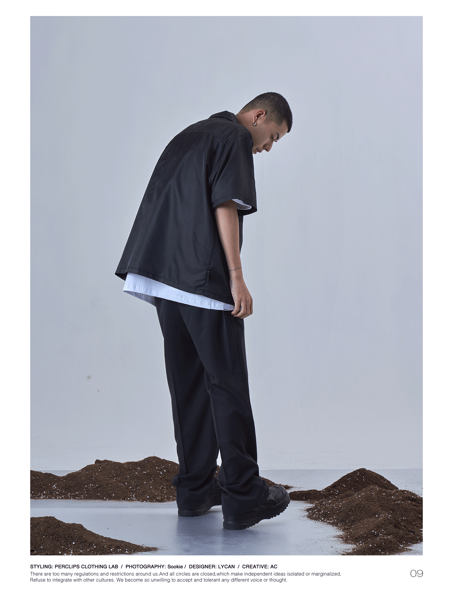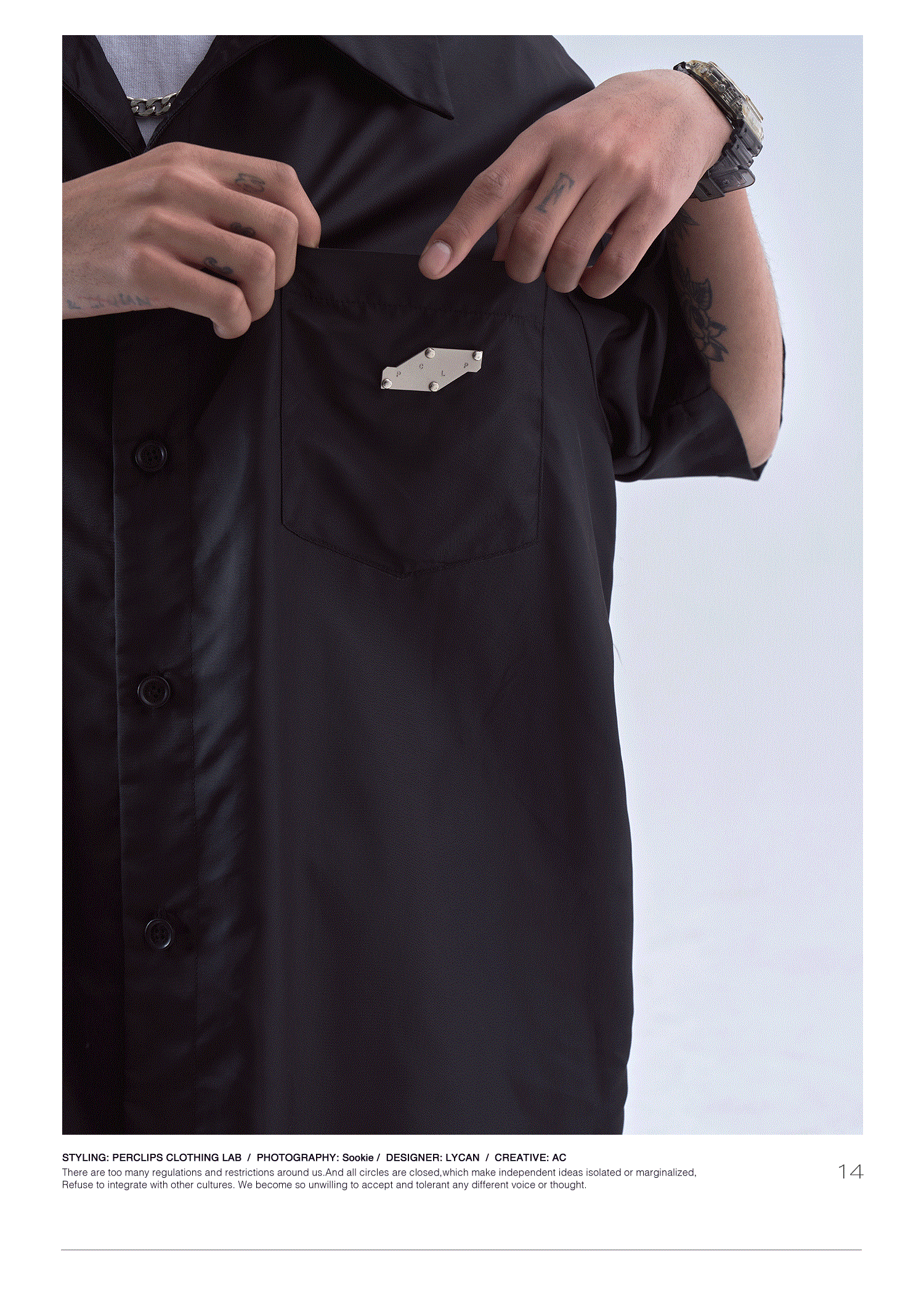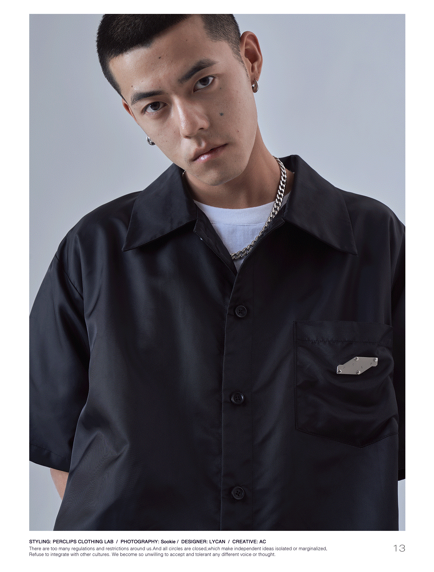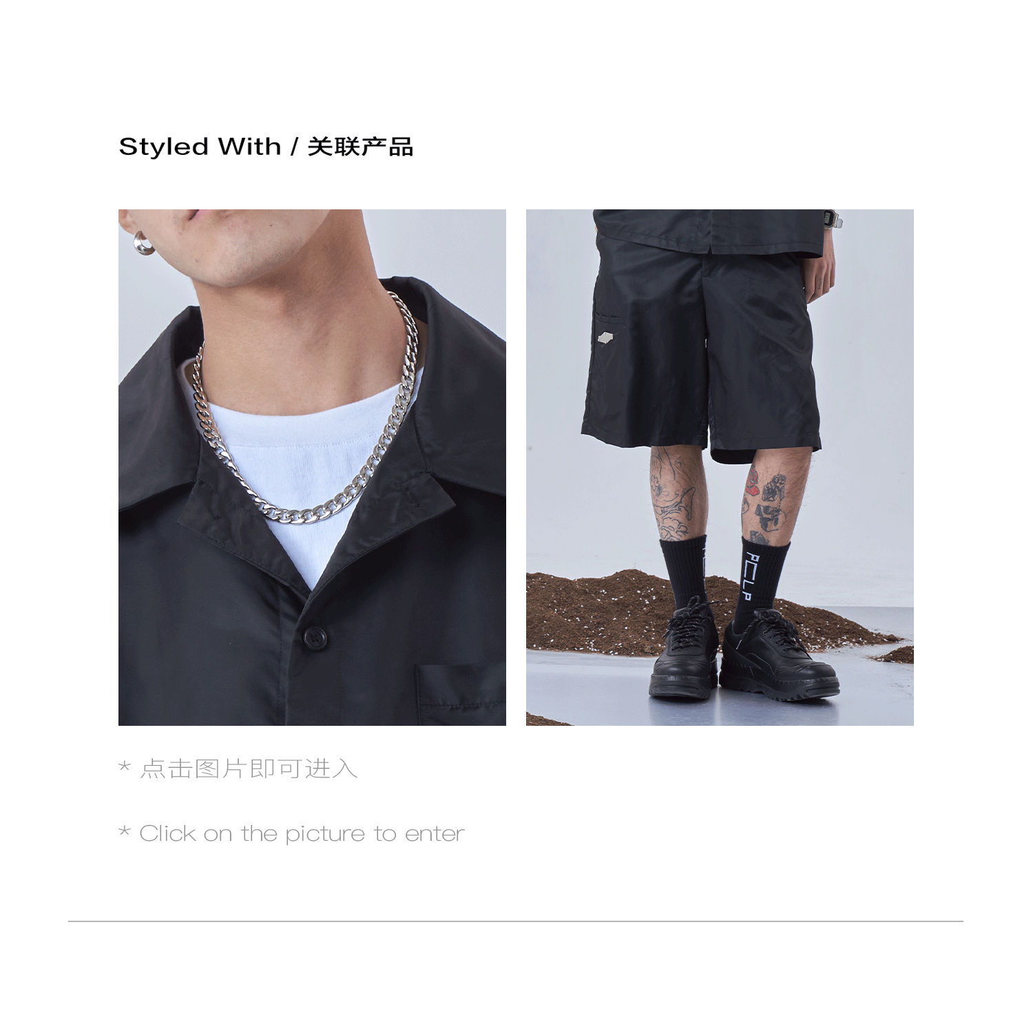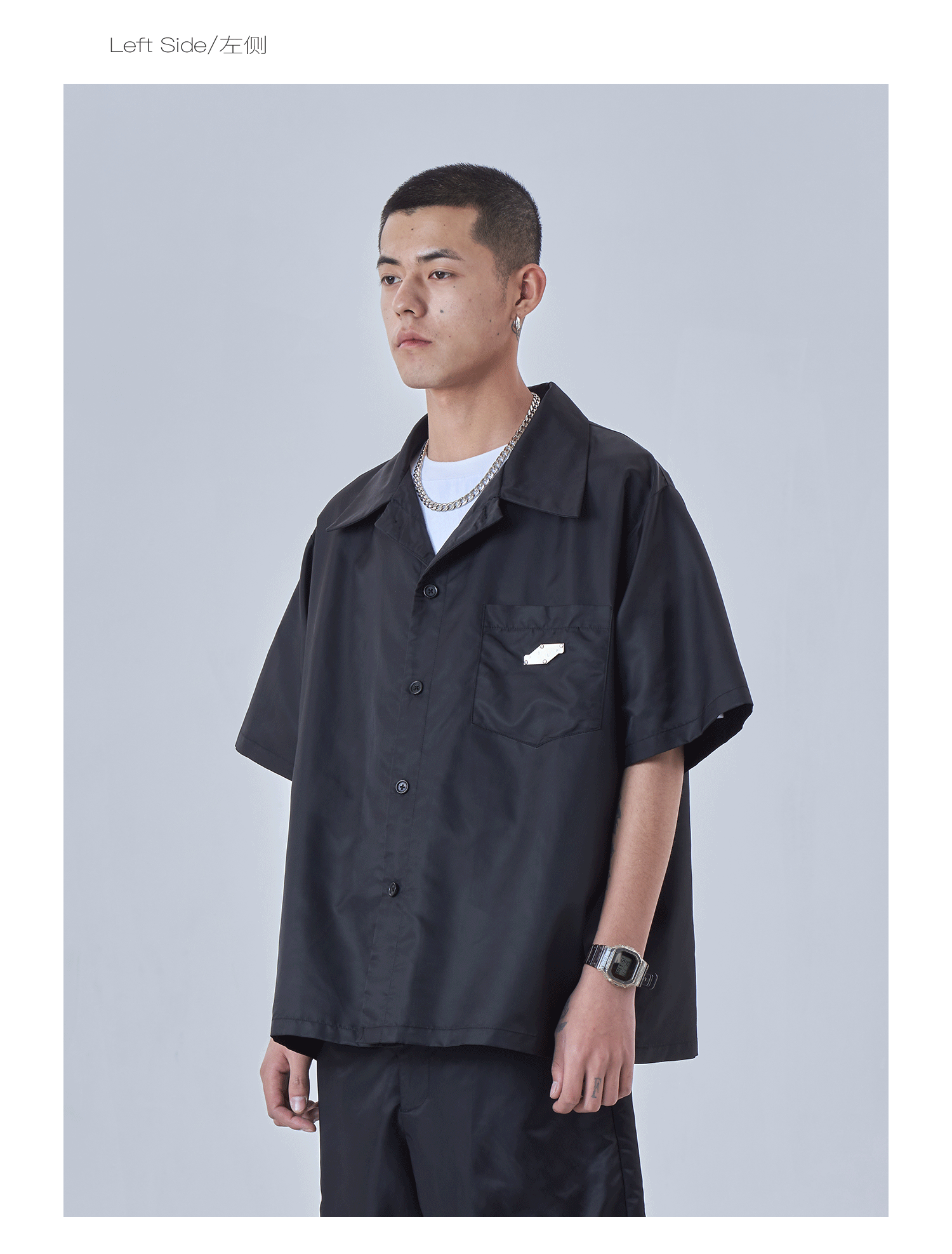 PCLP(PERCLIPS) 金属牌短袖衬衫 潮流解构工装日系港风男半袖衬衣