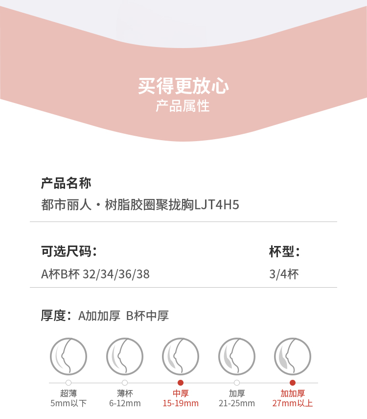 都市丽人调整型内衣舒软挺塑塑身文胸蕾丝A:加加厚B:中厚塑身内衣3/4杯四排扣LJT4H5