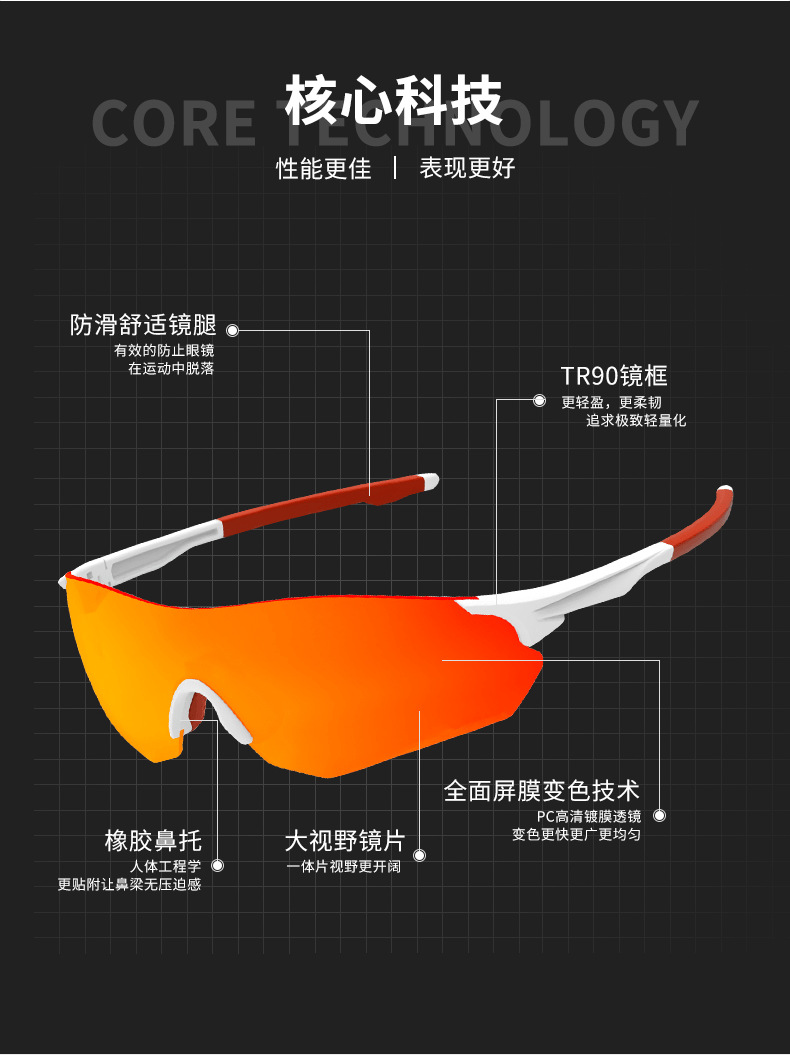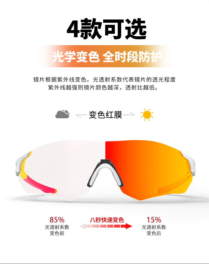【马拉松变色眼镜】斯迅/男女户外运动跑步骑行变色眼镜TR90 白晚户外运动马拉松眼镜长途跑步眼镜