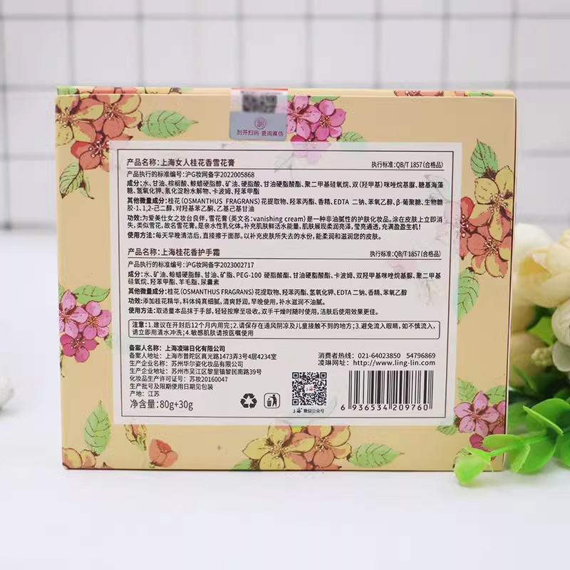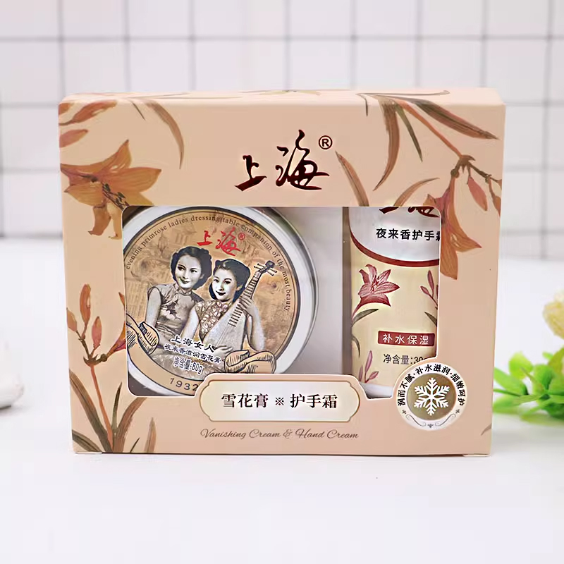 上海女人雪花膏+护手霜礼盒夜来香夜玫瑰茉莉桂花