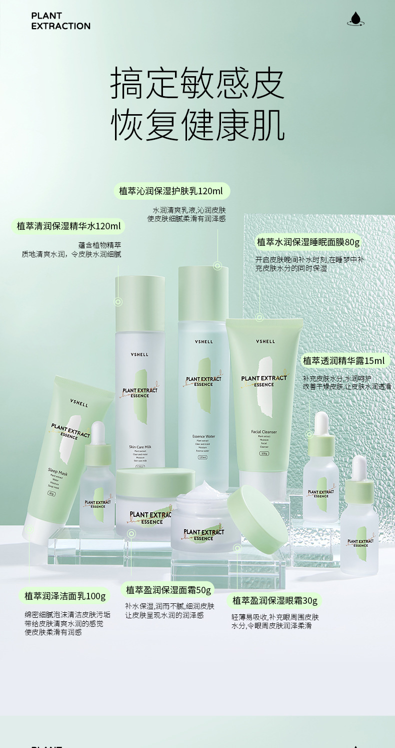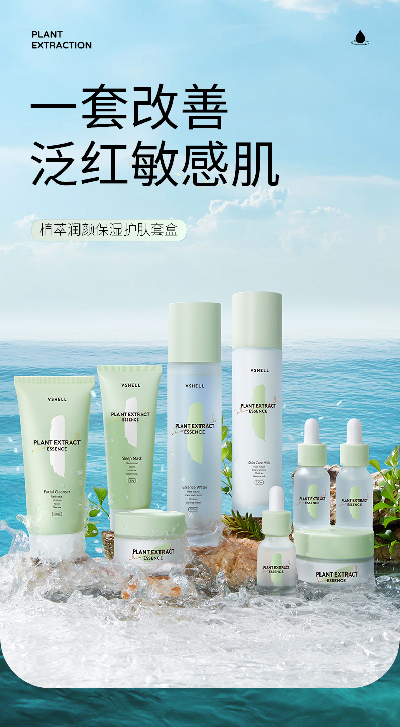 新品推荐【植贝植萃润颜保湿套盒】海茴香九件套补水保湿护肤品套装化妆品水乳套装学生女 滋润水乳面霜眼霜秋冬护肤「情人节礼物」