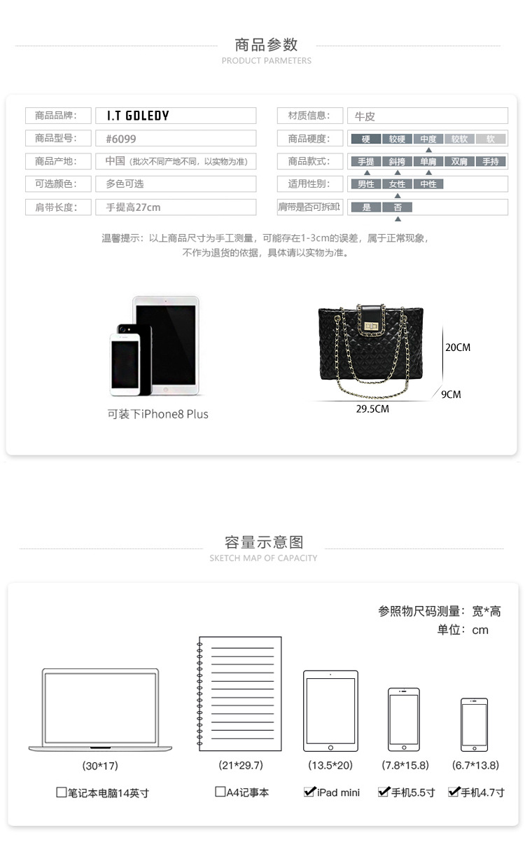 「两款配色」IT GDLEDY大容量托特包包 女士单肩链条包包箱包配饰