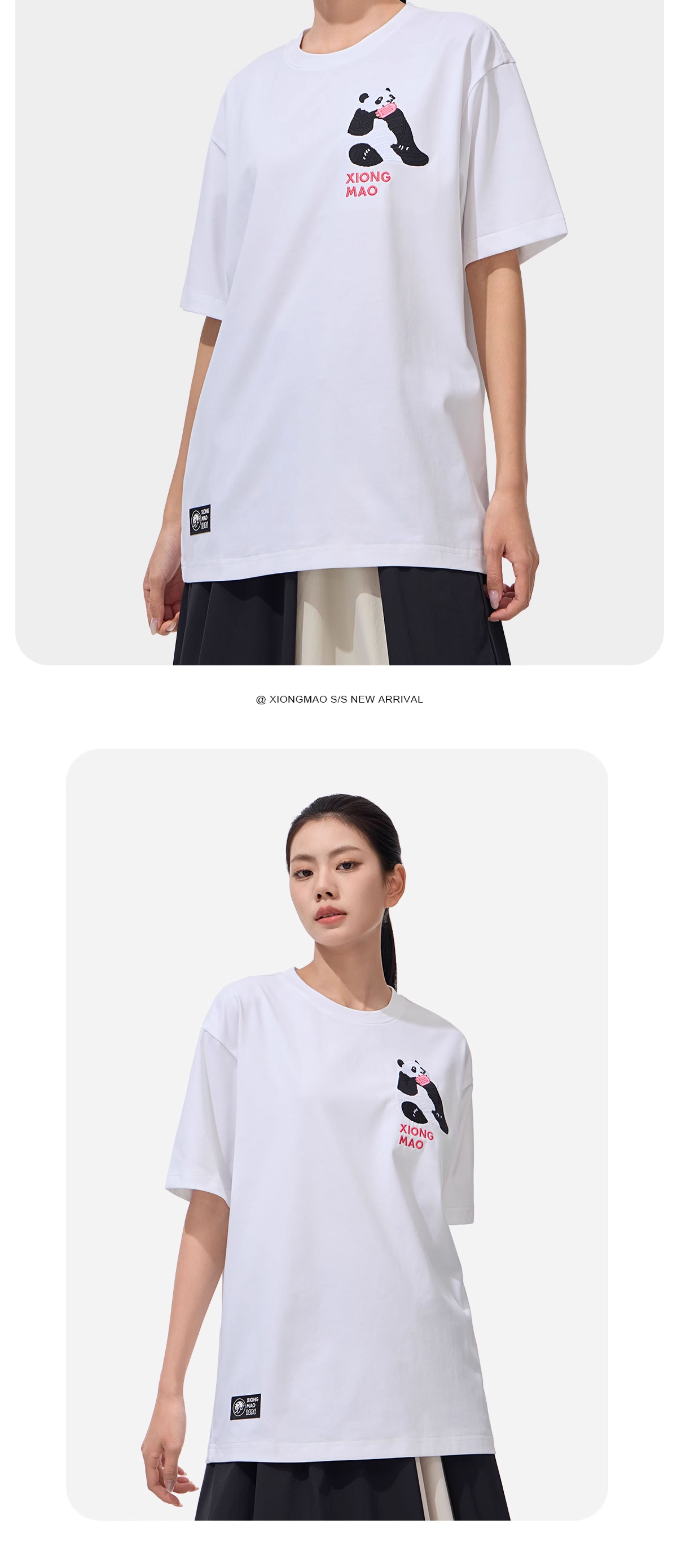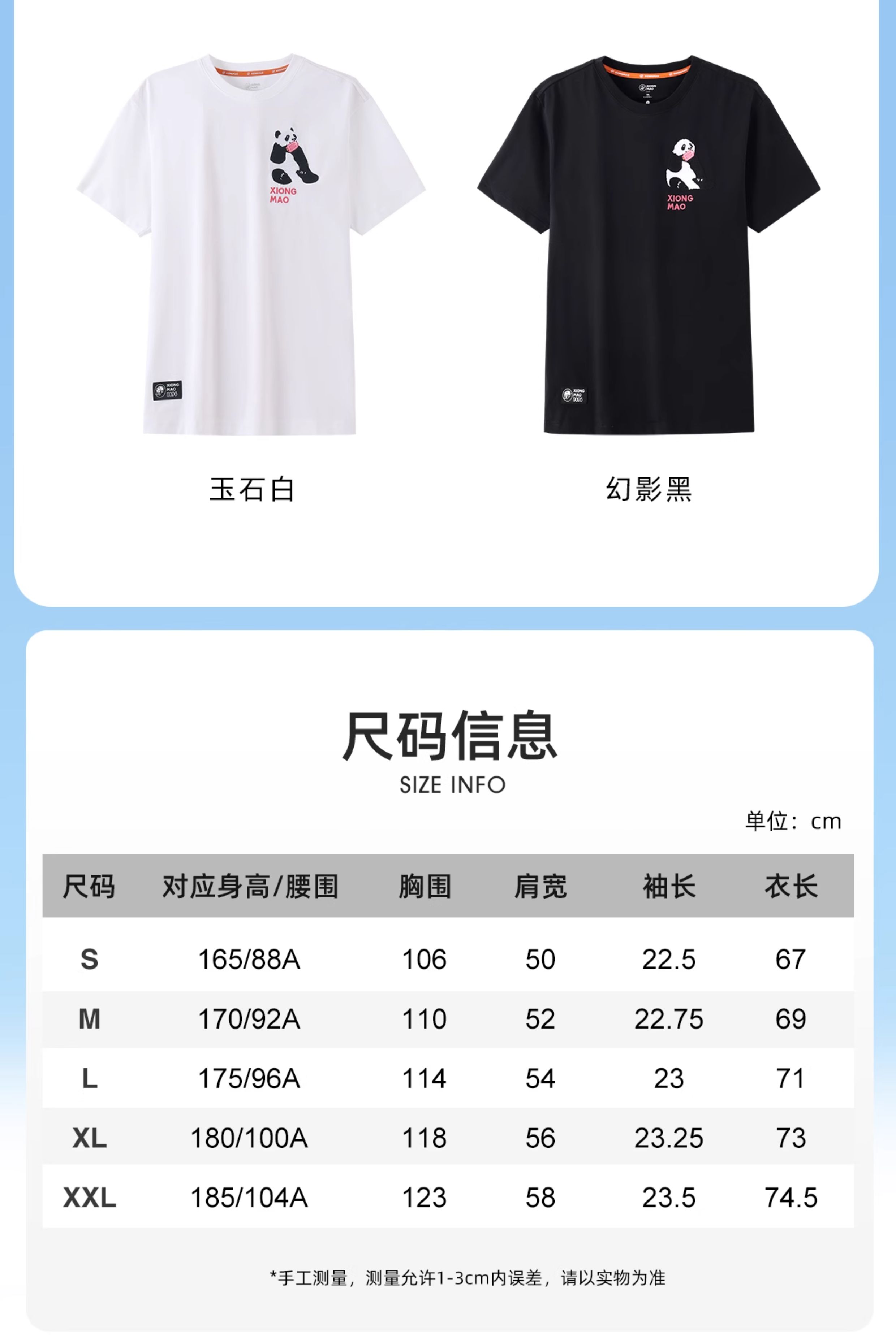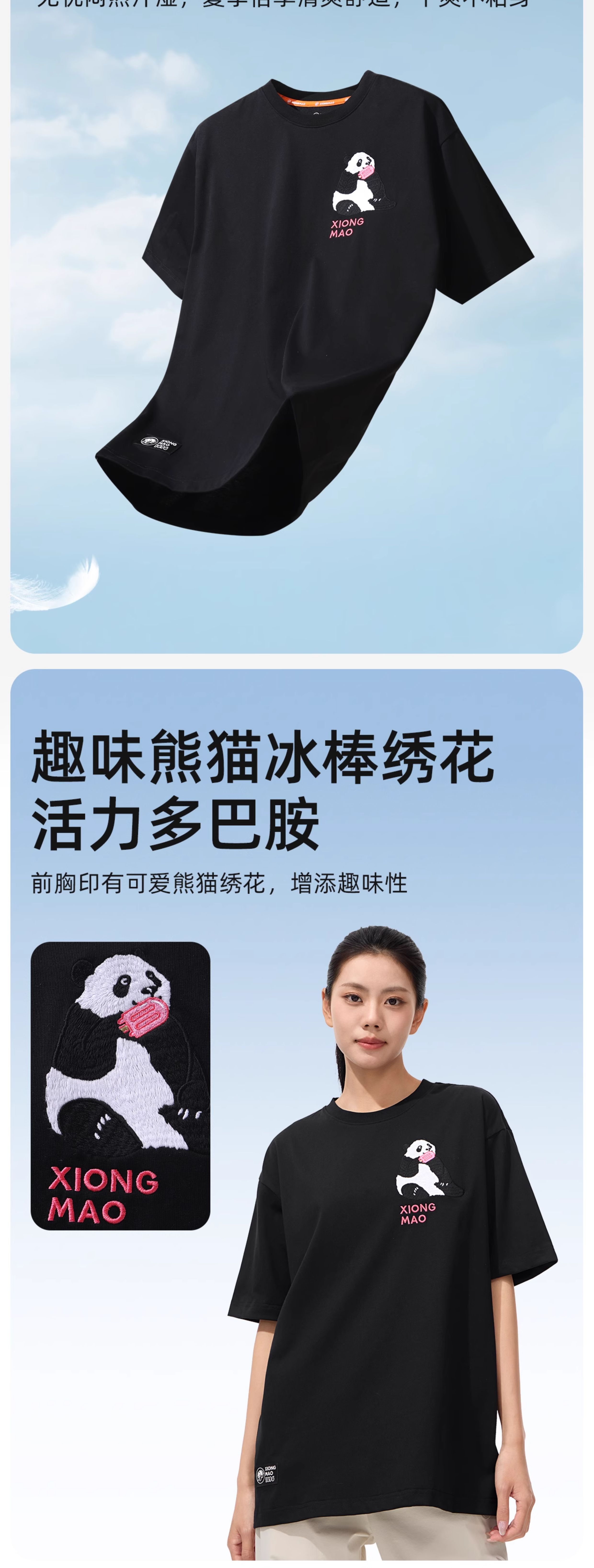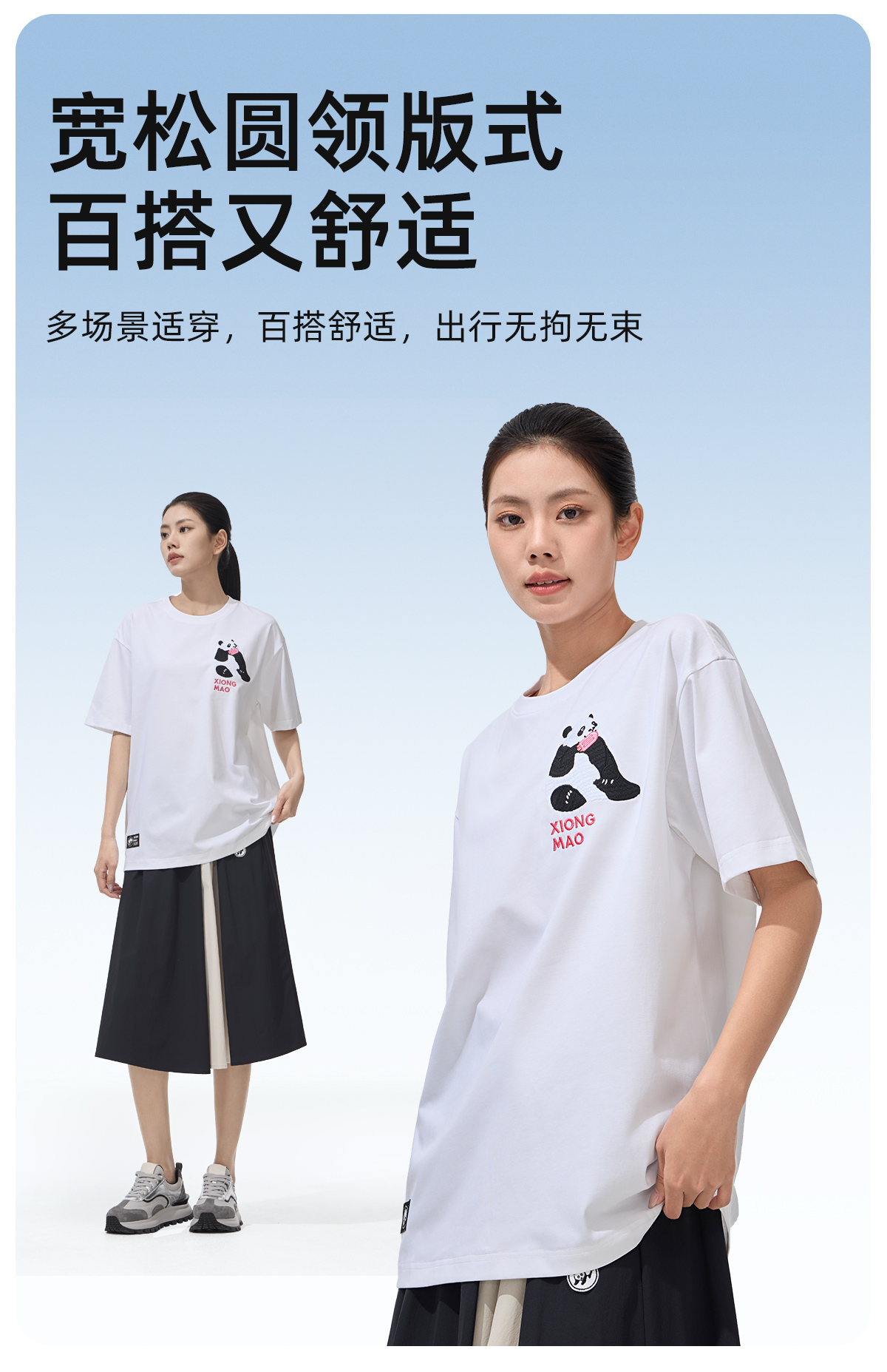 熊猫中性款休闲圆领短袖t恤女装宽松吸湿速干透气上衣男装 A34BZ01172