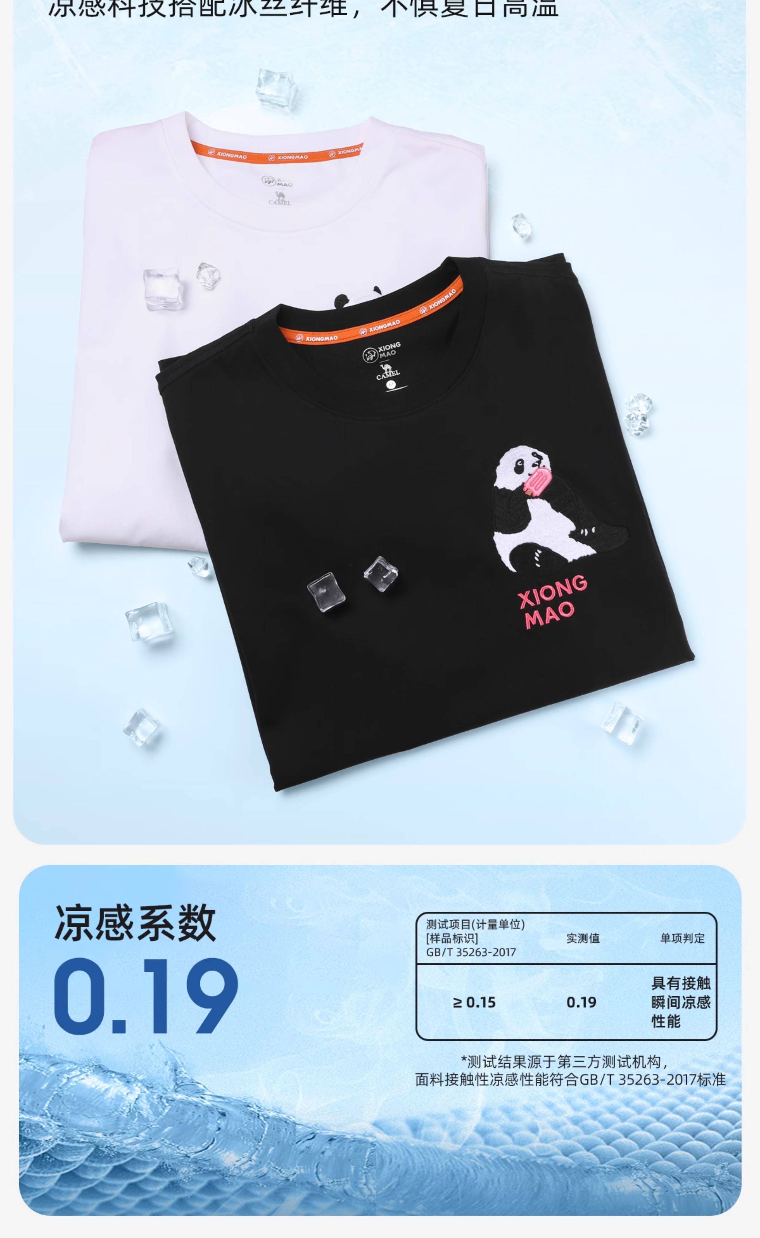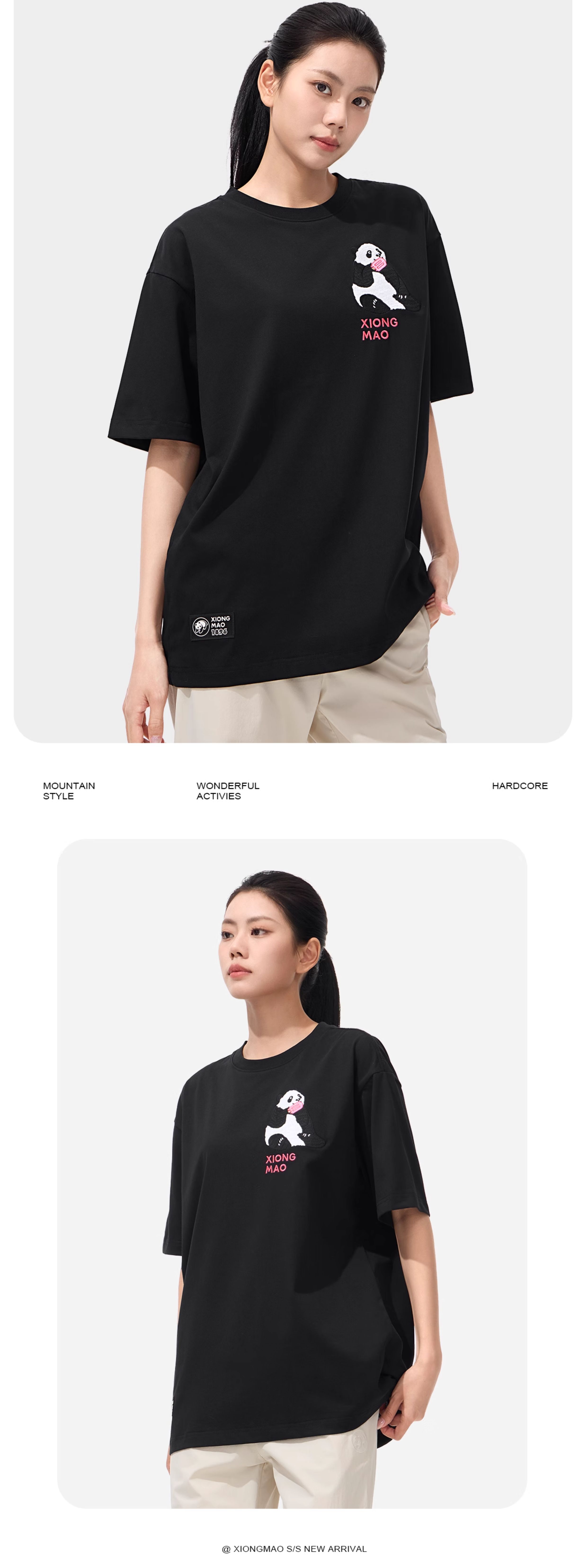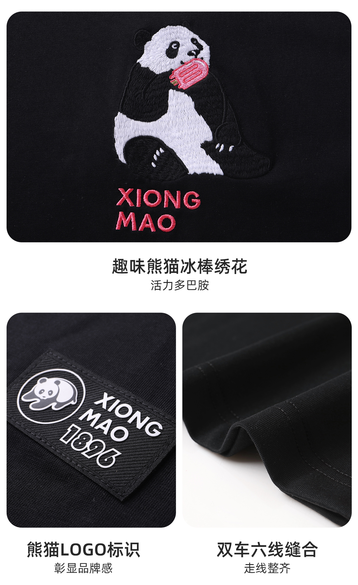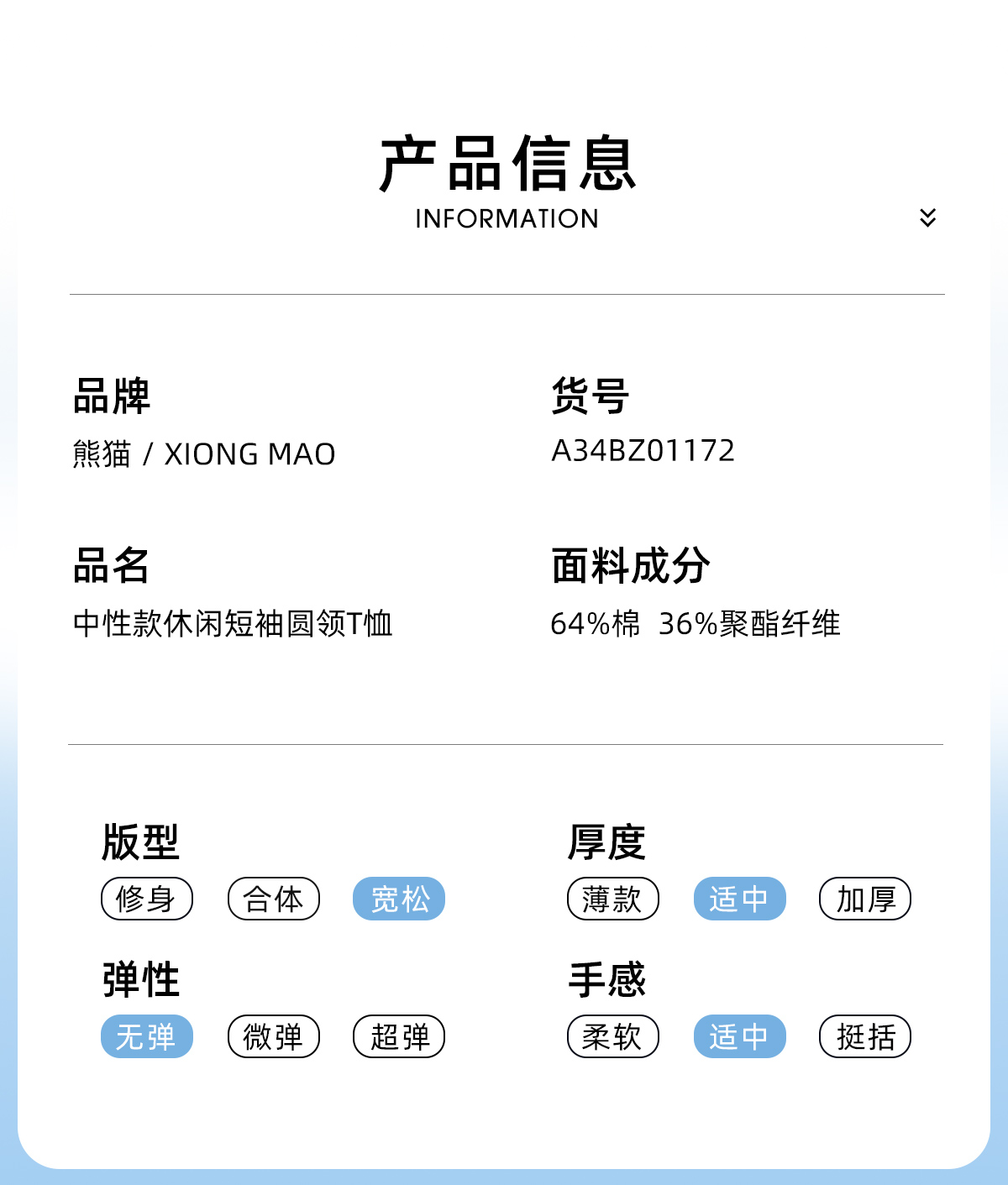 熊猫中性款休闲圆领短袖t恤女装宽松吸湿速干透气上衣男装 A34BZ01172