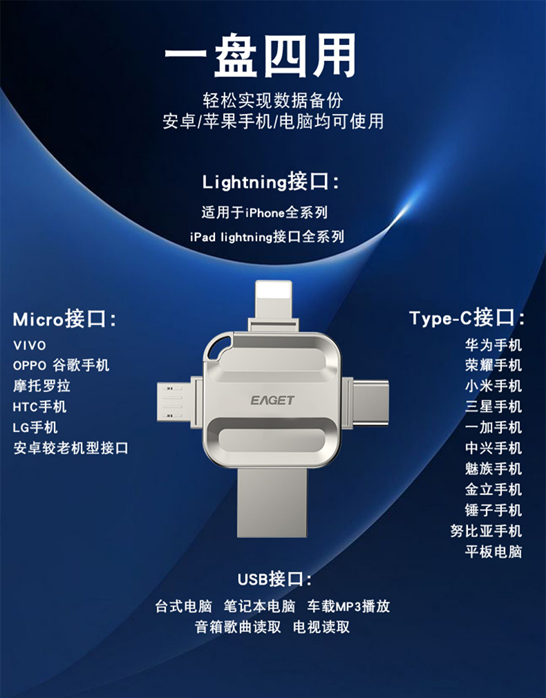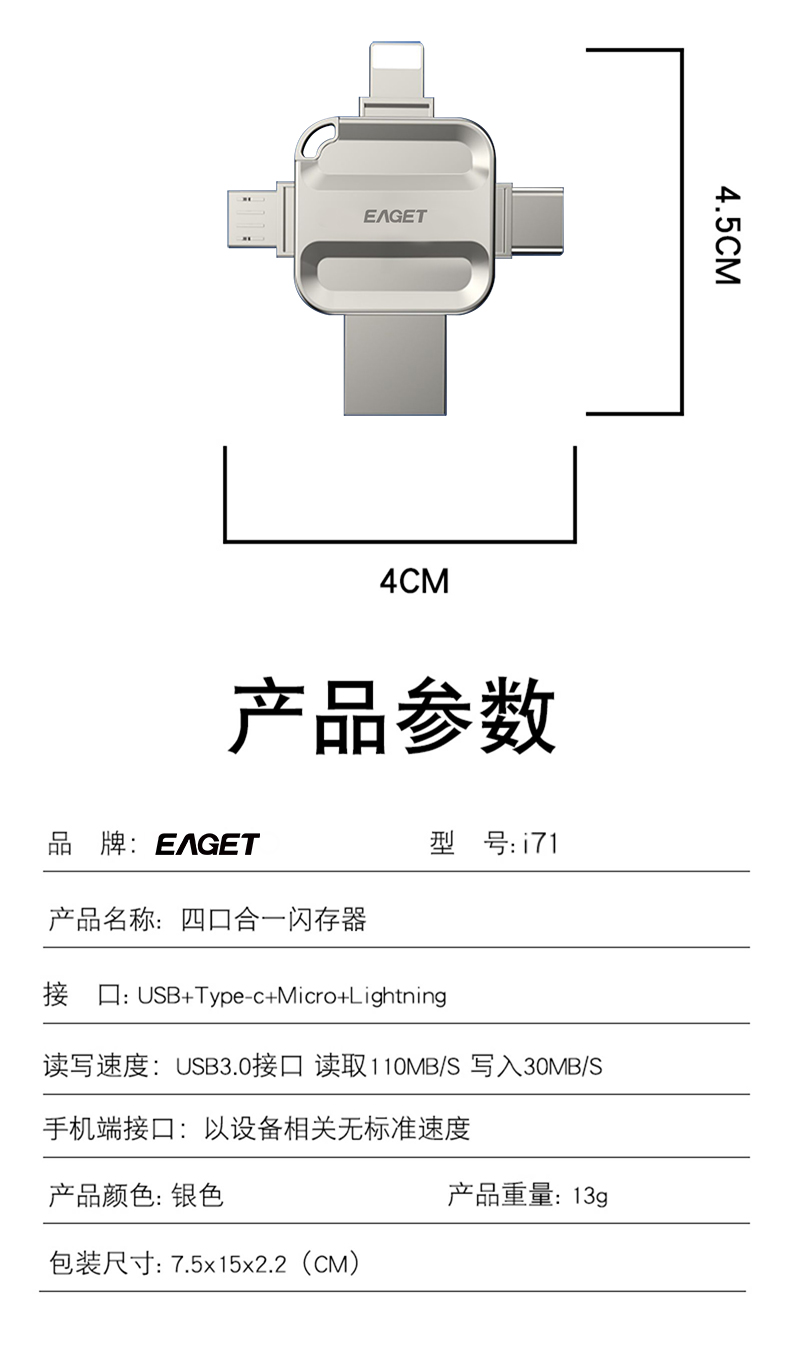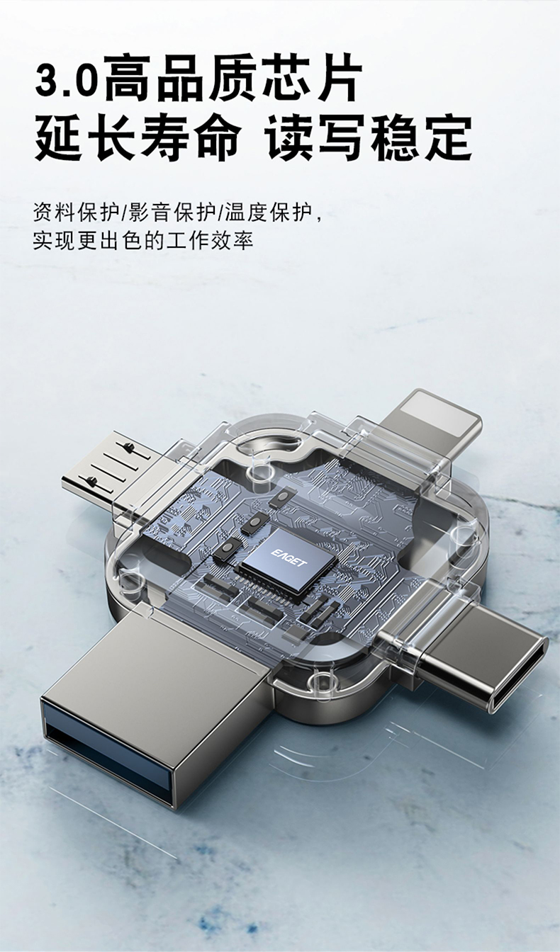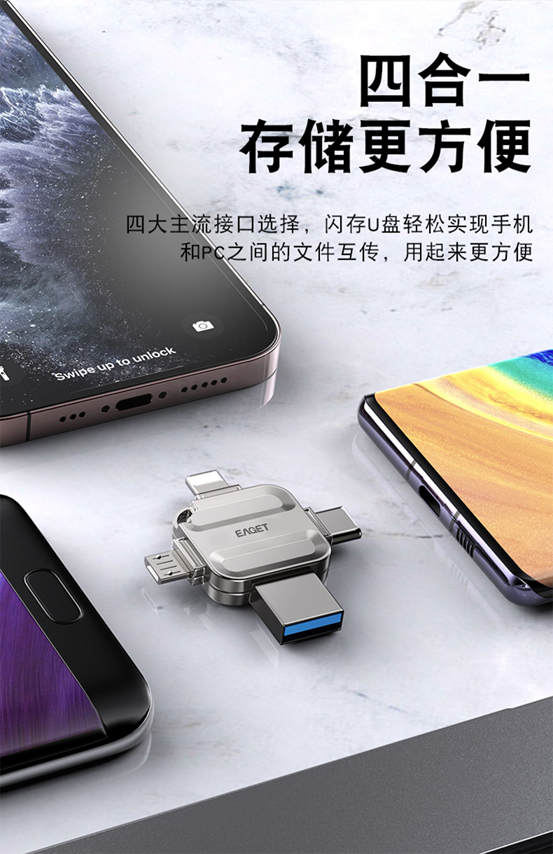 忆捷I71-128G USB3.0 Lightning Type-C MicroUSB口 苹果安卓华为手机电脑通用四接口存储U盘