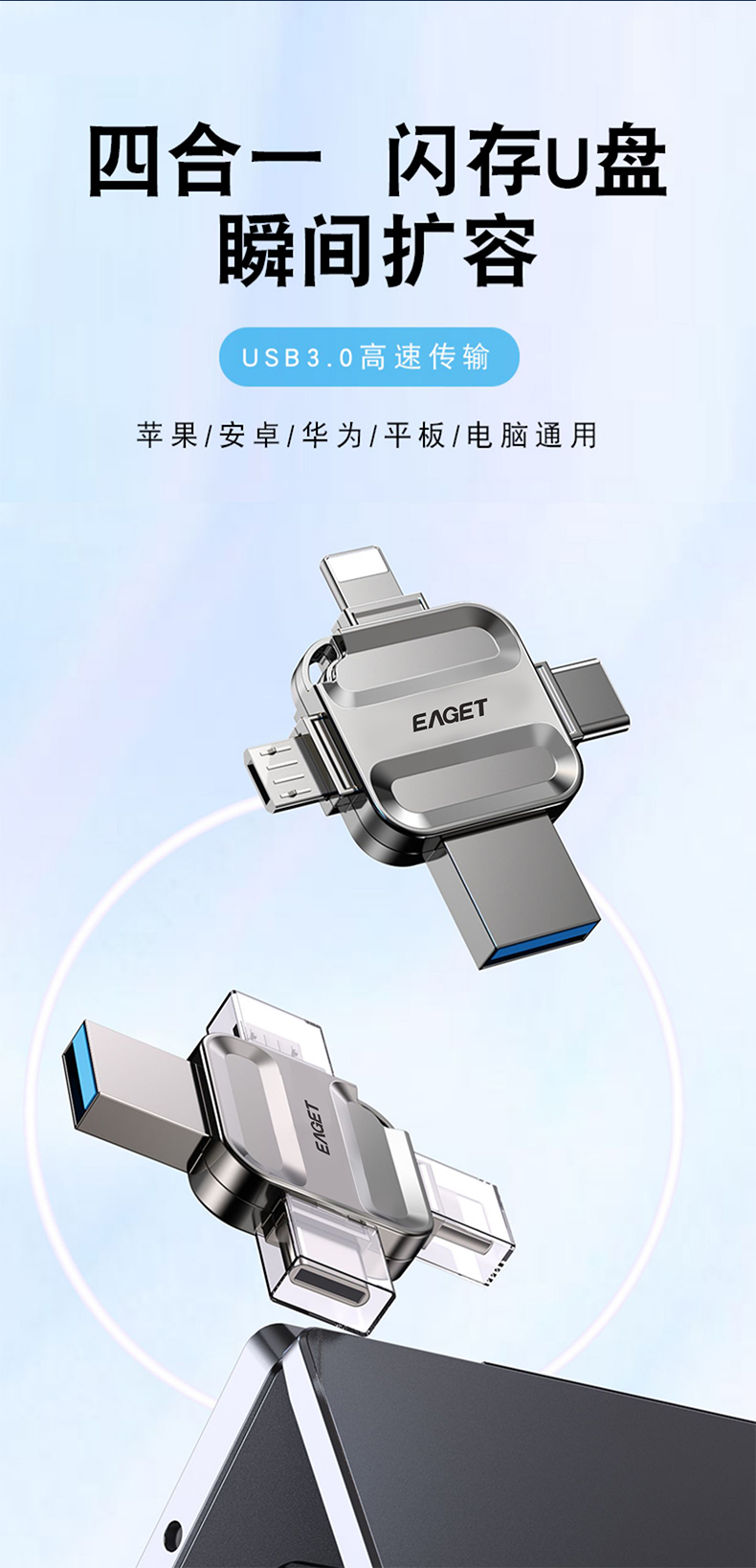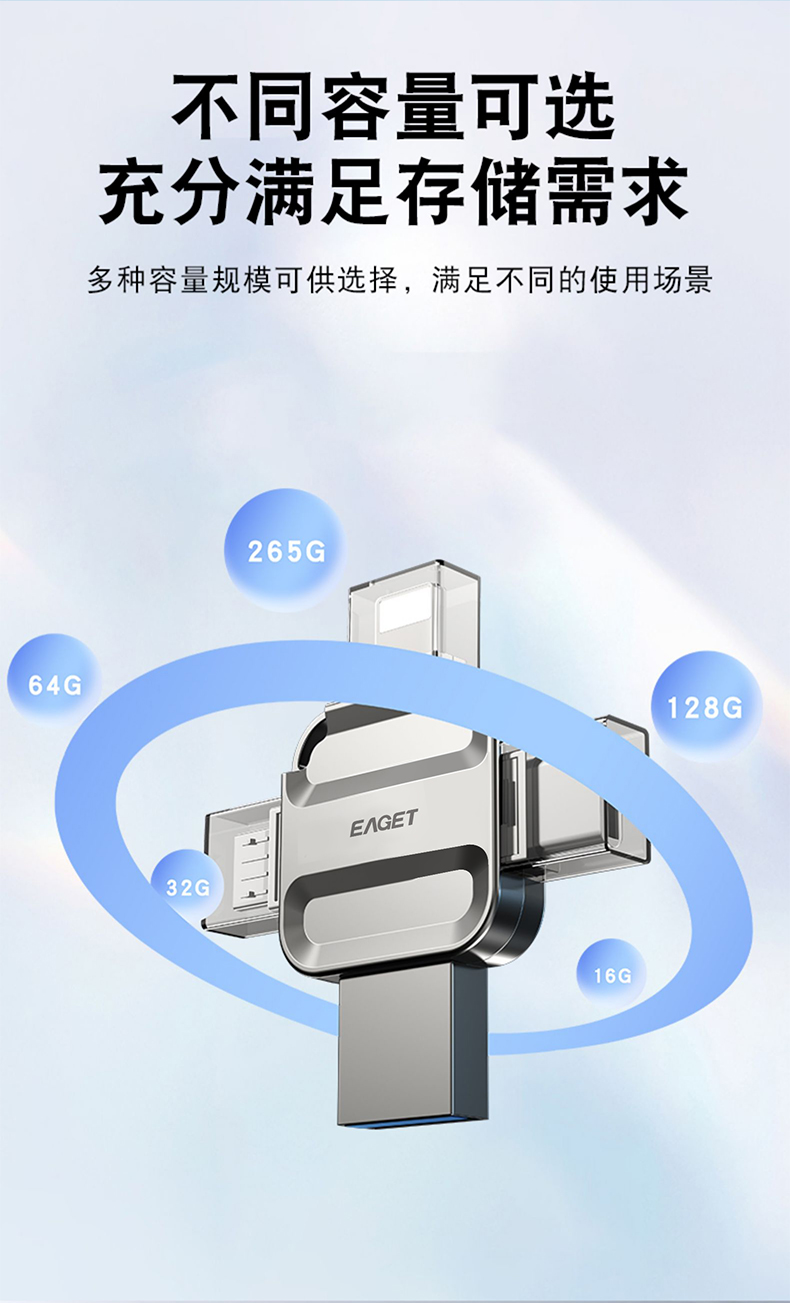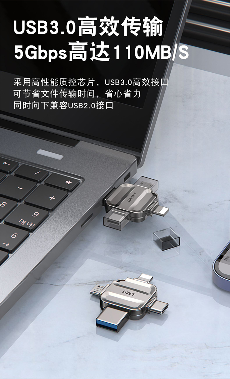 忆捷I71-128G USB3.0 Lightning Type-C MicroUSB口 苹果安卓华为手机电脑通用四接口存储U盘