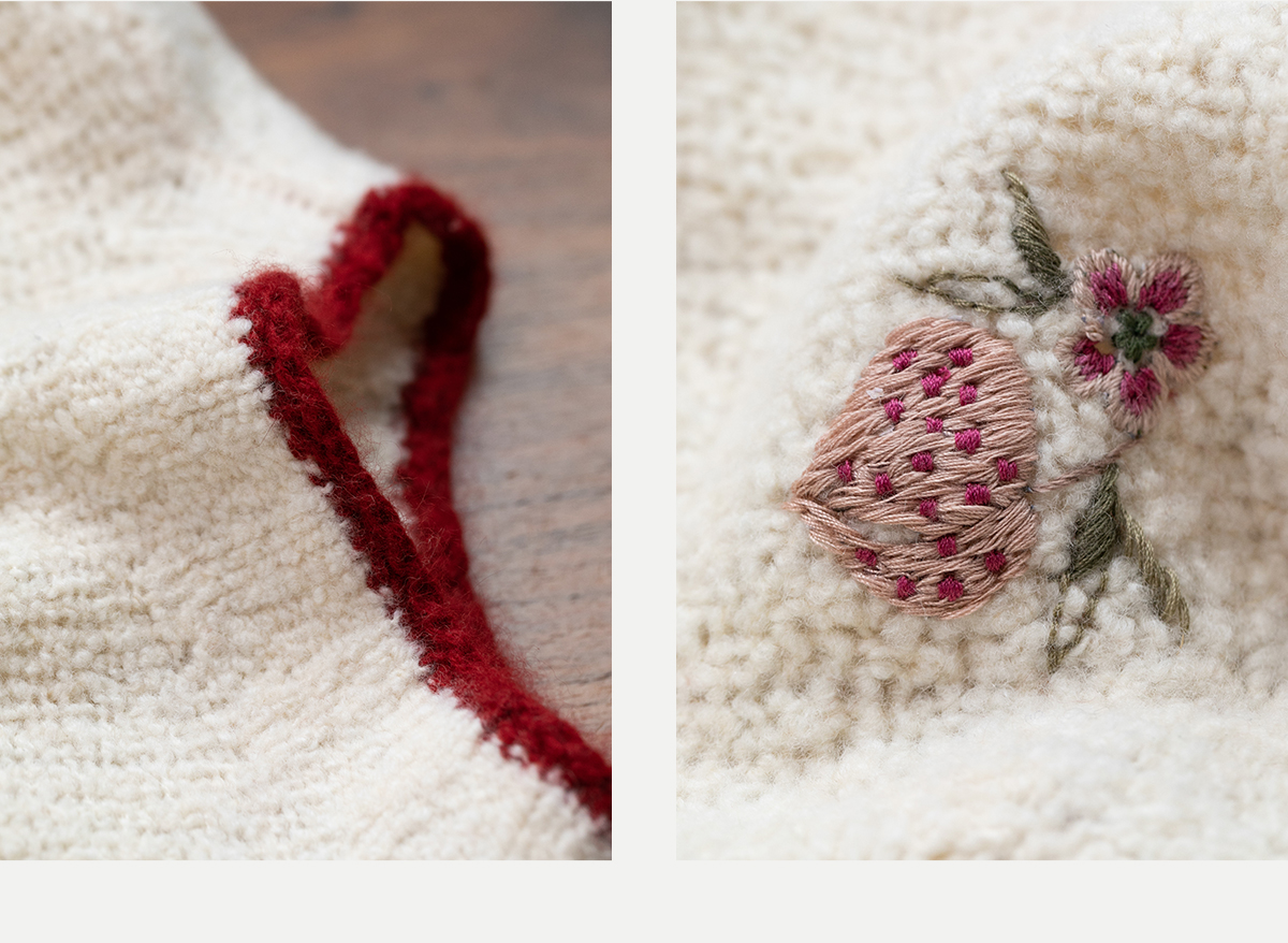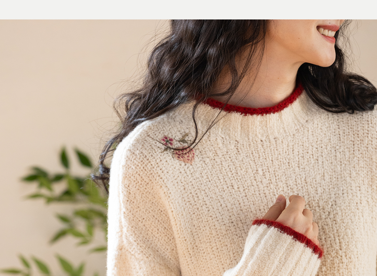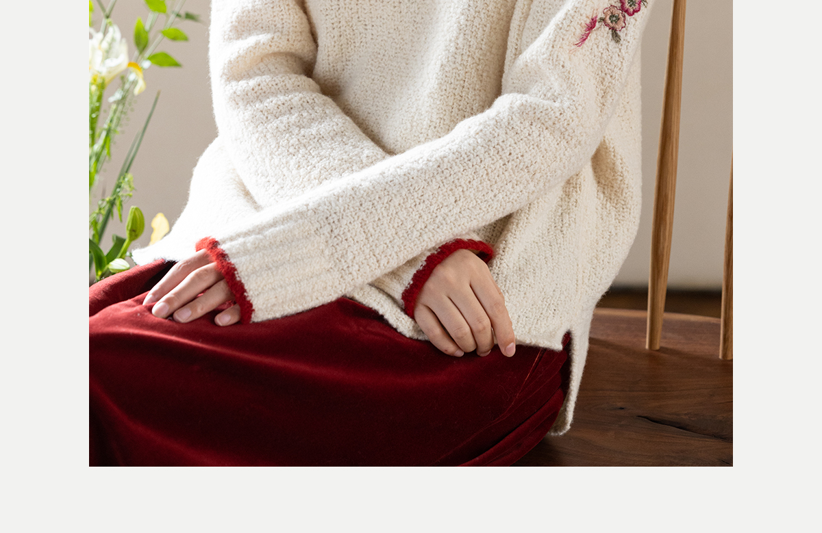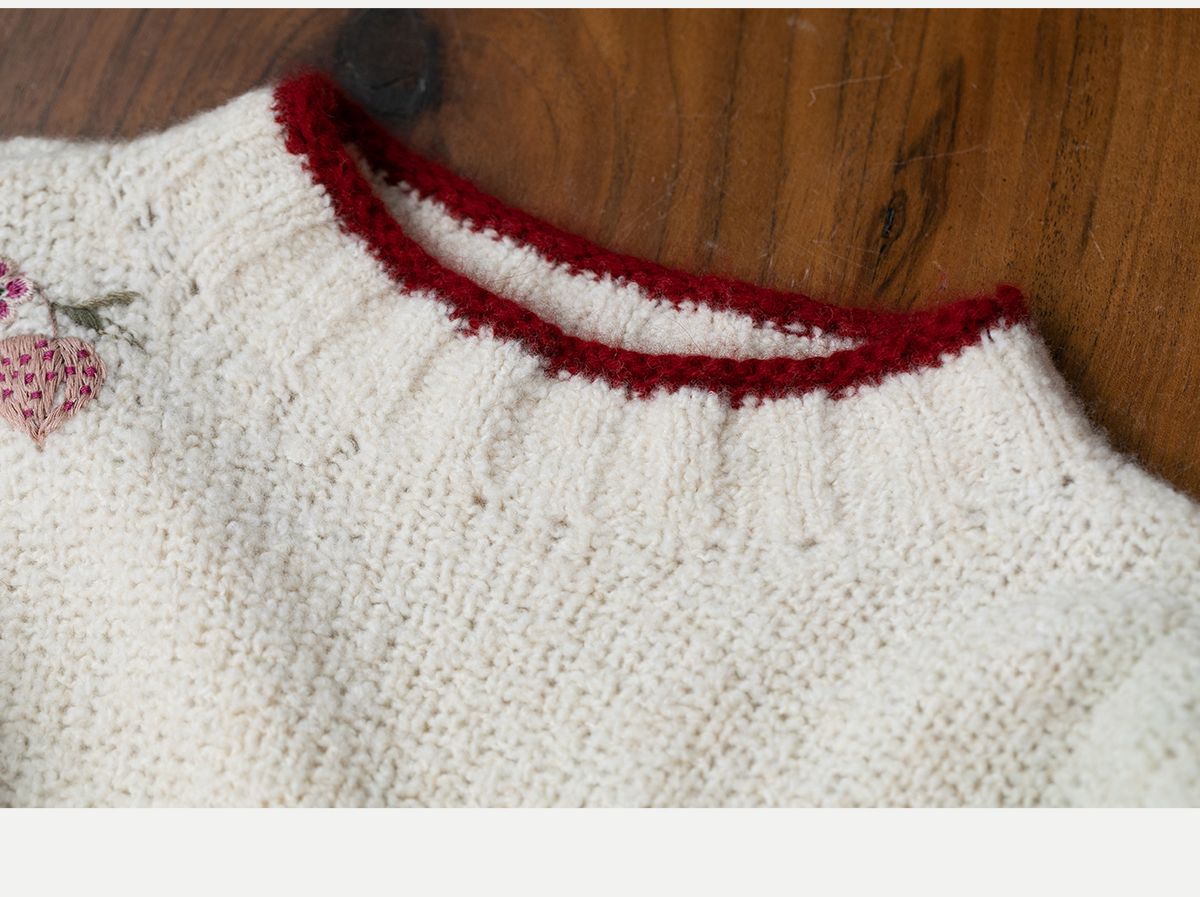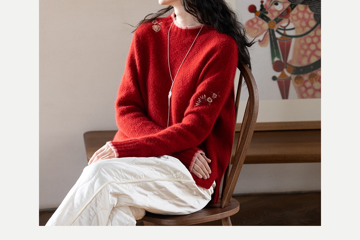 牧衣游原创 毛织手工刺绣毛织套头衫软糯保暖红色氛围毛衣女 暮冬