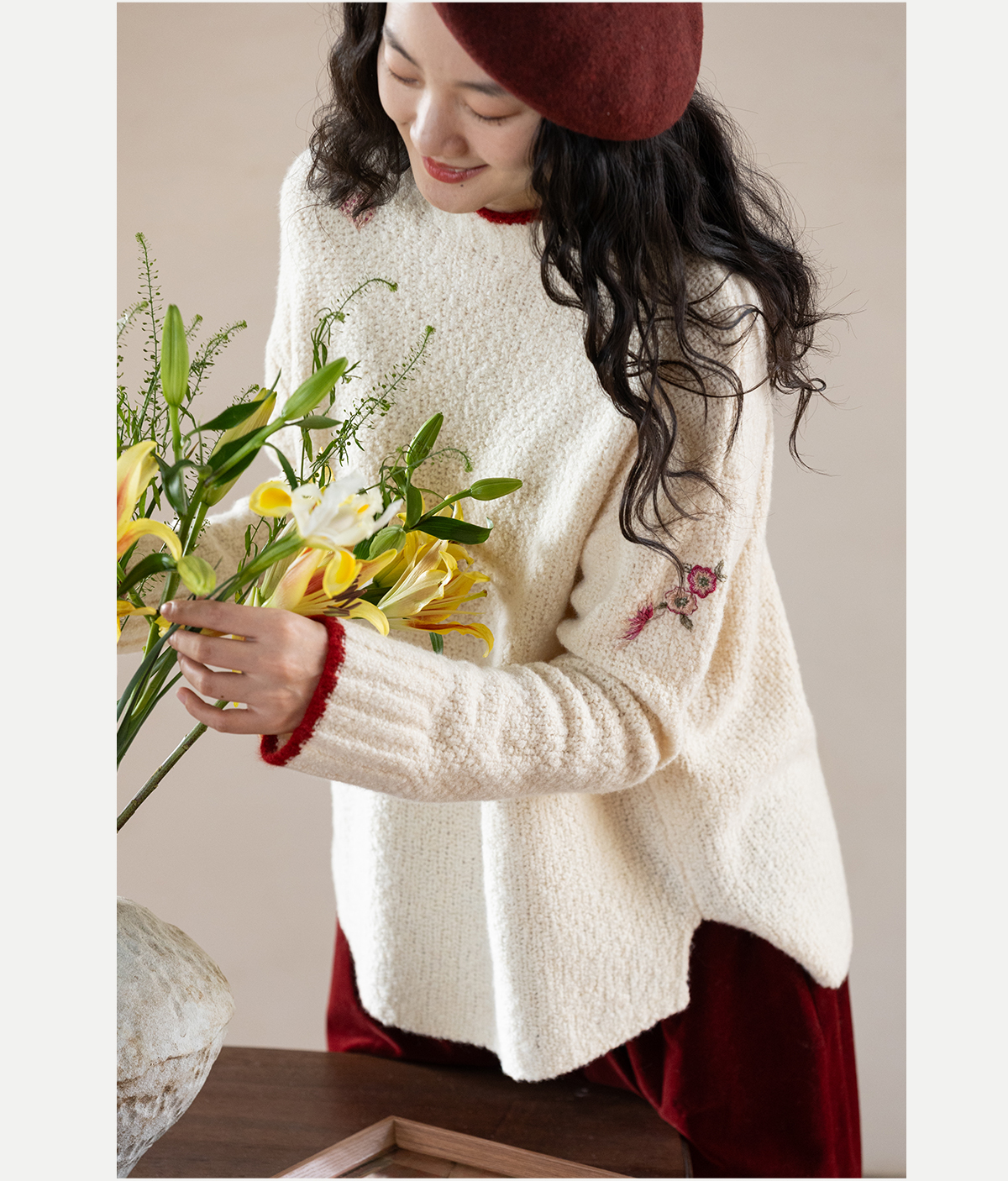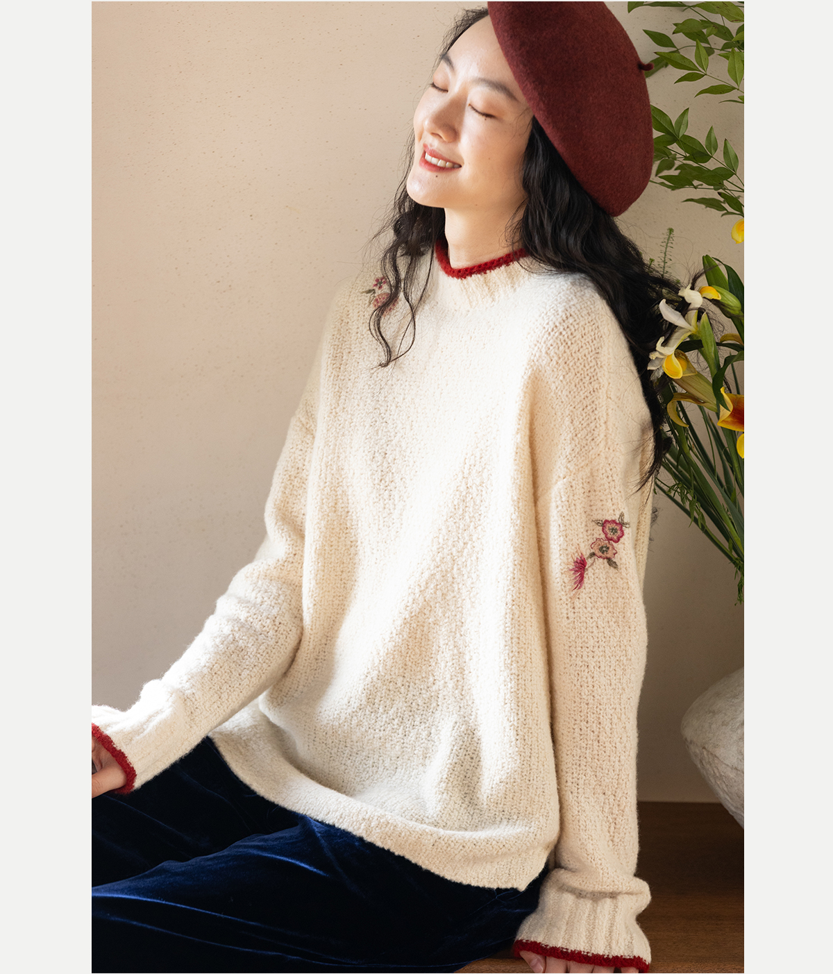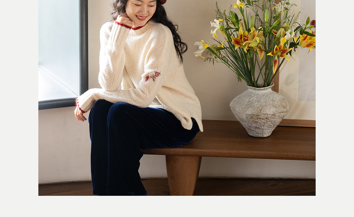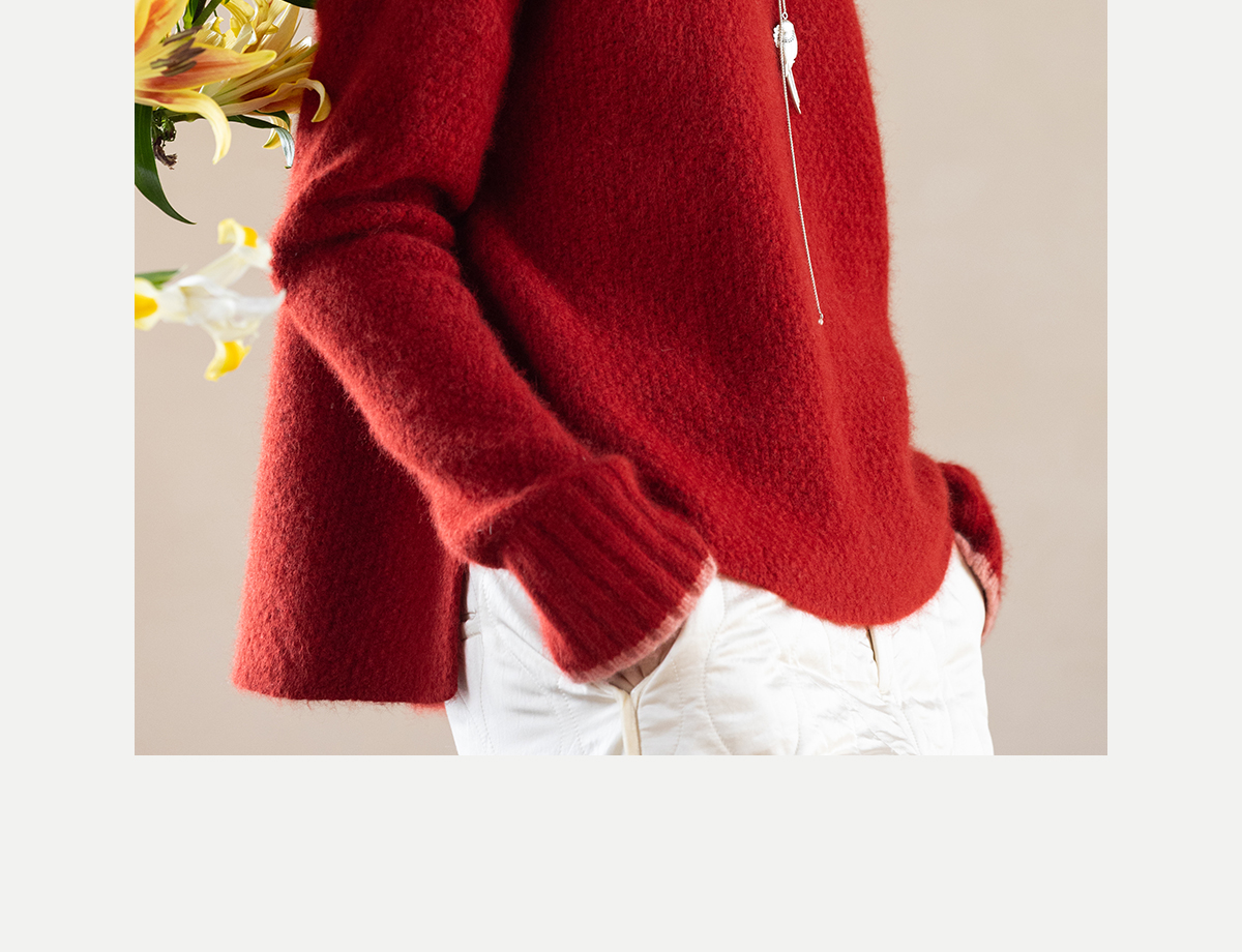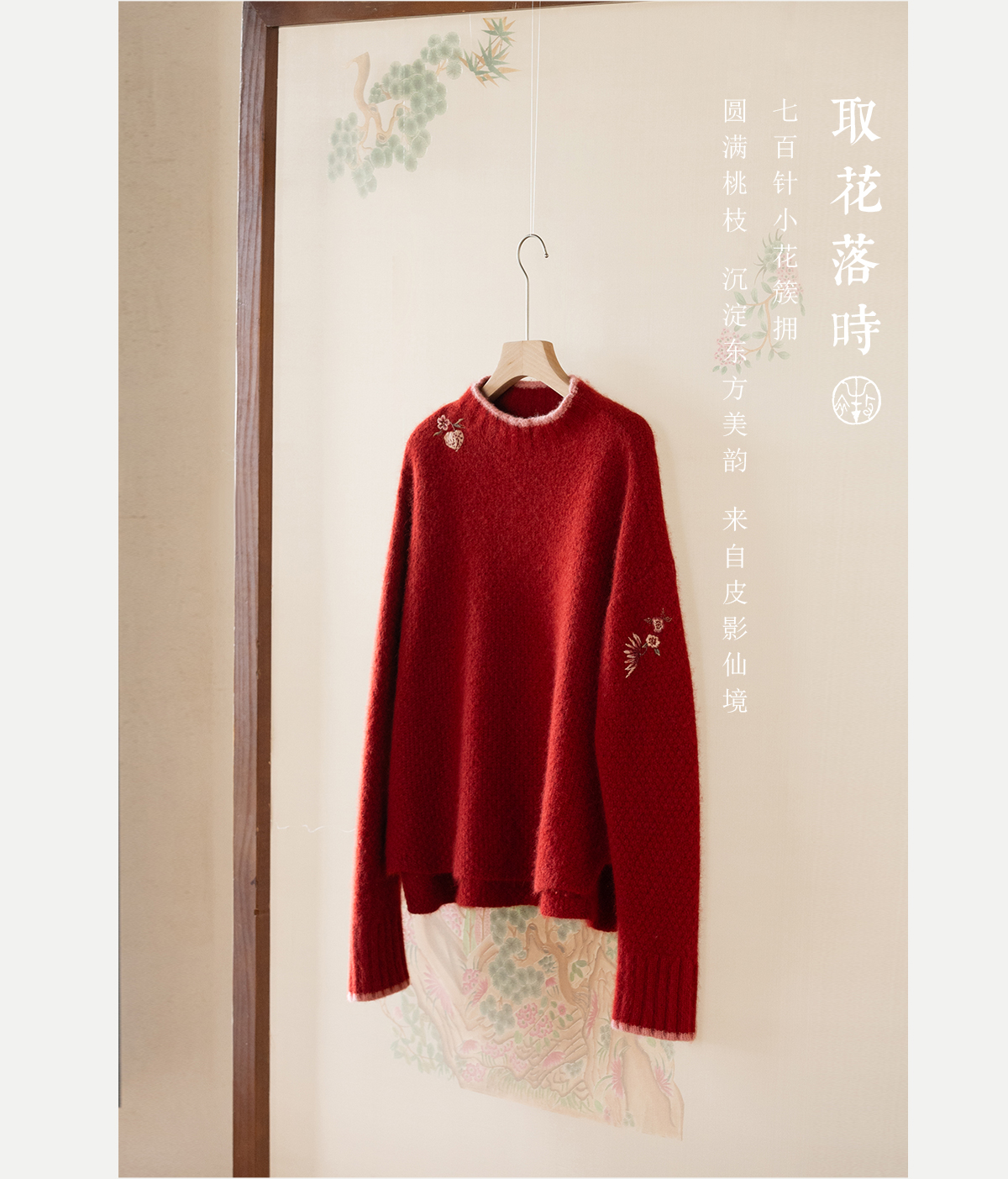 牧衣游原创 毛织手工刺绣毛织套头衫软糯保暖红色氛围毛衣女 暮冬