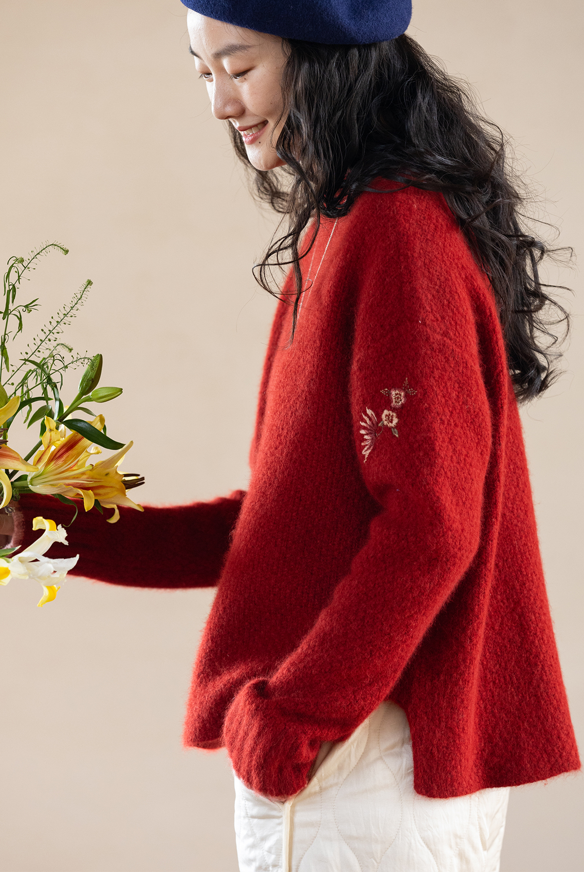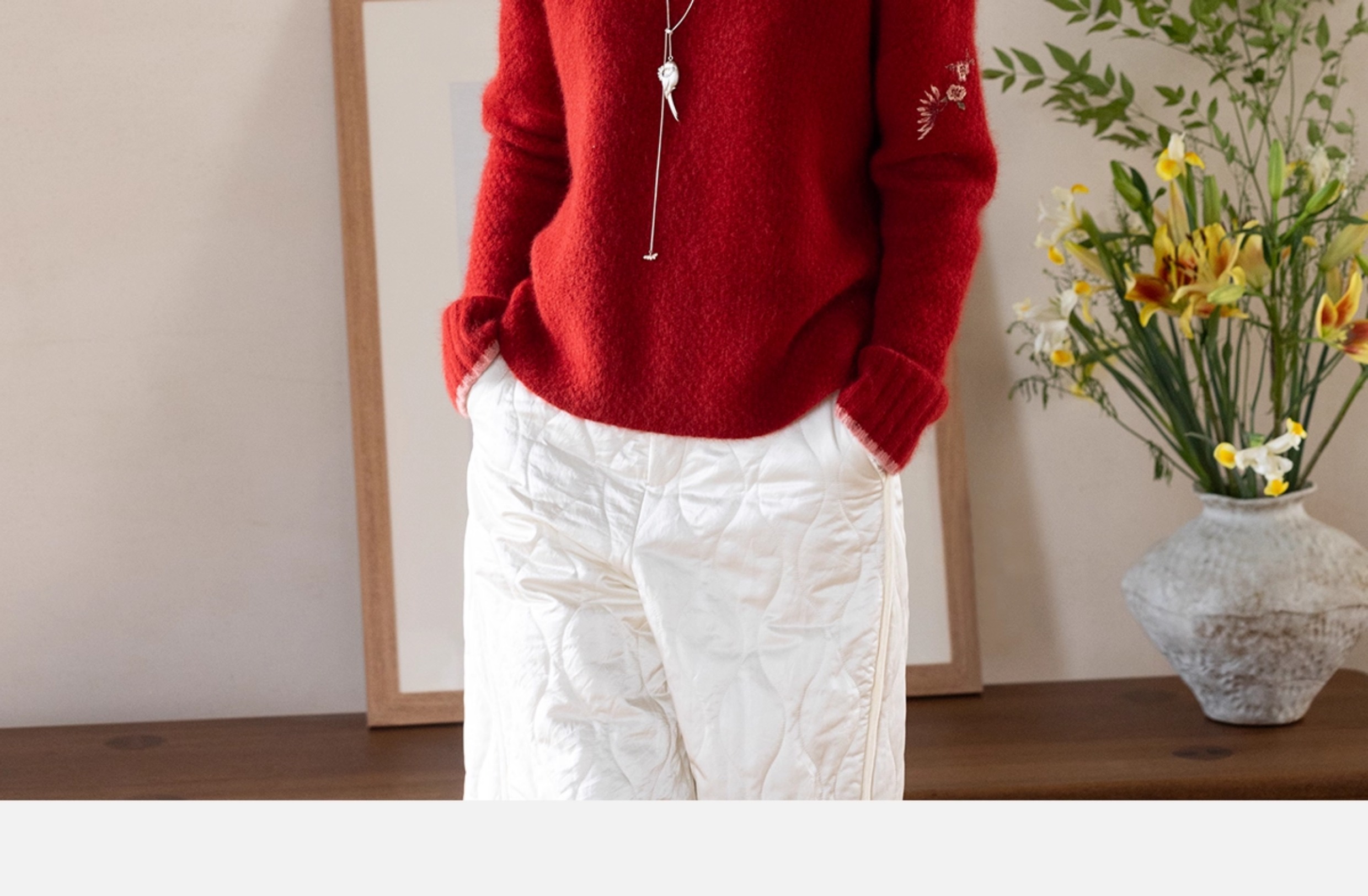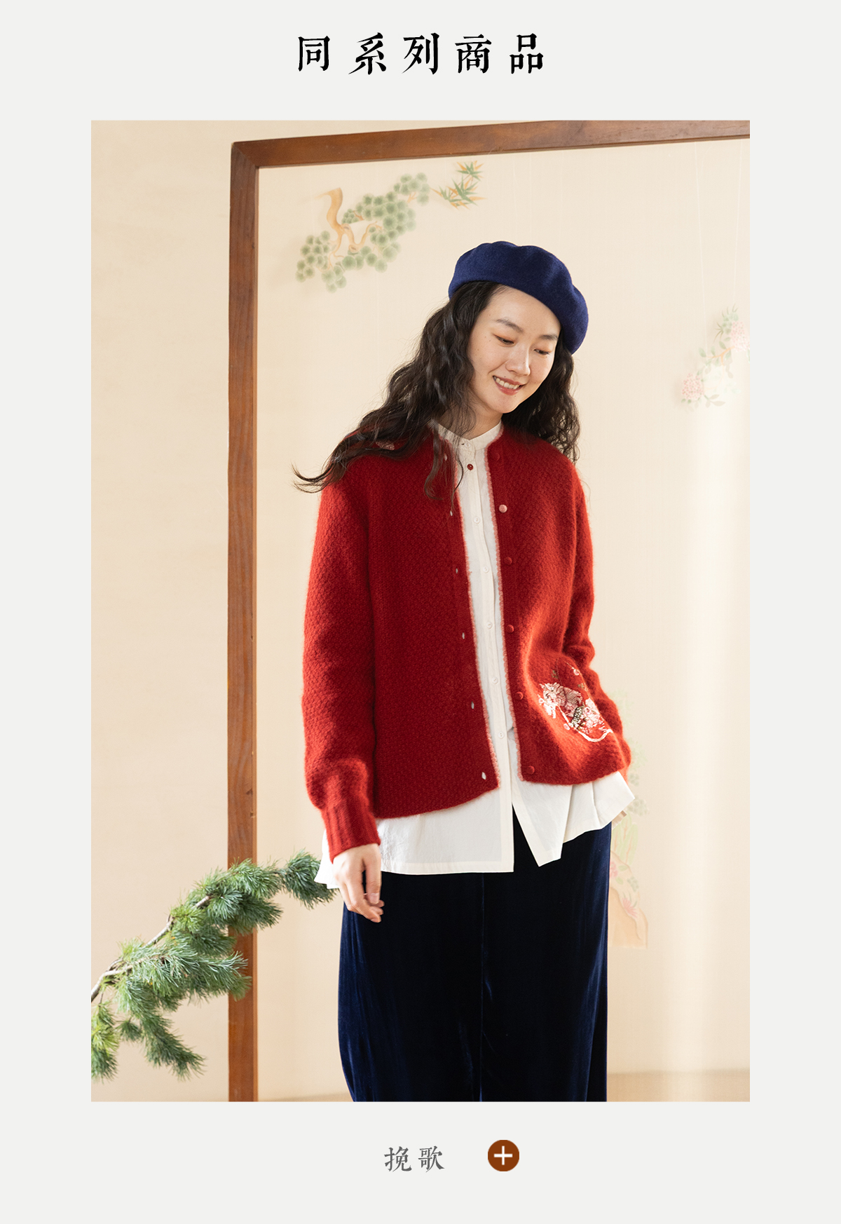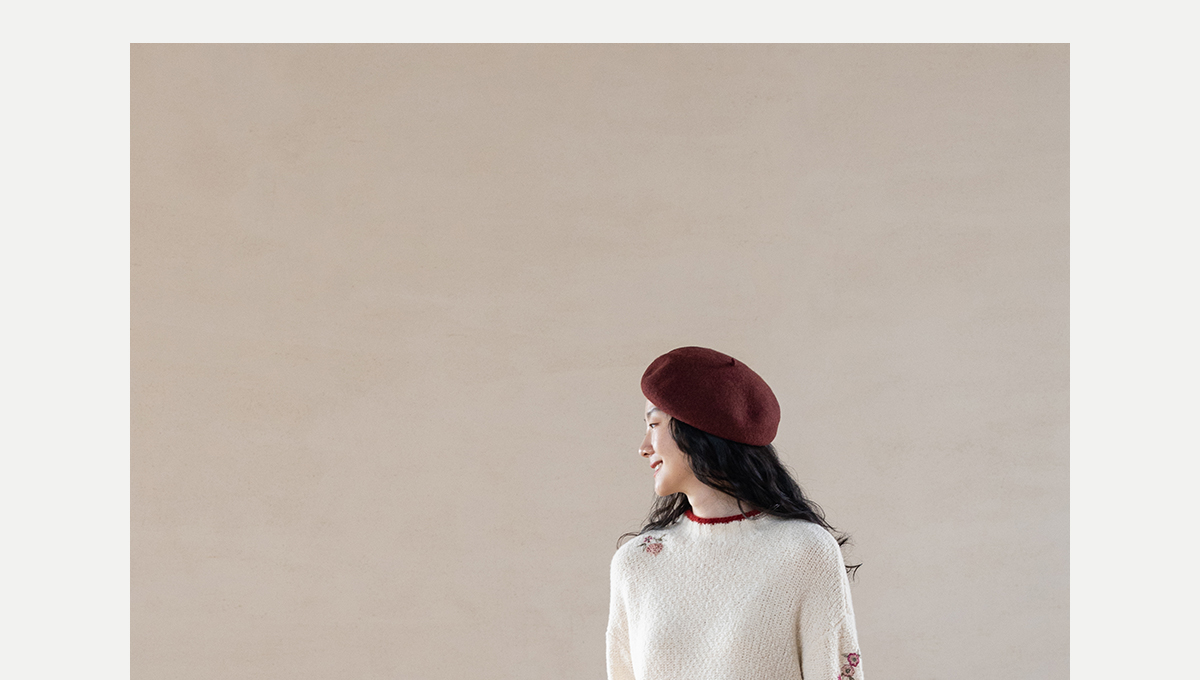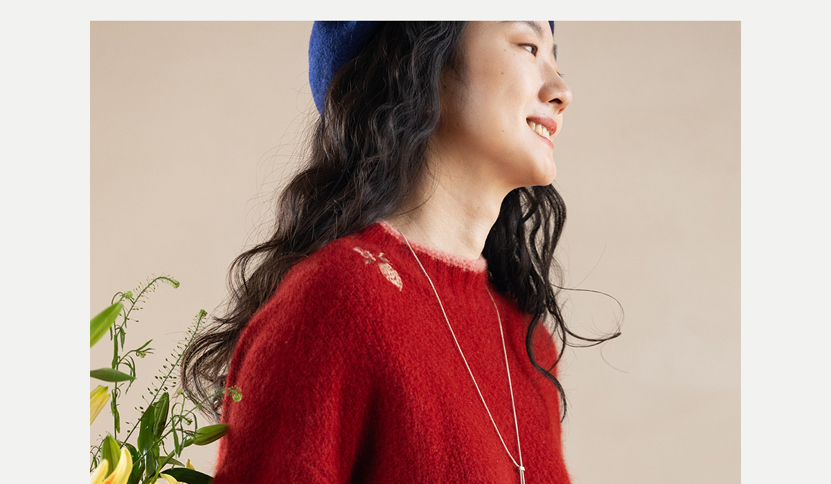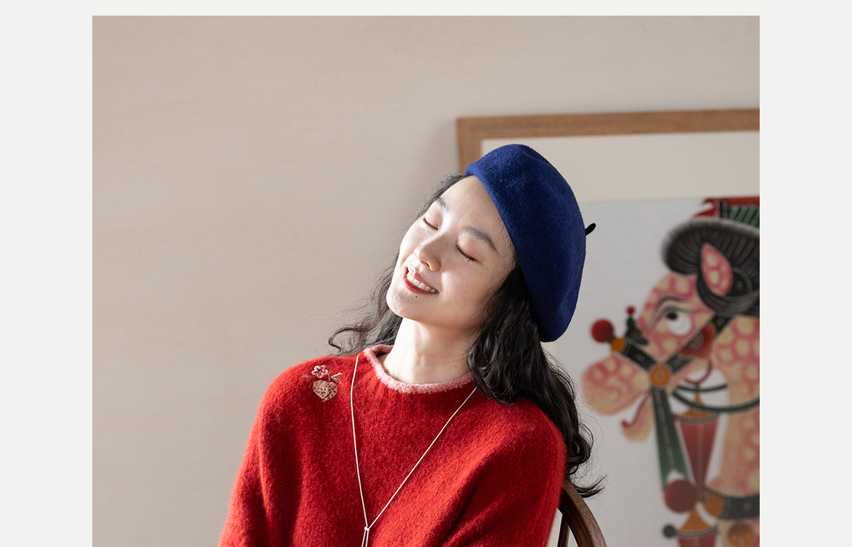 牧衣游原创 毛织手工刺绣毛织套头衫软糯保暖红色氛围毛衣女 暮冬