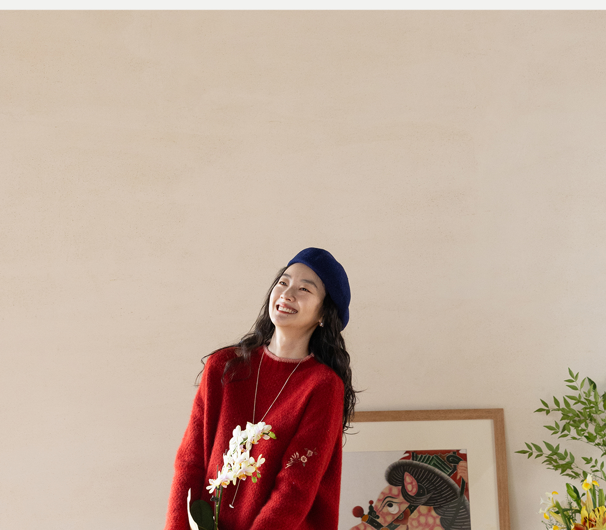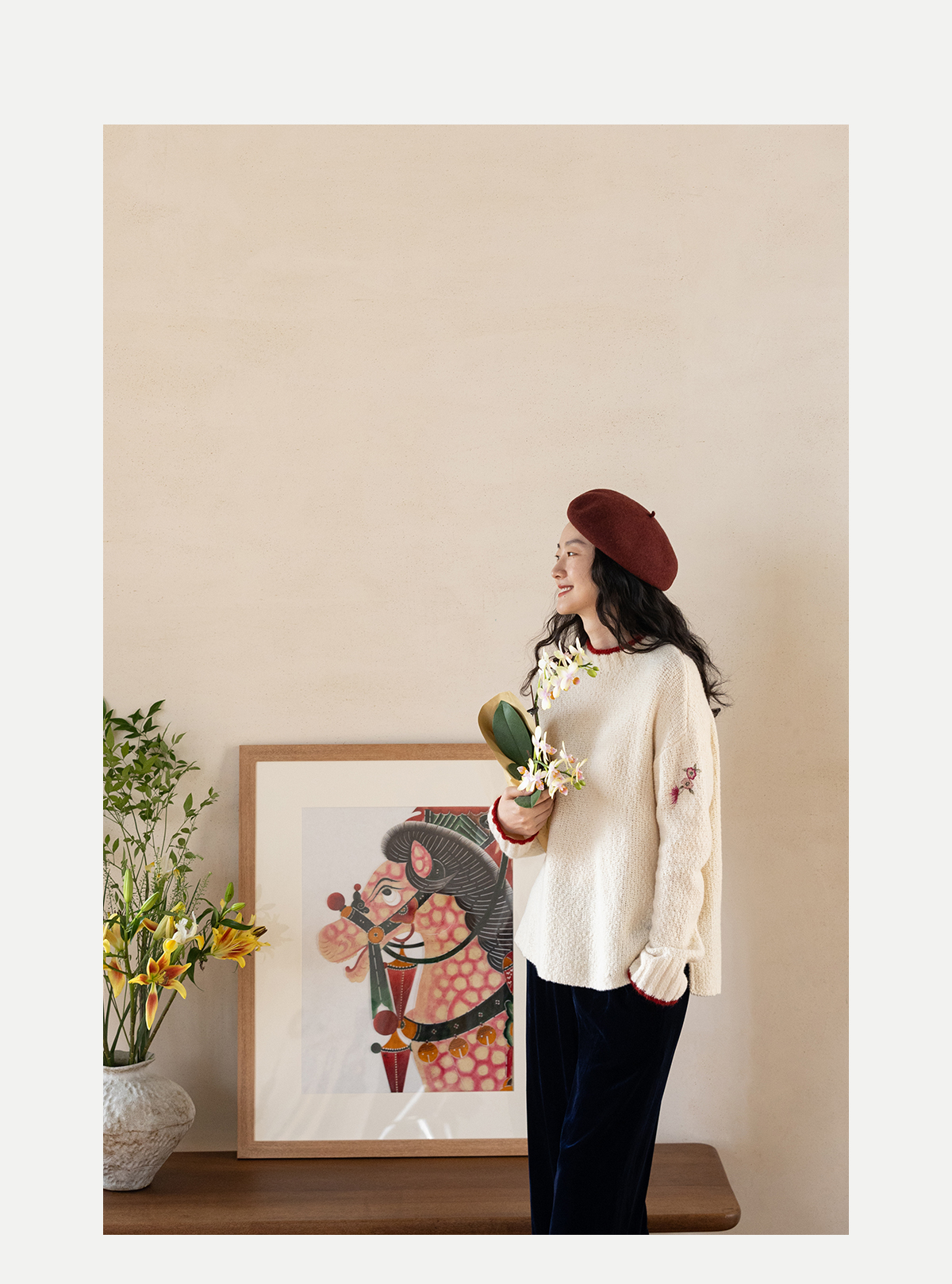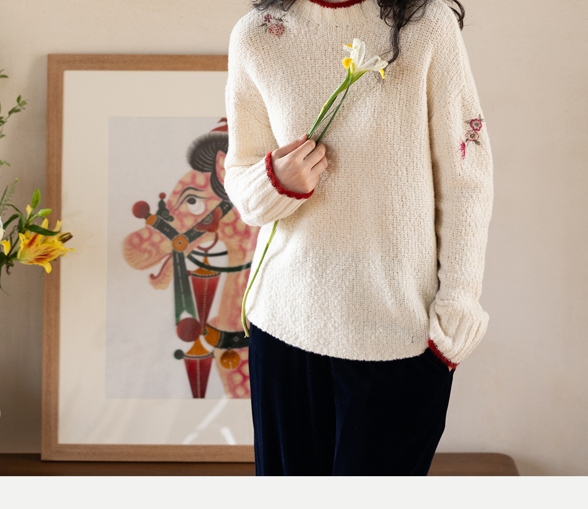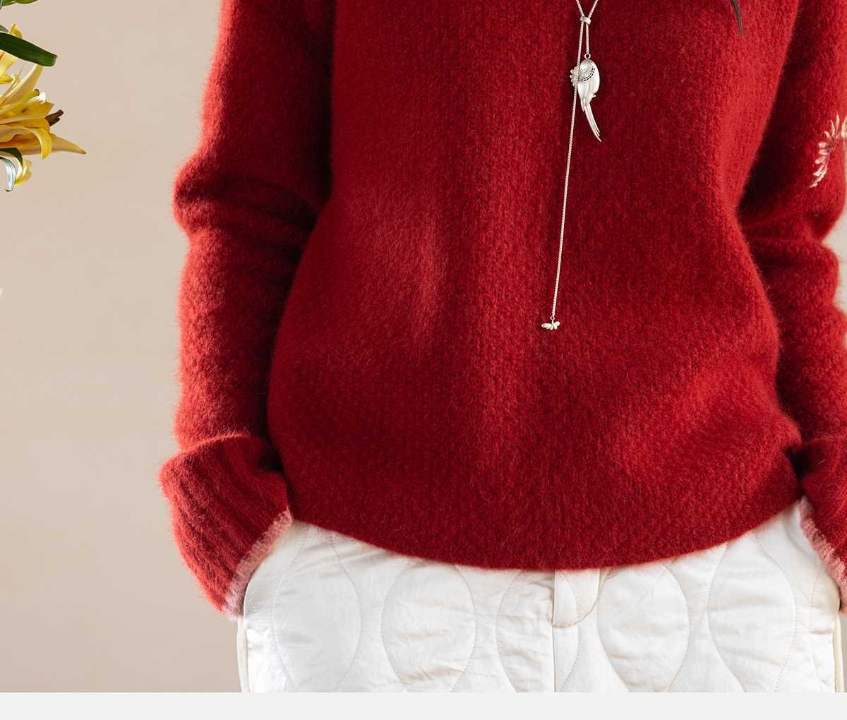 牧衣游原创 毛织手工刺绣毛织套头衫软糯保暖红色氛围毛衣女 暮冬