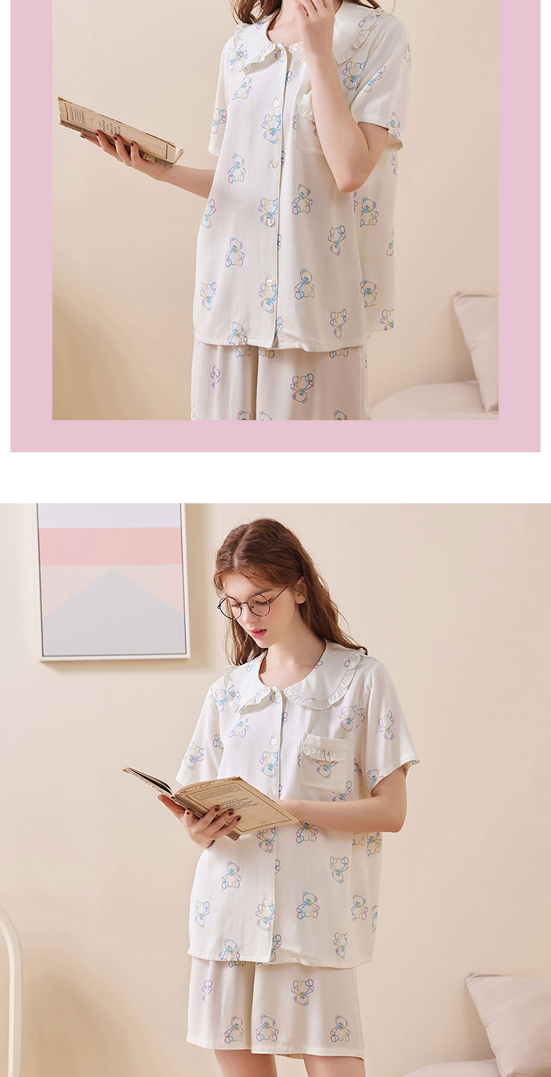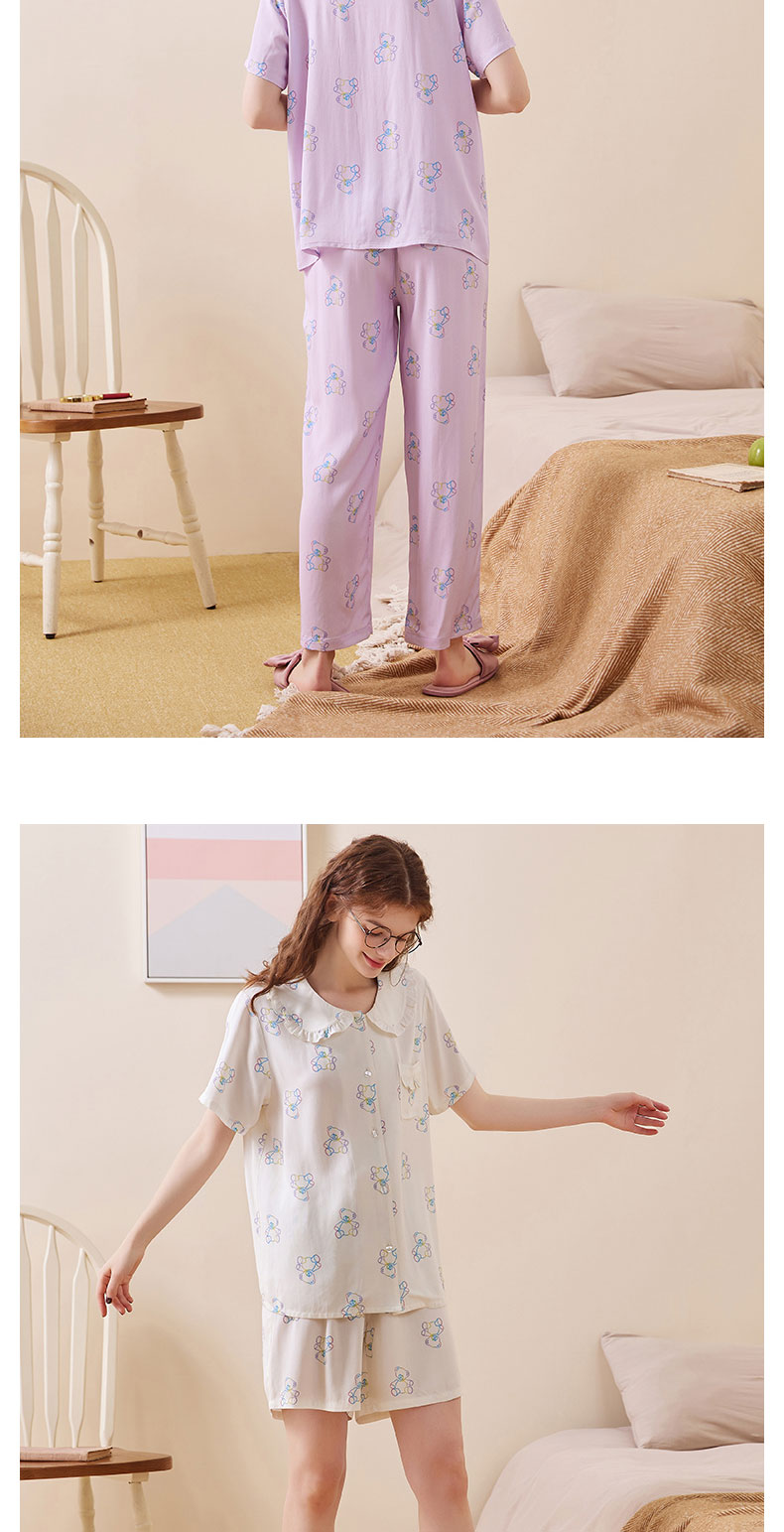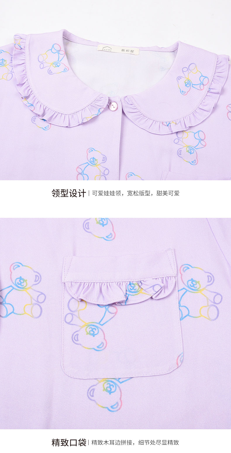 阪织屋亲肤人棉炫彩小熊印花短袖短裤开衫套装/短袖长裤开衫套装/短袖家居裙6531150170703