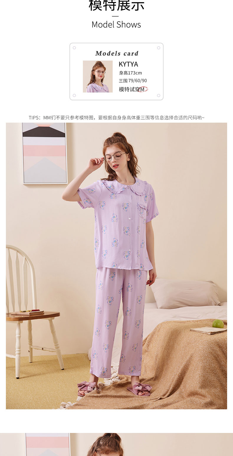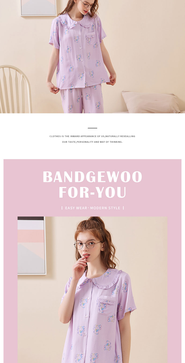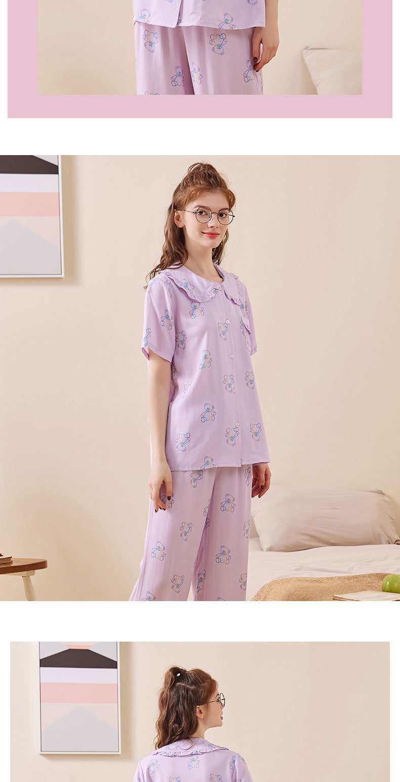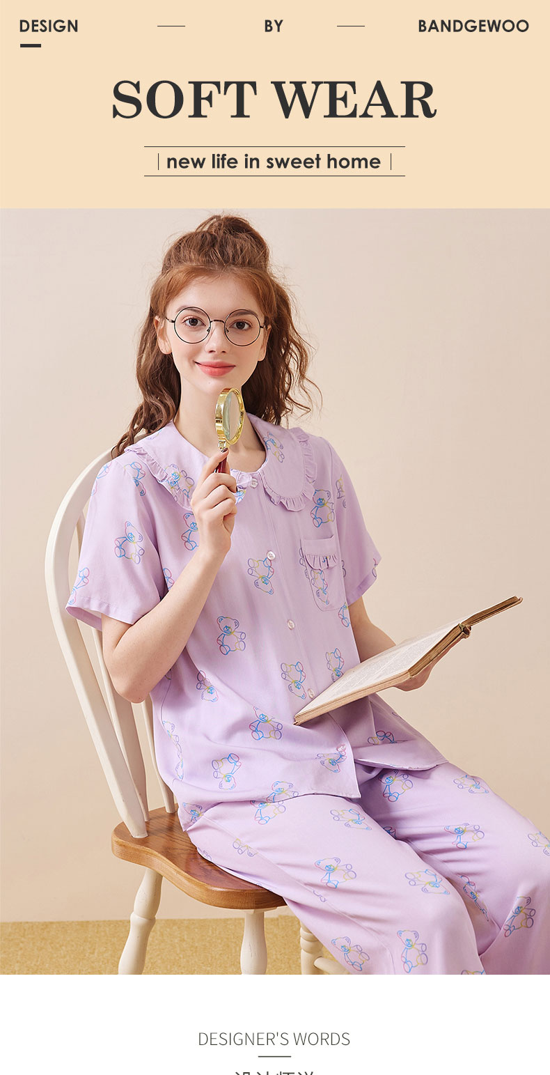 阪织屋亲肤人棉炫彩小熊印花短袖短裤开衫套装/短袖长裤开衫套装/短袖家居裙6531150170703