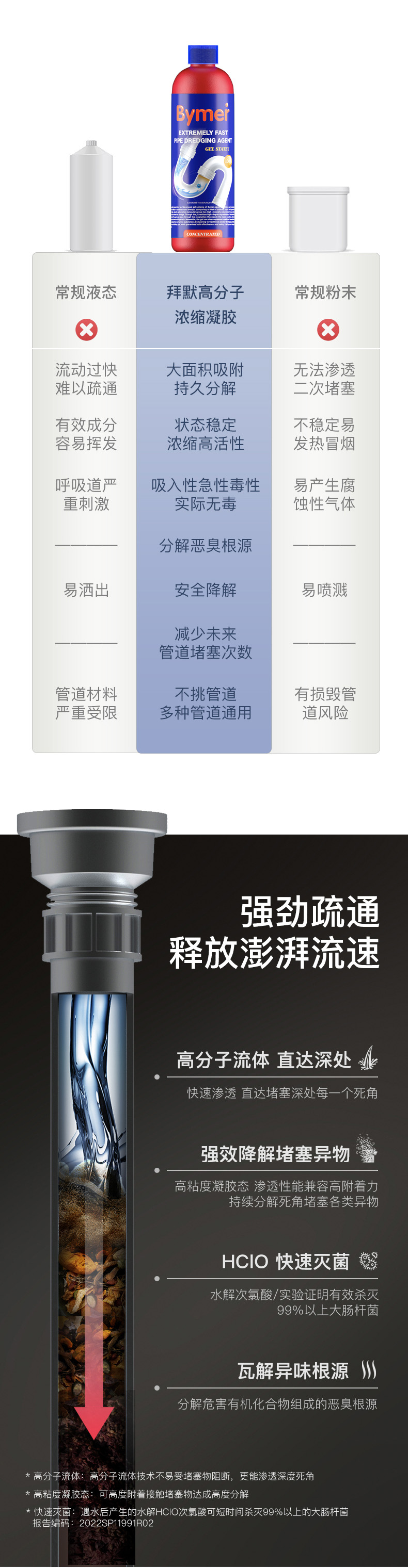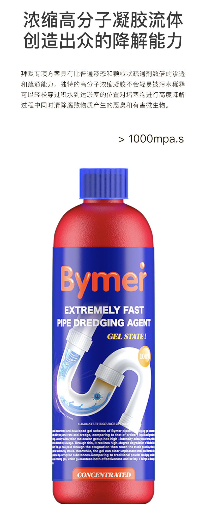 【超值装赠开口器】Bymer·拜默高分子管道速通养护凝胶 不挑管道高效疏通 安全健康分解异味 和管道飞虫说再见 500g/瓶