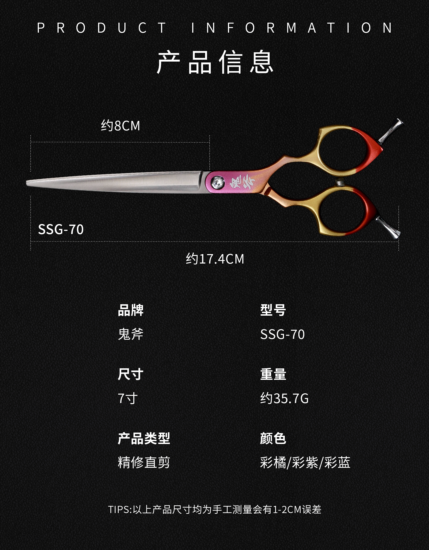 鬼斧彩直精修剪刀 SSG-70